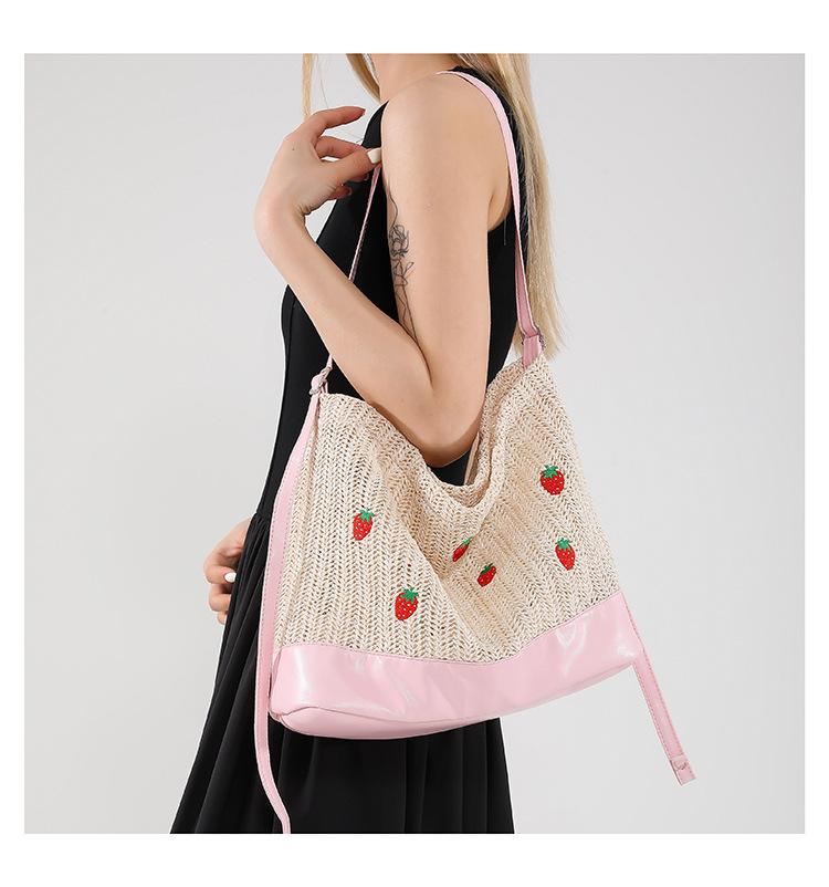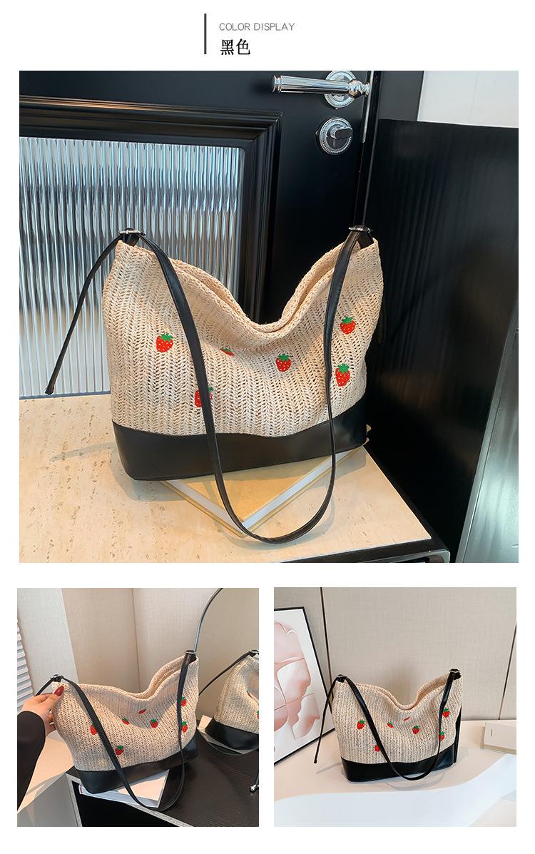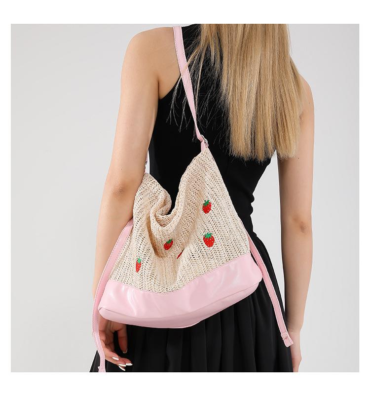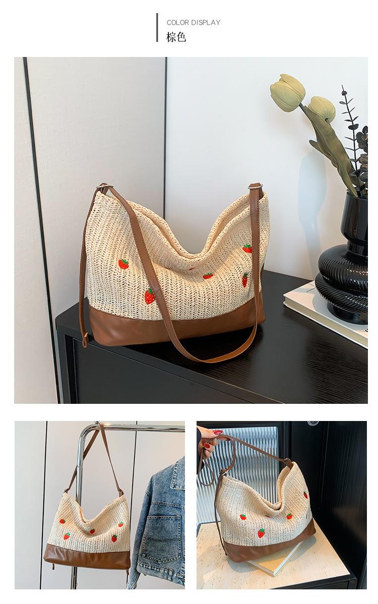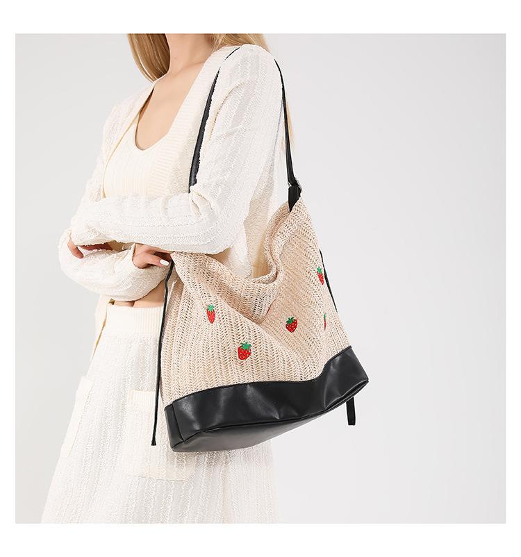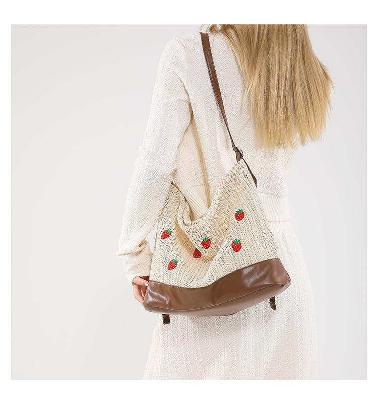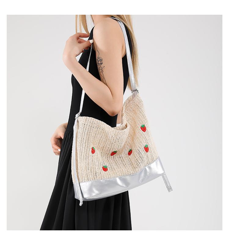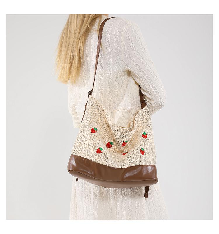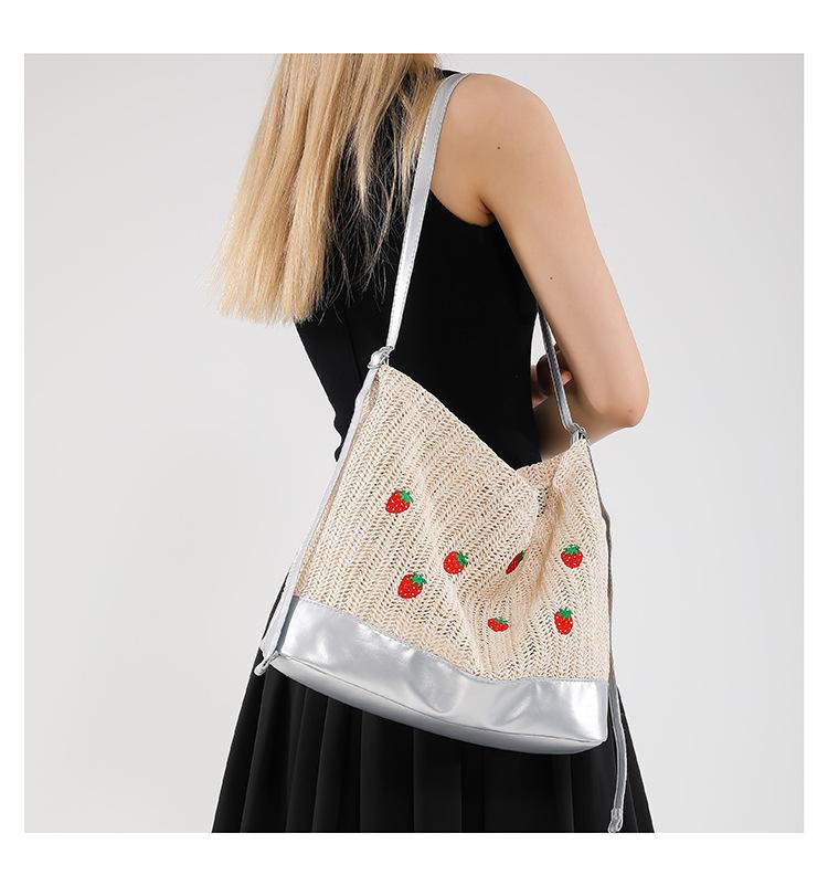 Bolso de Cubo Tejido Transfronterizo para Mujer 2024 Casual Nuevo Verano Bolso Cruzado Moda Costuras Bolso Tote Portátil
