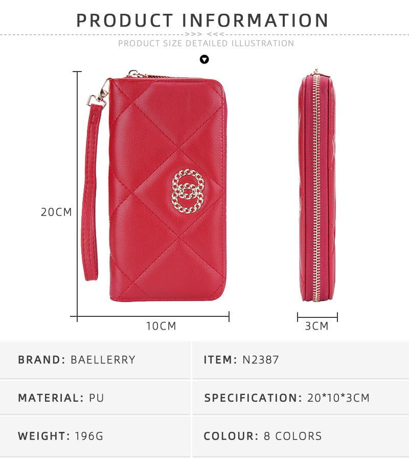 Baellerry, nueva cartera larga para mujer, estilo coreano, pequeña, fragante, bolso de mano con múltiples tarjetas, bolso acolchado para mujer, venta al por mayor