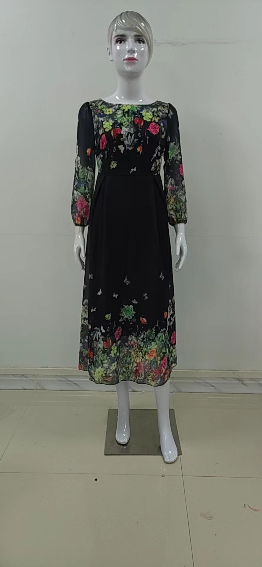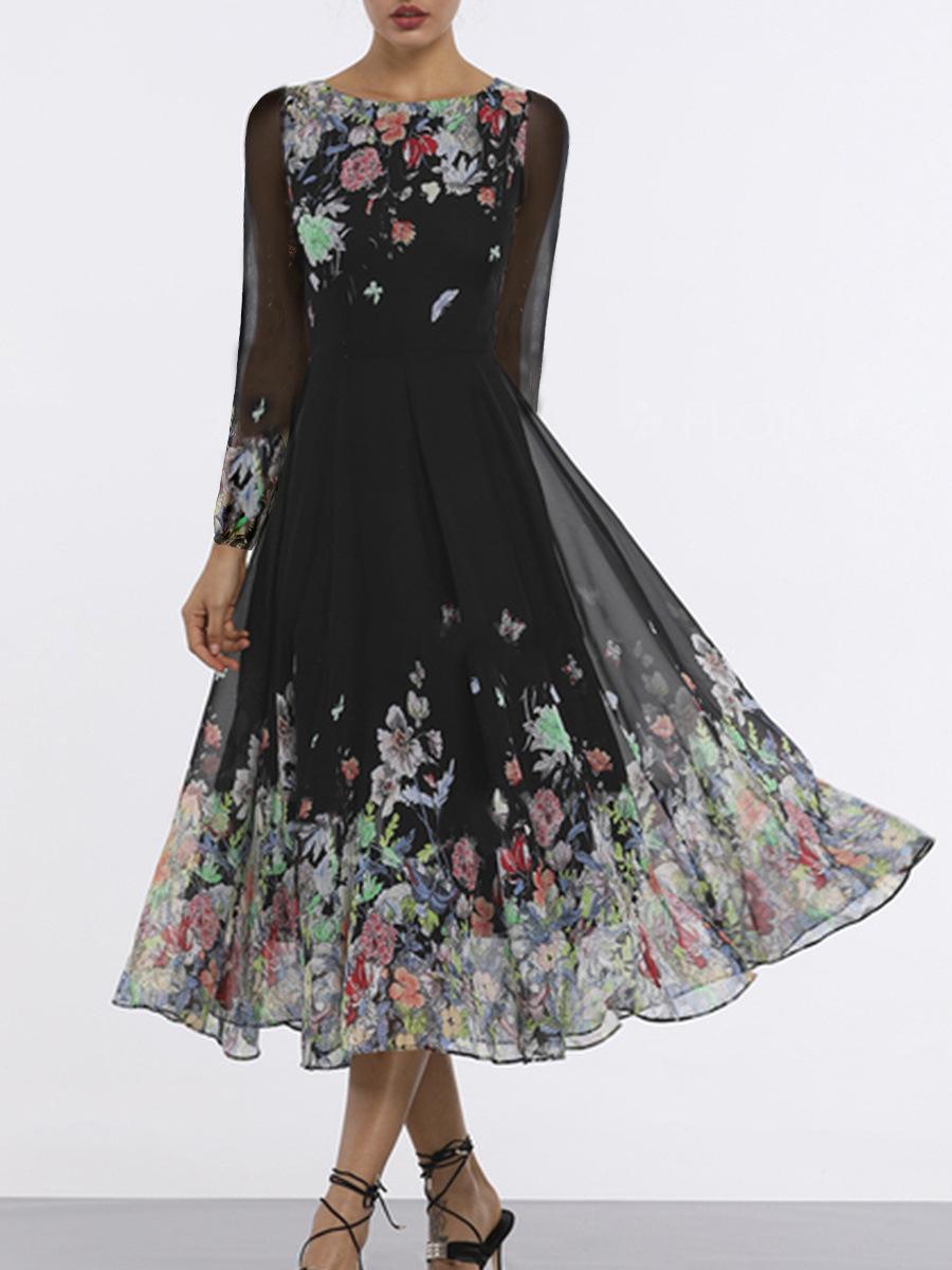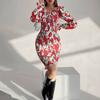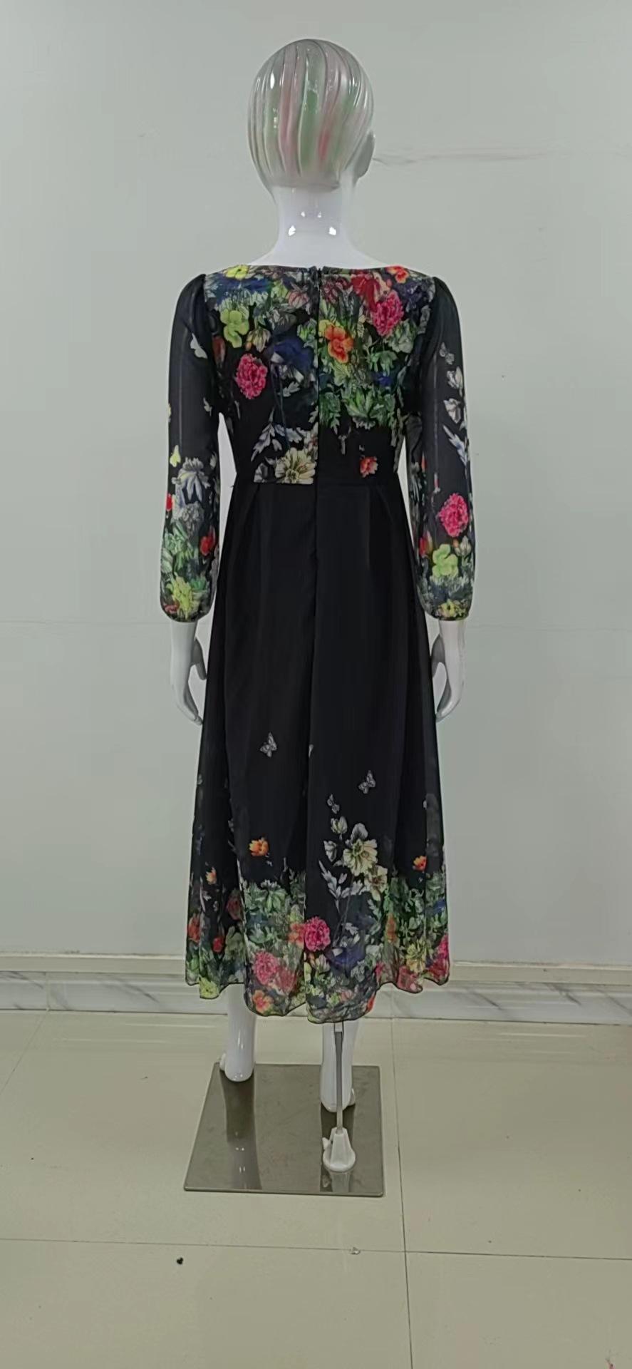 2025 Verano Transfronterizo Nuevo Estilo Europeo y Americano Estampado Sexy Calado Ajustado Vestido Largo de Manga Larga con Encaje y Dobladillo Amplio