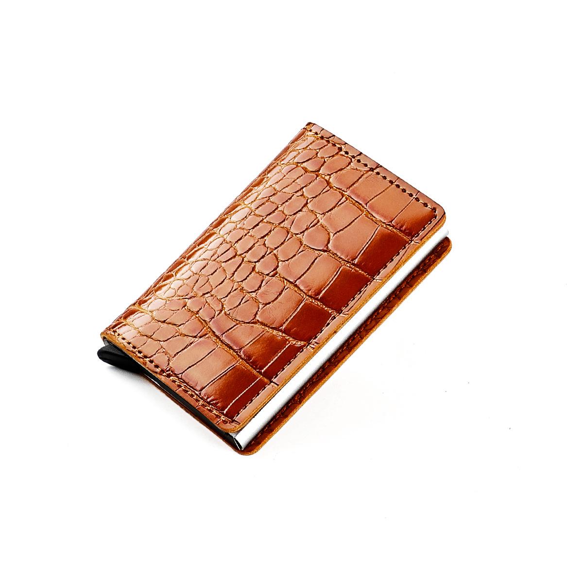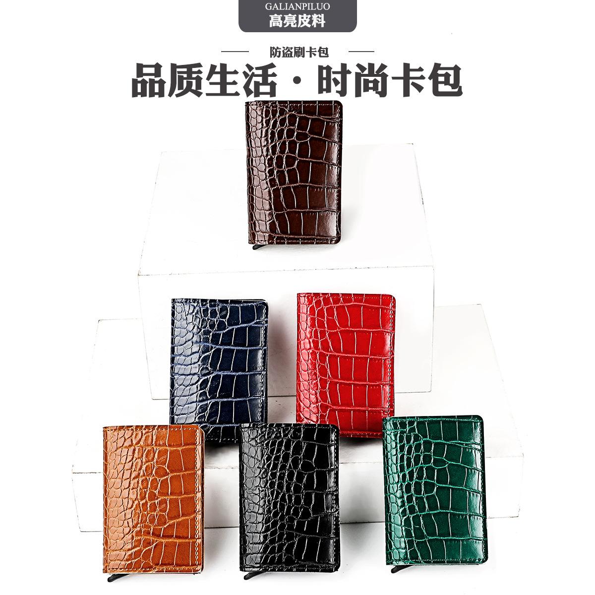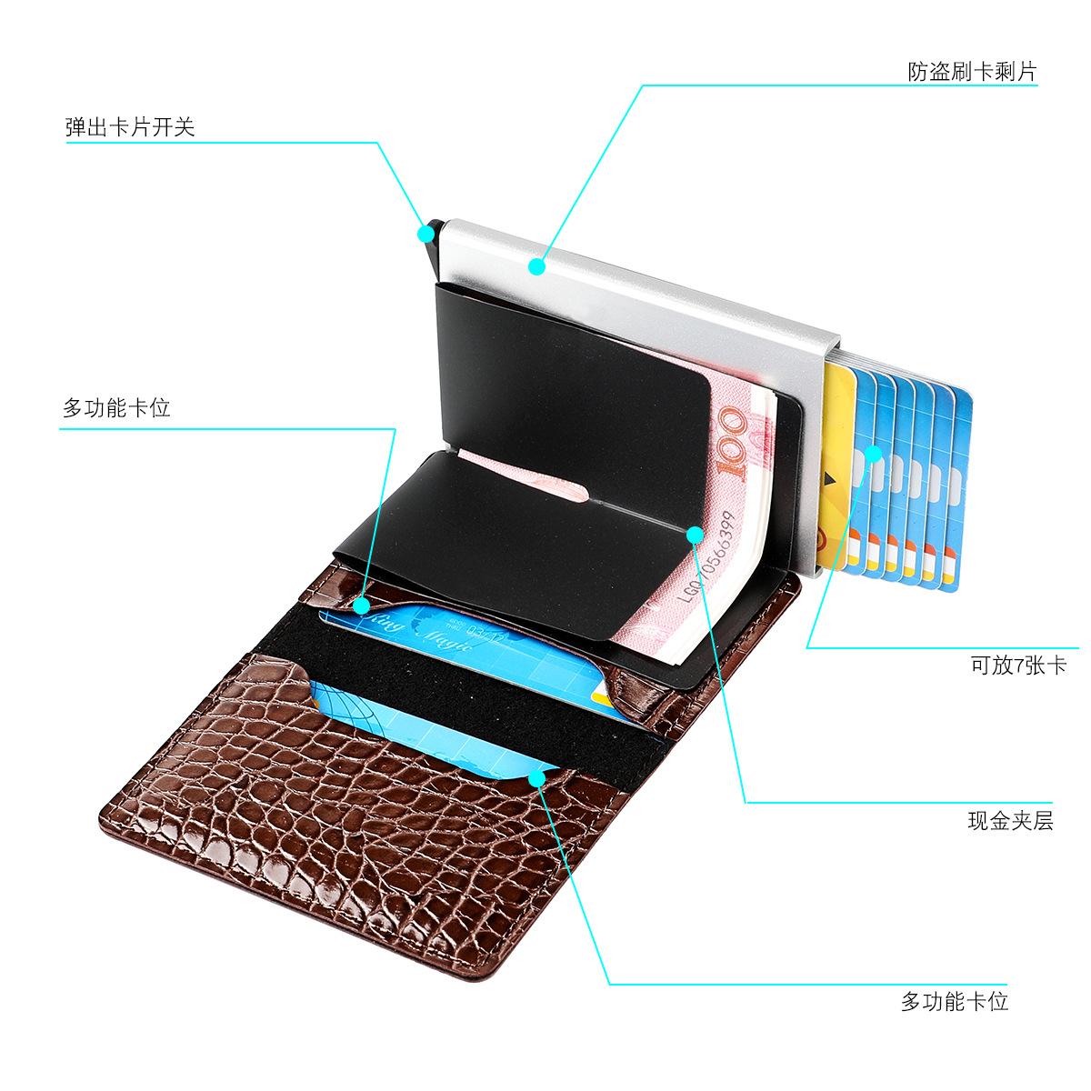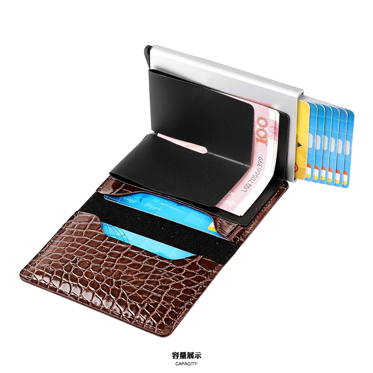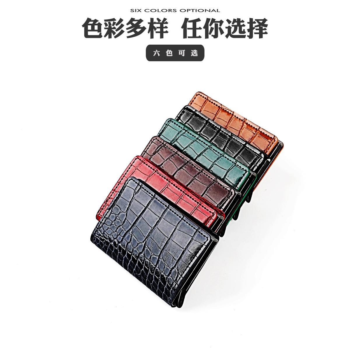 Bolsa para tarjetas con patrón de cocodrilo directo de fábrica, billetera de aleación de aluminio para tarjetas de crédito, para negocios, caja anti-magnética para tarjetas de crédito, caja para tarjetas bancarias