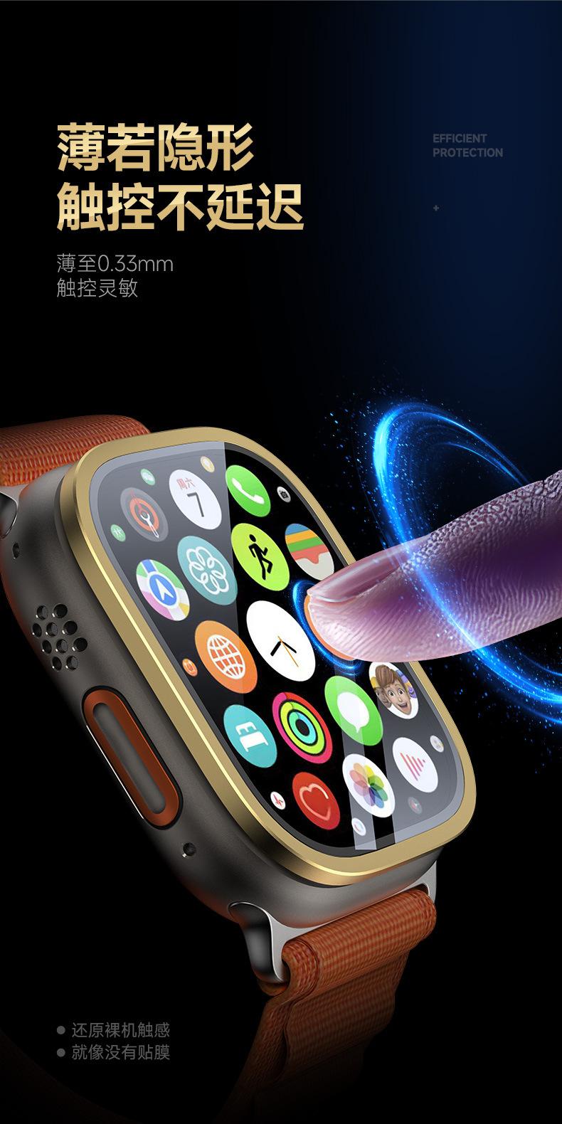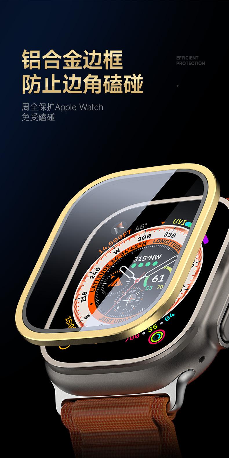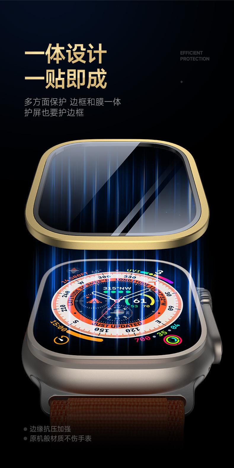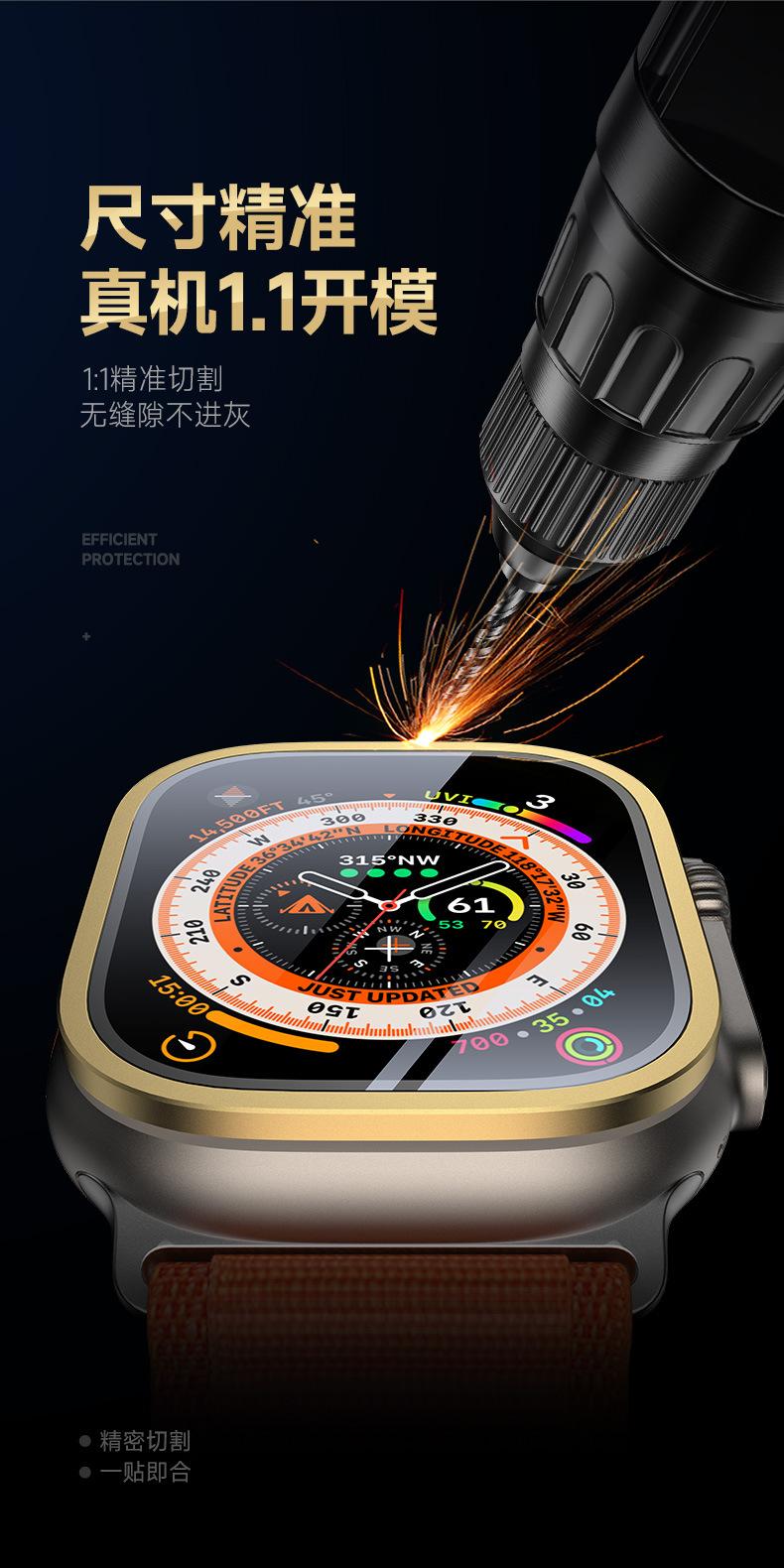 Adecuado para AppleWatchUltra reloj película templada marco de aleación de aluminio película protectora película de vidrio para Apple Watch