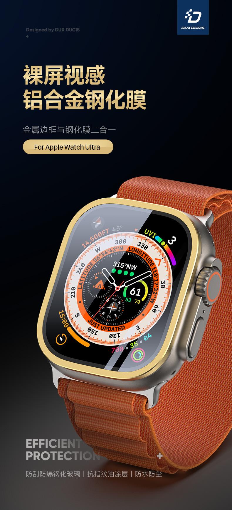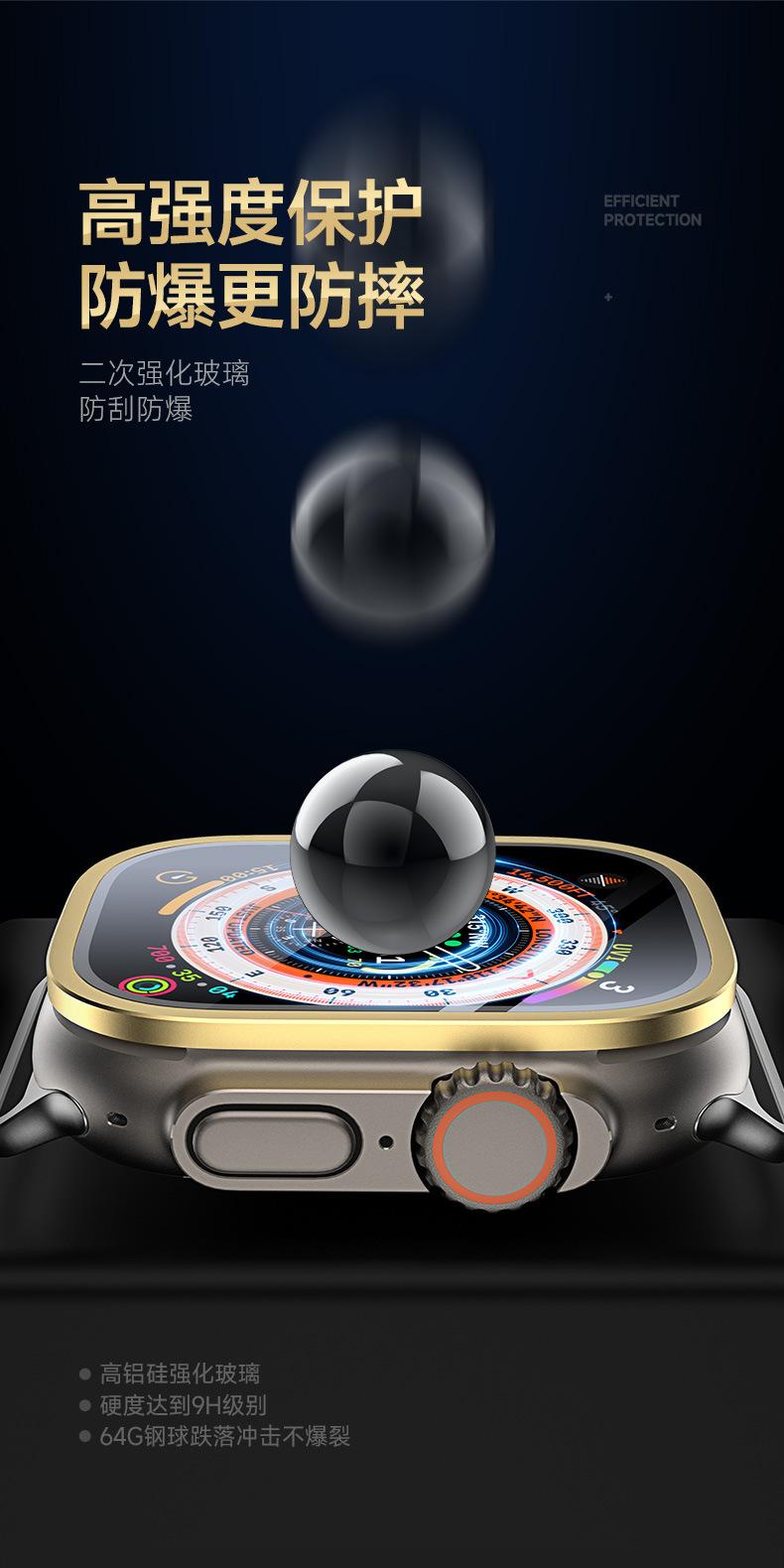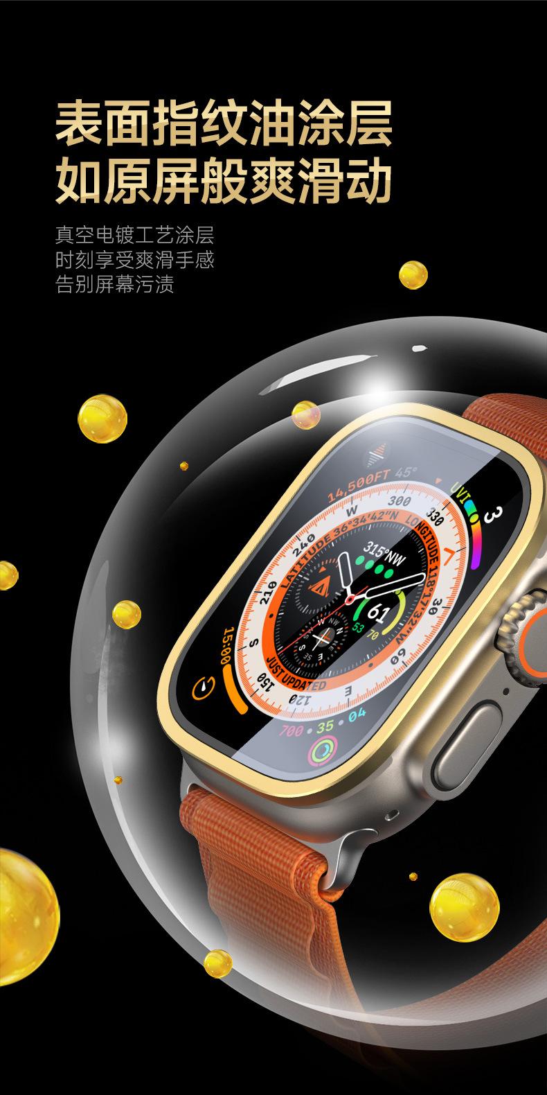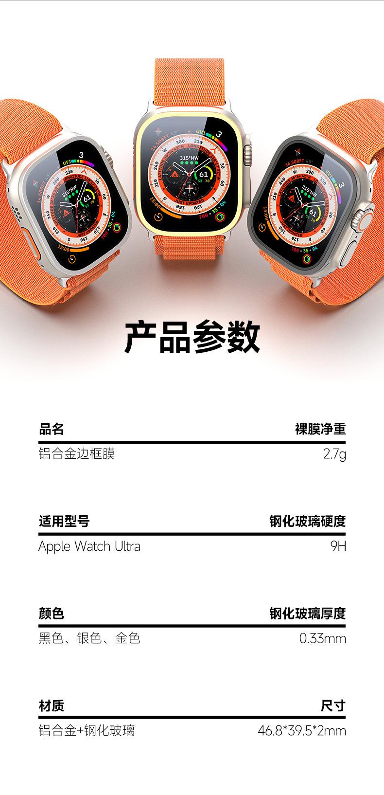 Adecuado para AppleWatchUltra reloj película templada marco de aleación de aluminio película protectora película de vidrio para Apple Watch