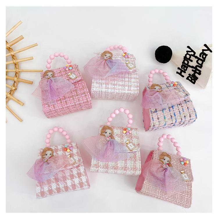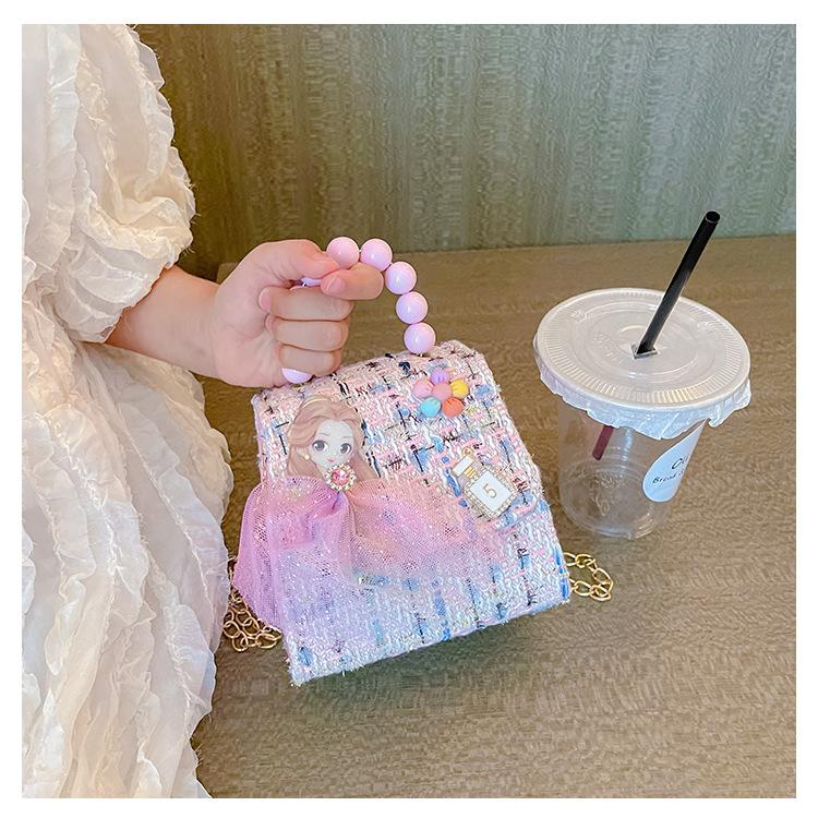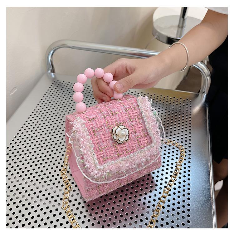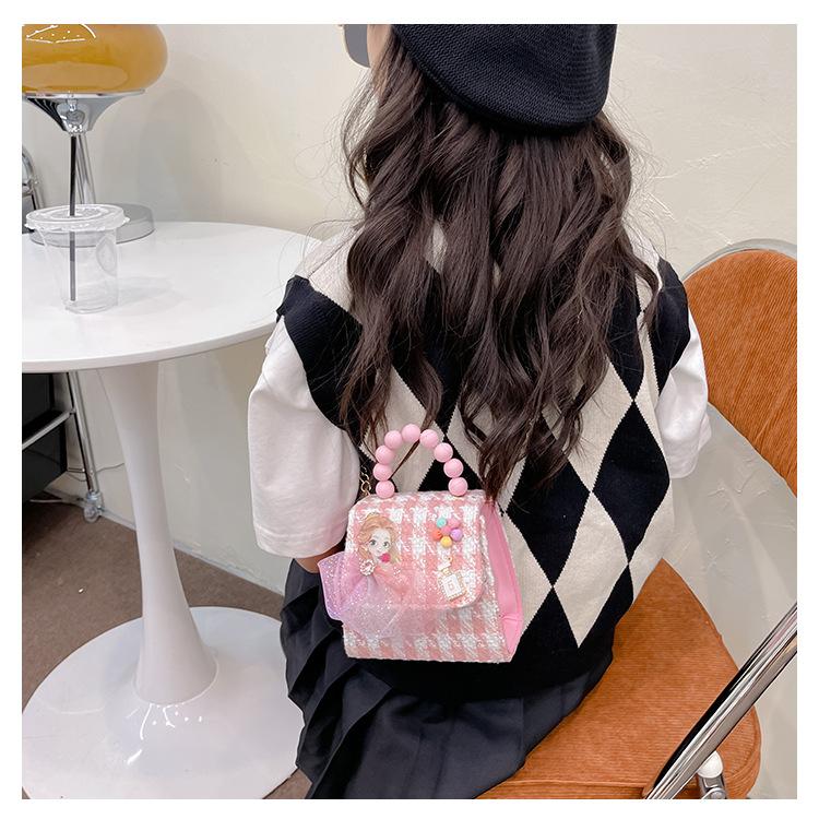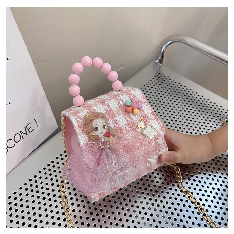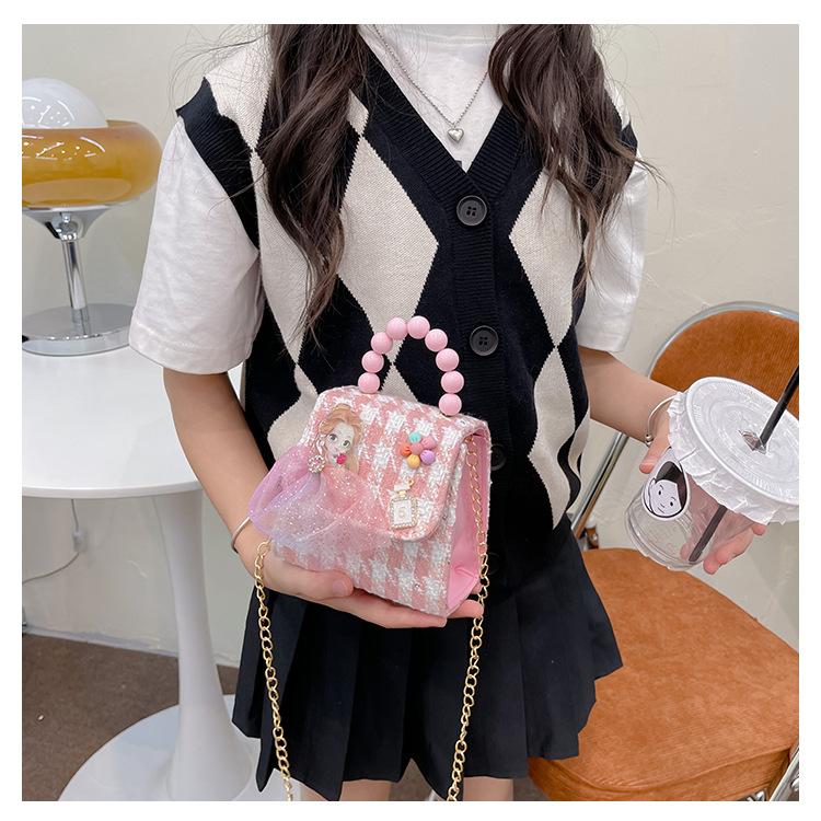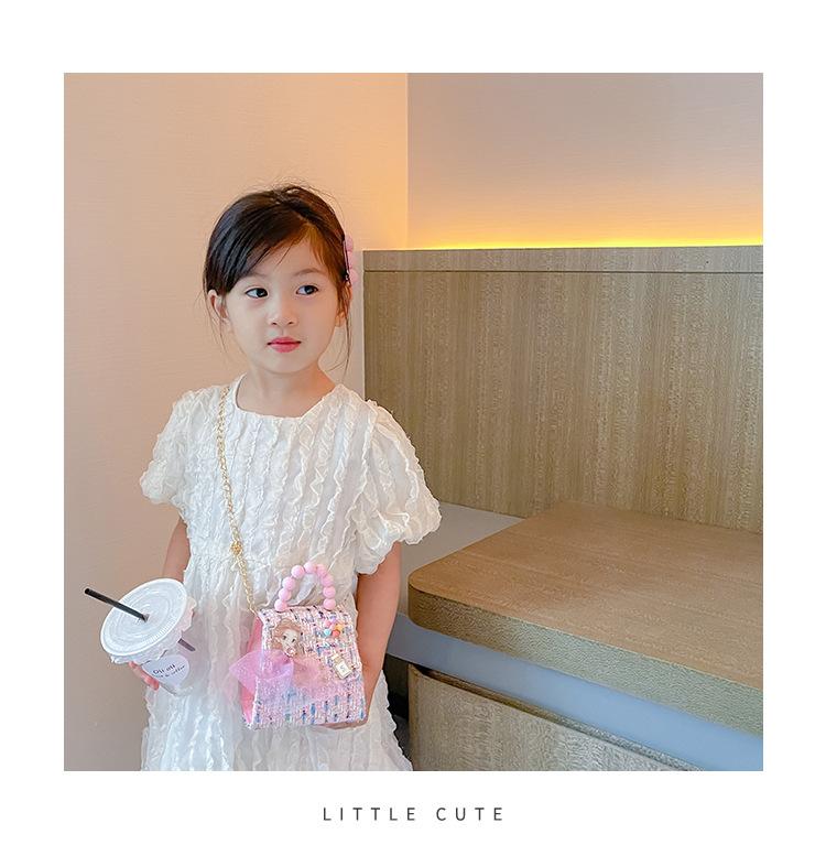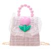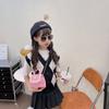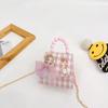 Nuevo bolso de hombro de moda para niños, bonito bolso de mensajero de PU para niñas, bonito bolso de mano con encaje de dibujos animados y perlas