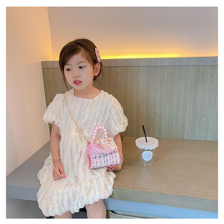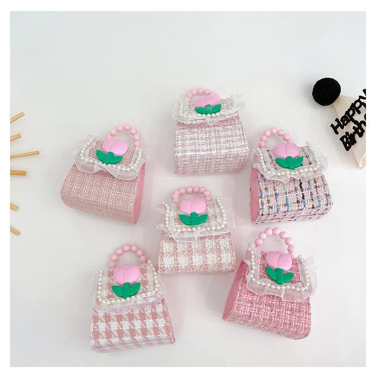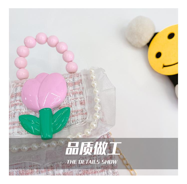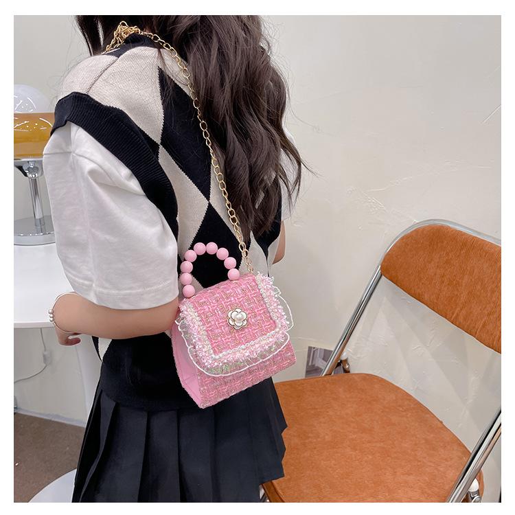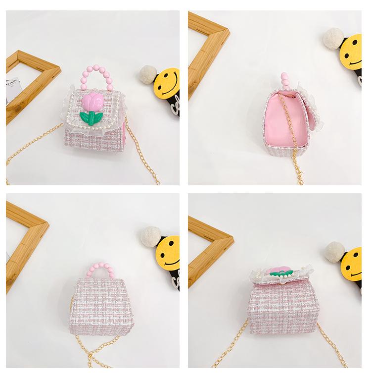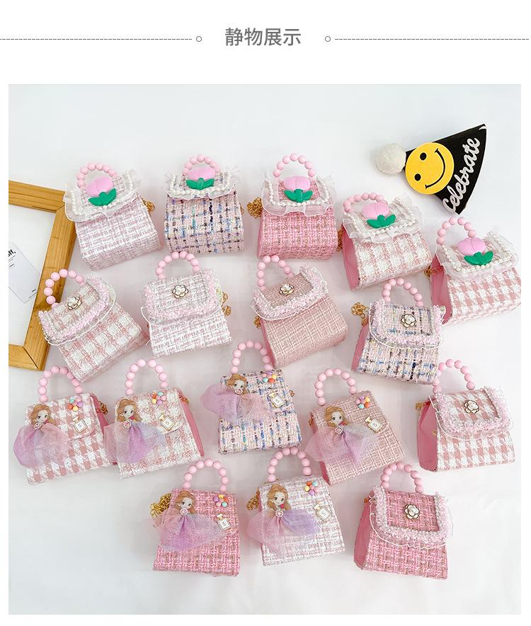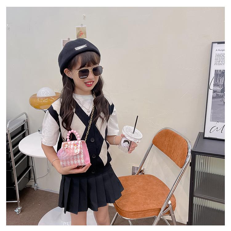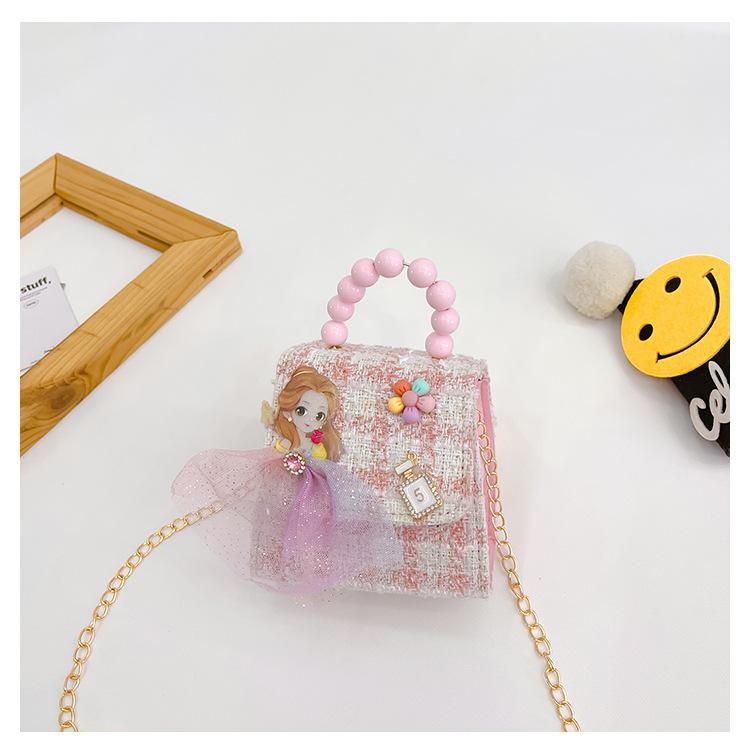 Nuevo bolso de hombro de moda para niños, bonito bolso de mensajero de PU para niñas, bonito bolso de mano con encaje de dibujos animados y perlas