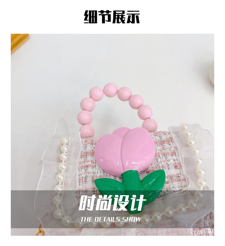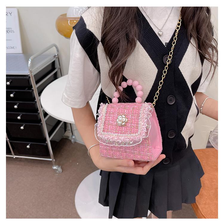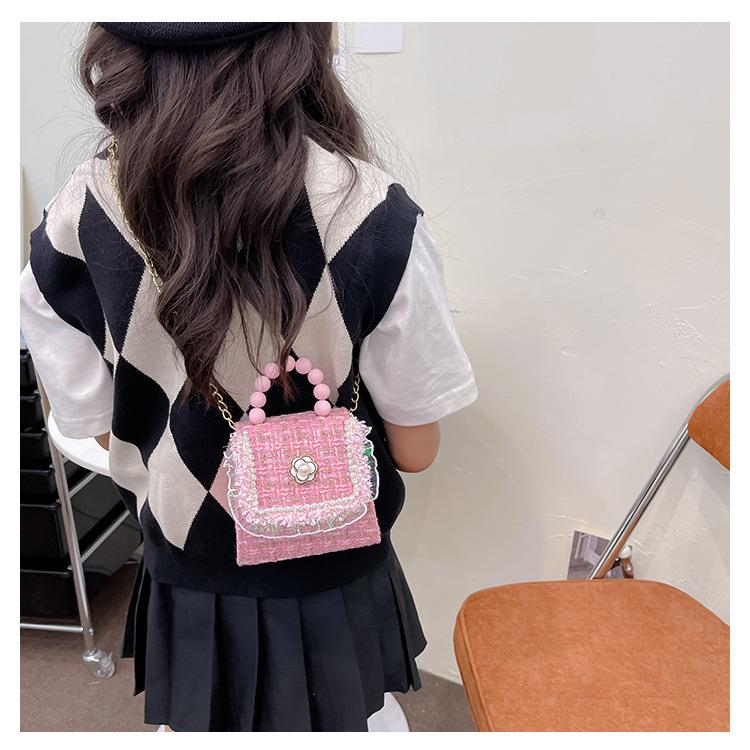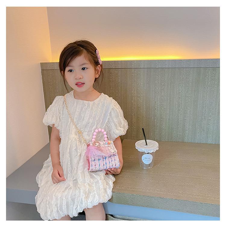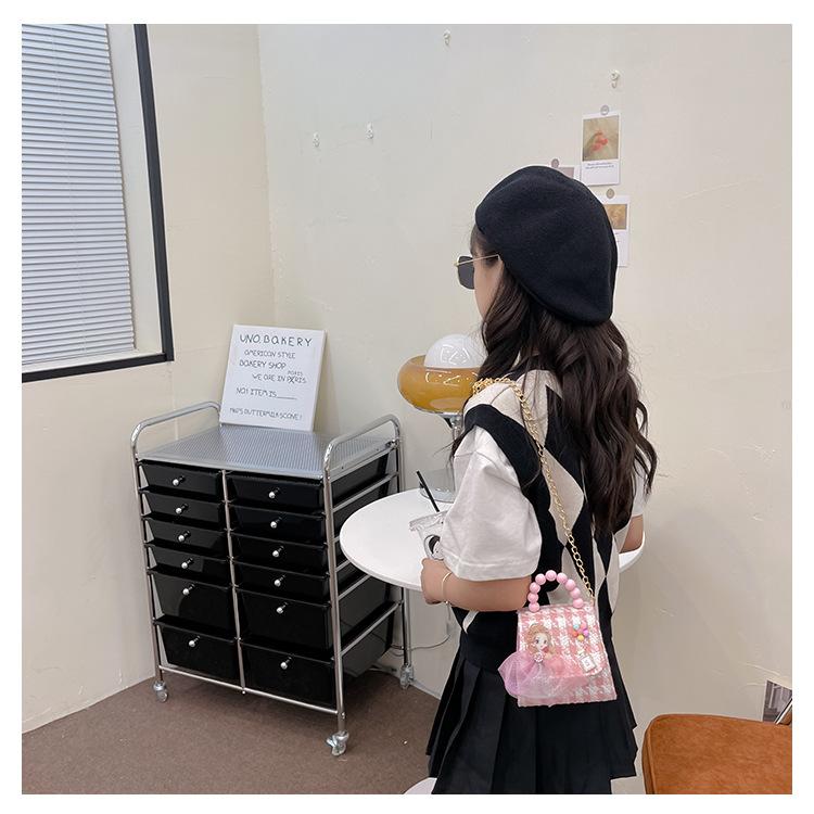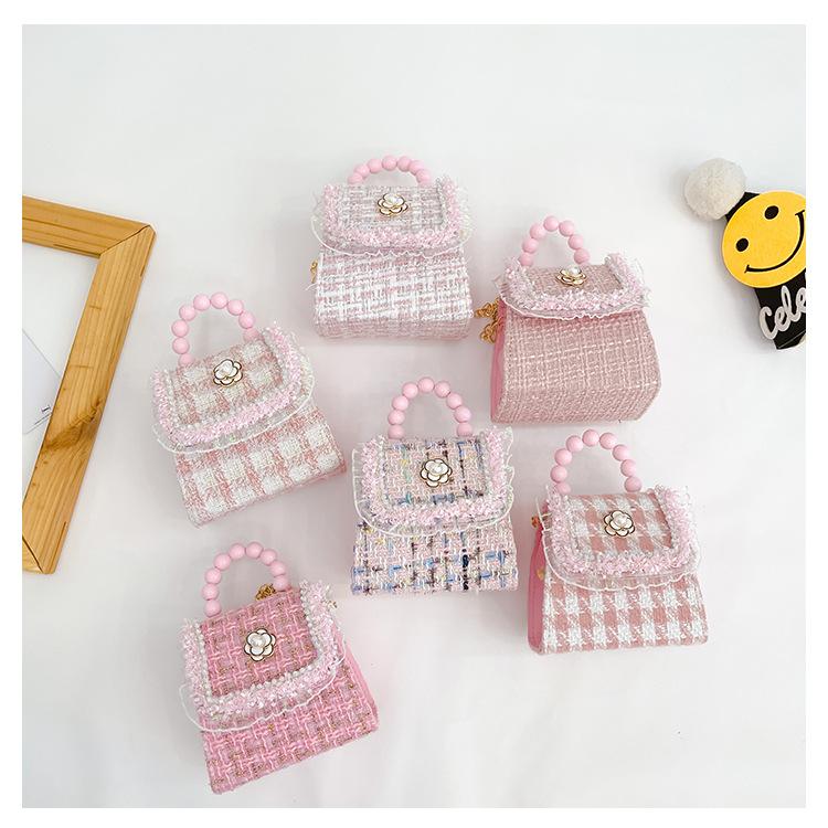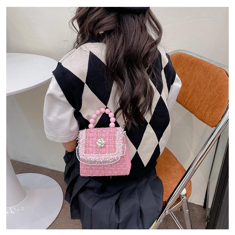 Nuevo bolso de hombro de moda para niños, bonito bolso de mensajero de PU para niñas, bonito bolso de mano con encaje de dibujos animados y perlas