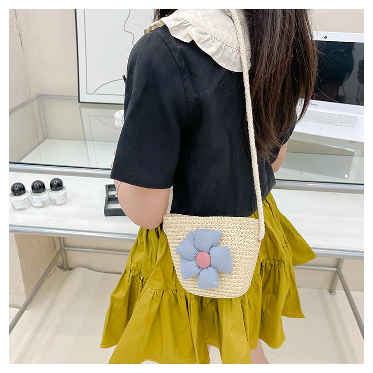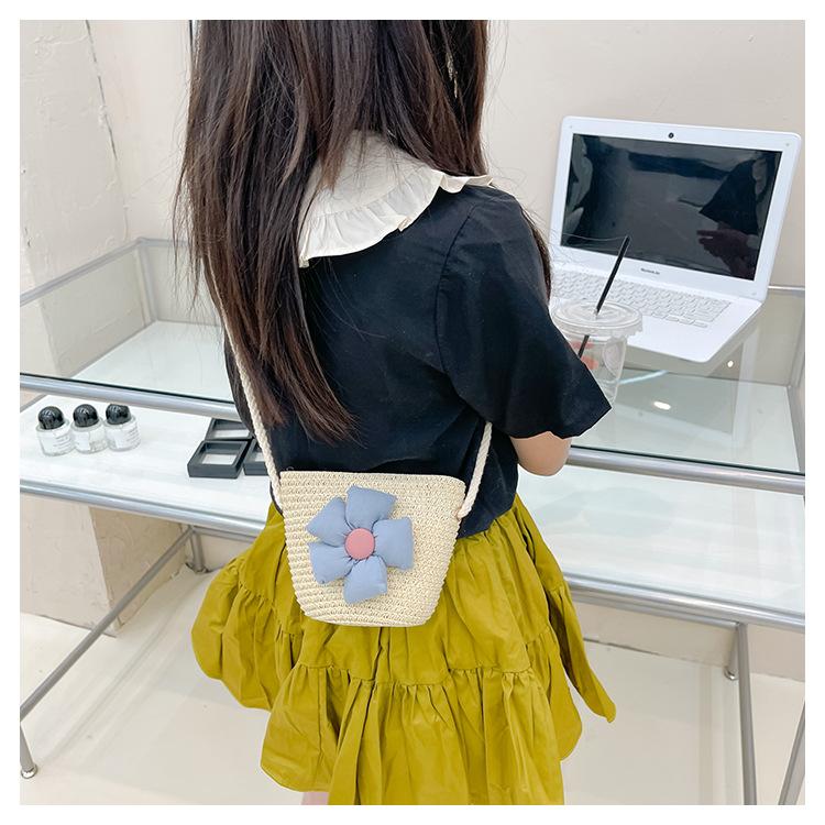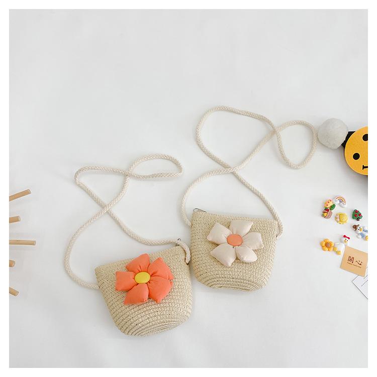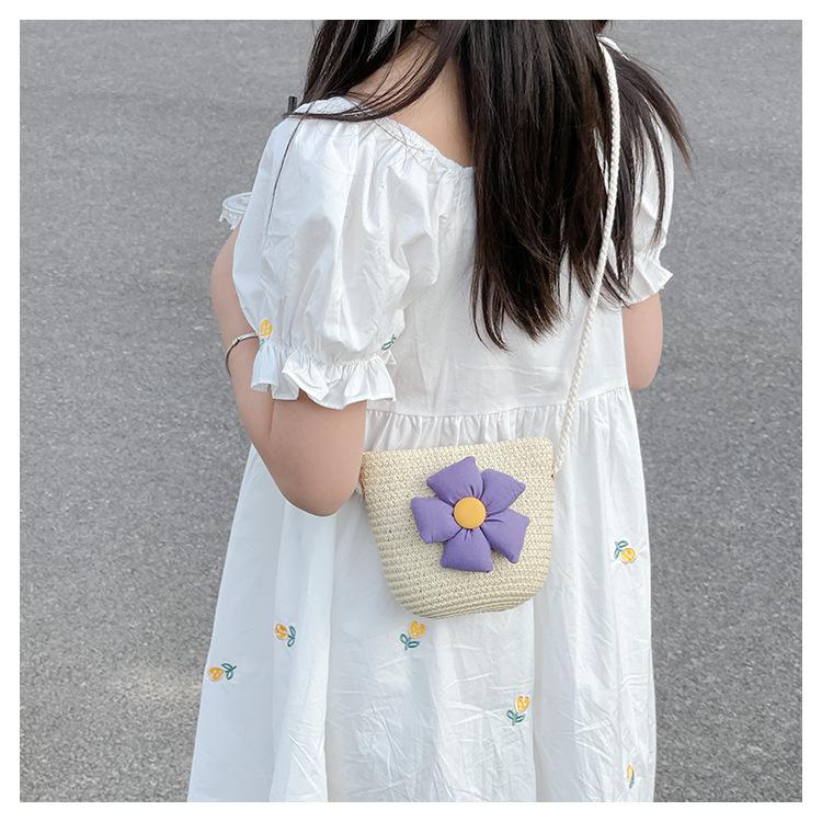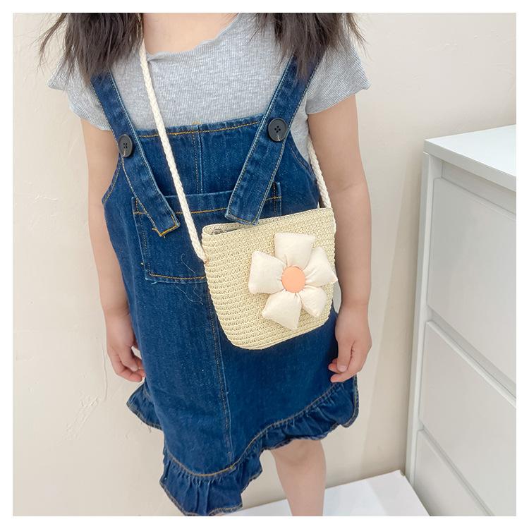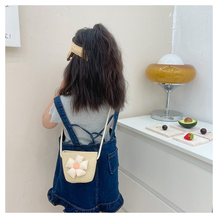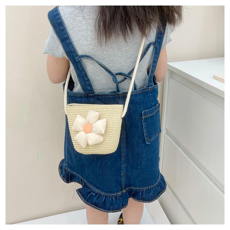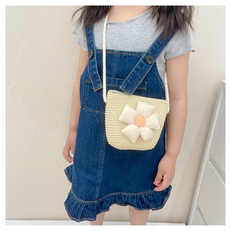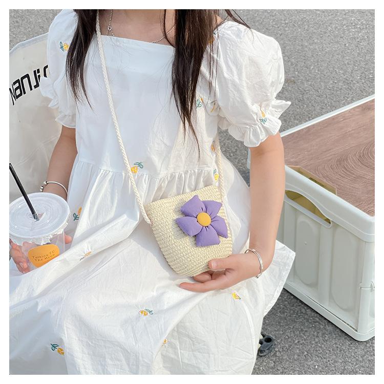 Bolsa Infantil de Paja de Flores Verano Nueva Bolsa Tejida para Playa Elegante Forma Cóncava para Niña Cruzada Monedero