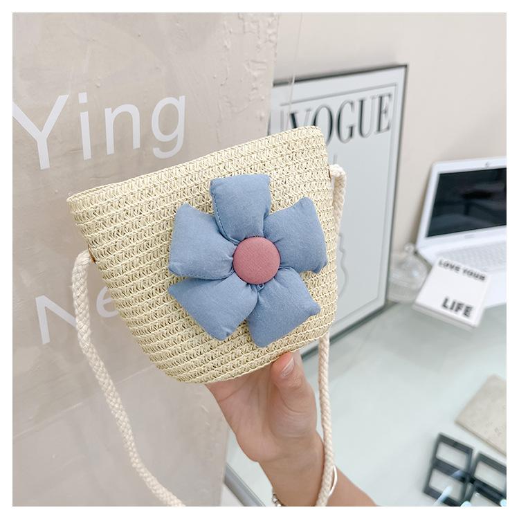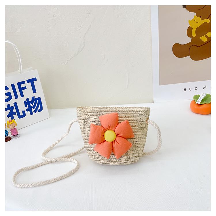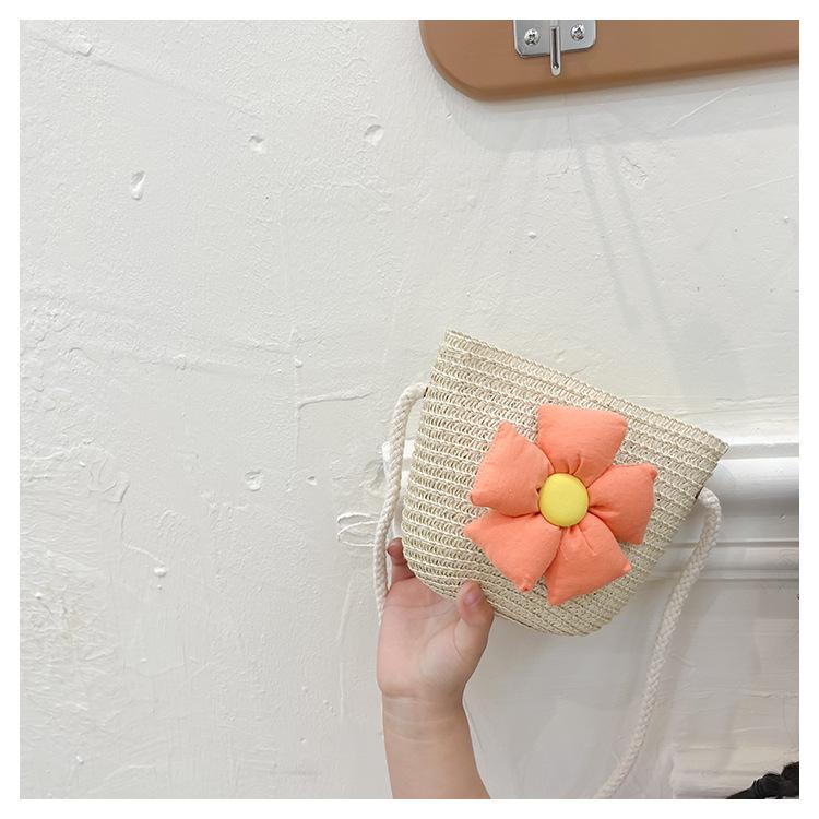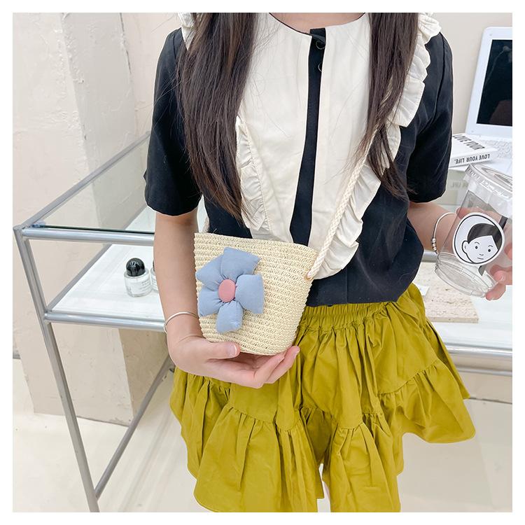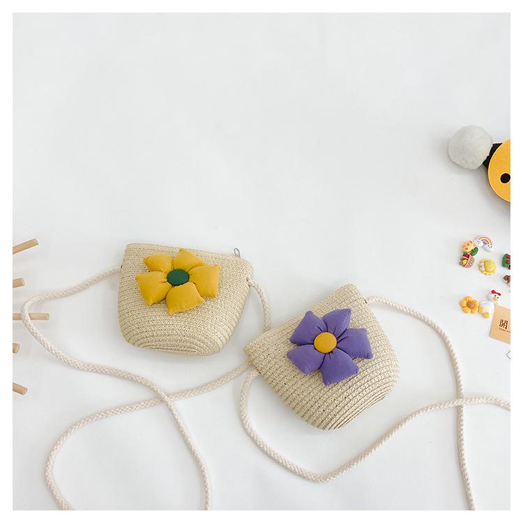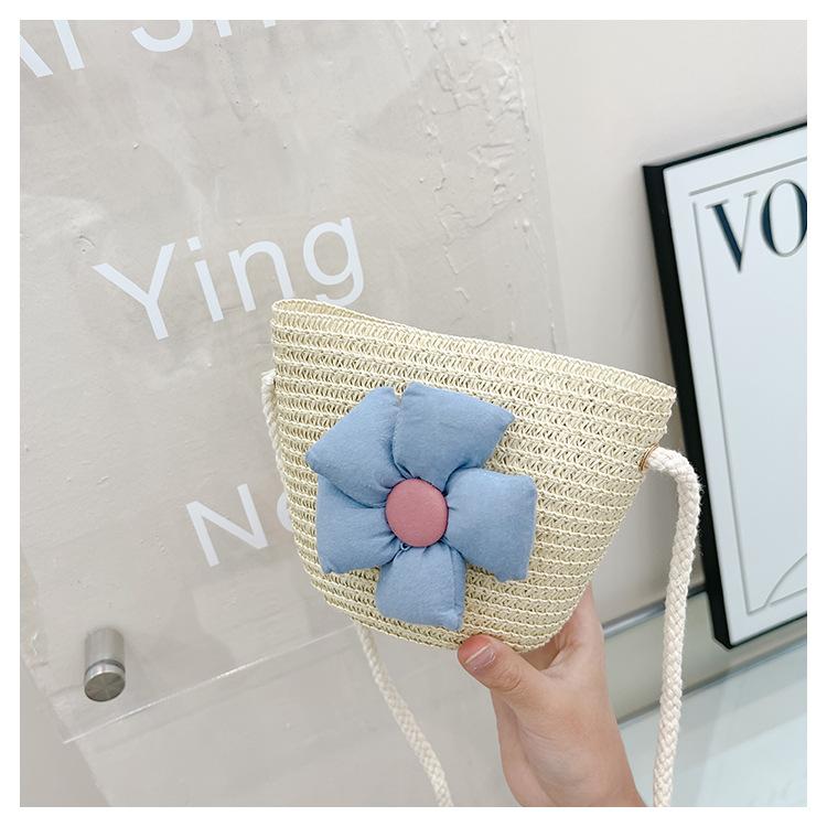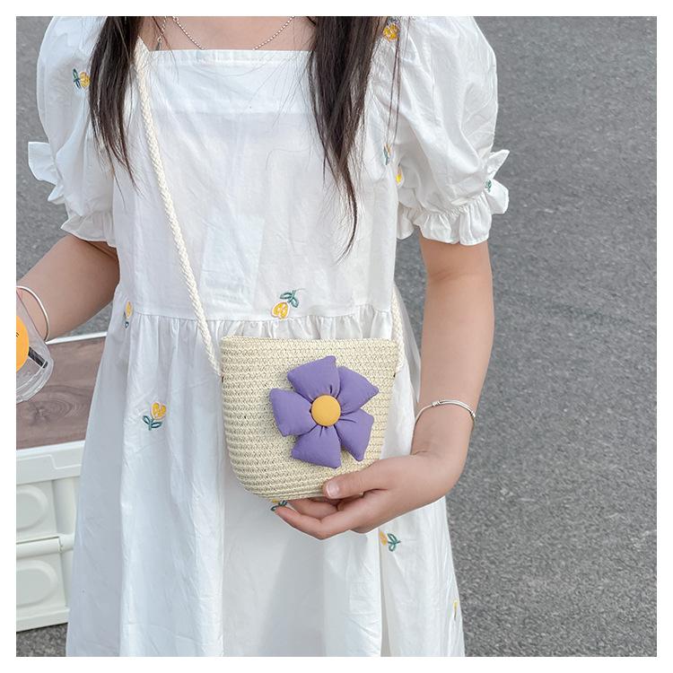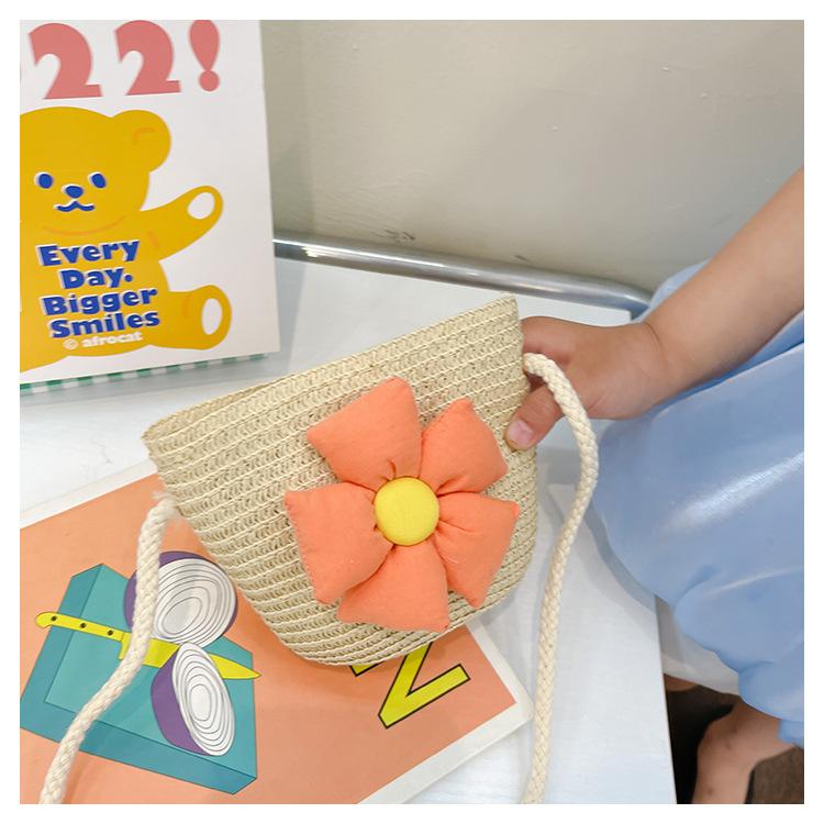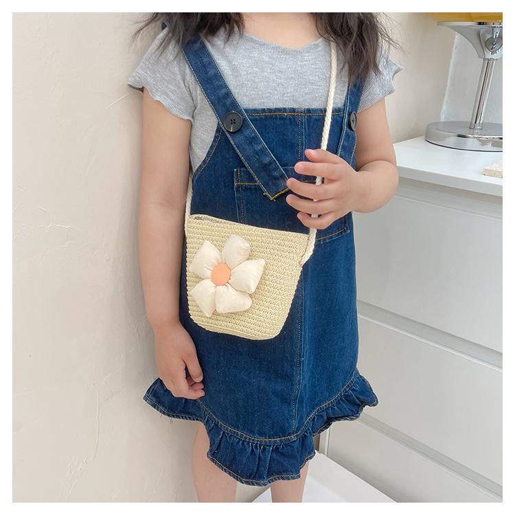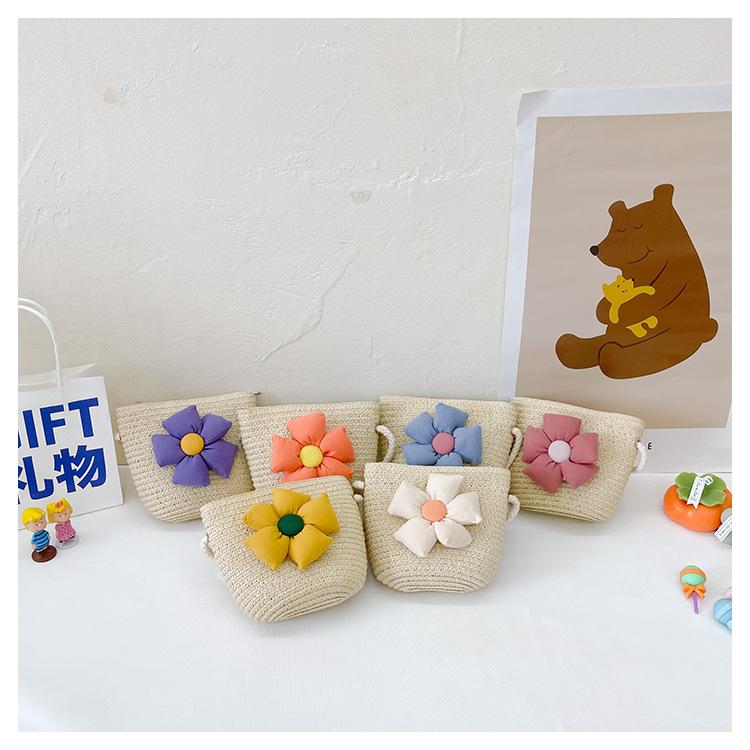 Bolsa Infantil de Paja de Flores Verano Nueva Bolsa Tejida para Playa Elegante Forma Cóncava para Niña Cruzada Monedero