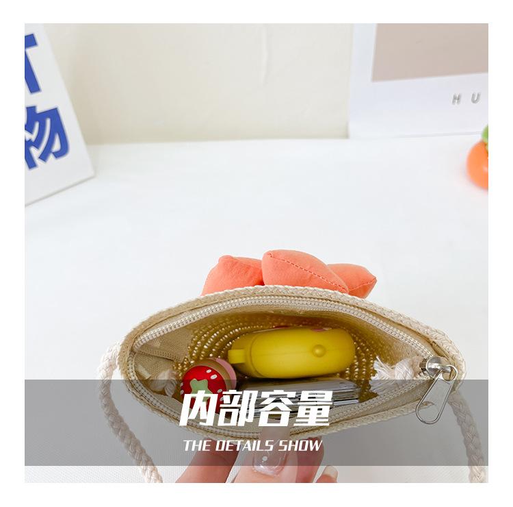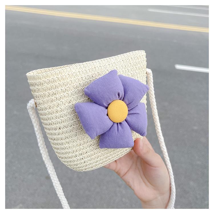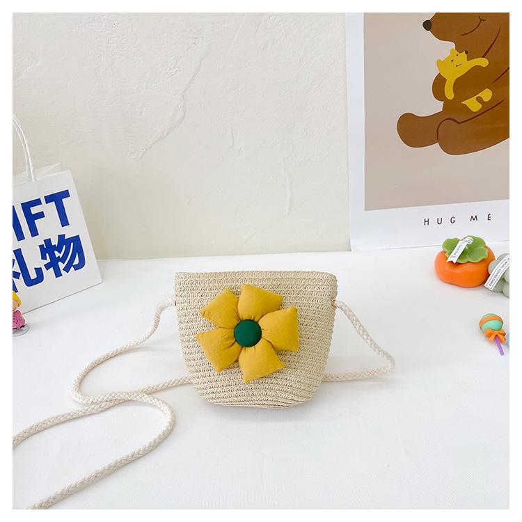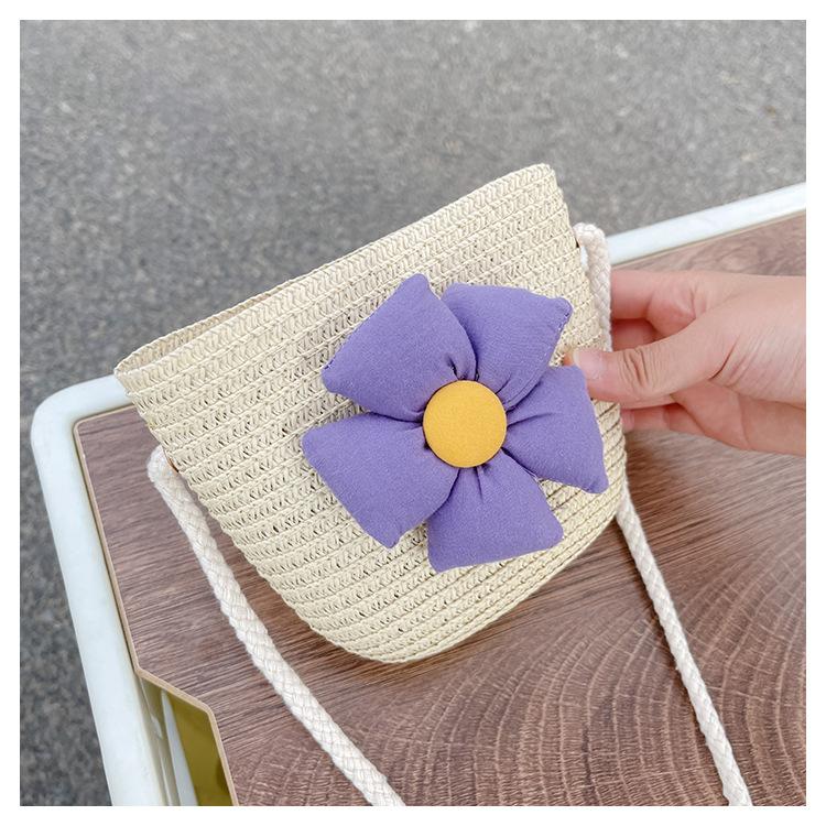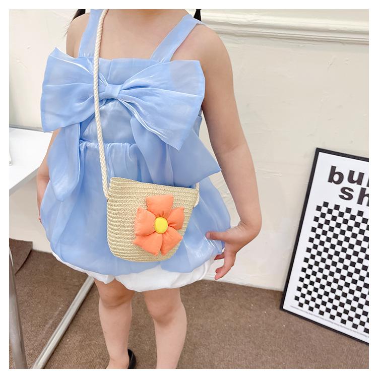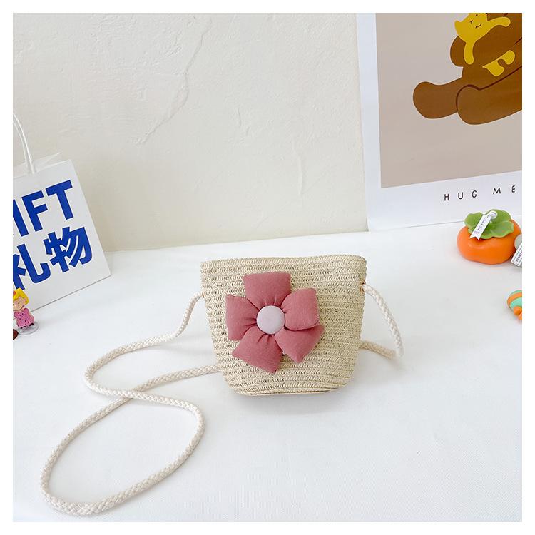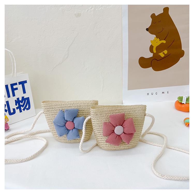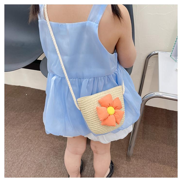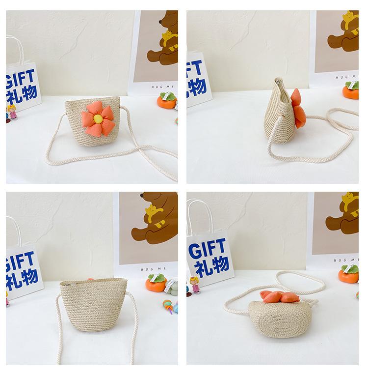 Bolsa Infantil de Paja de Flores Verano Nueva Bolsa Tejida para Playa Elegante Forma Cóncava para Niña Cruzada Monedero
