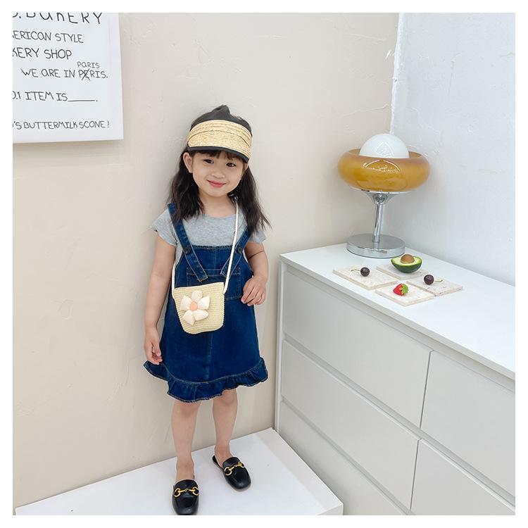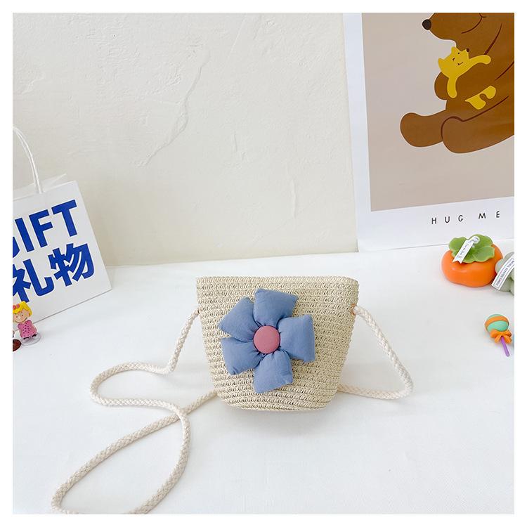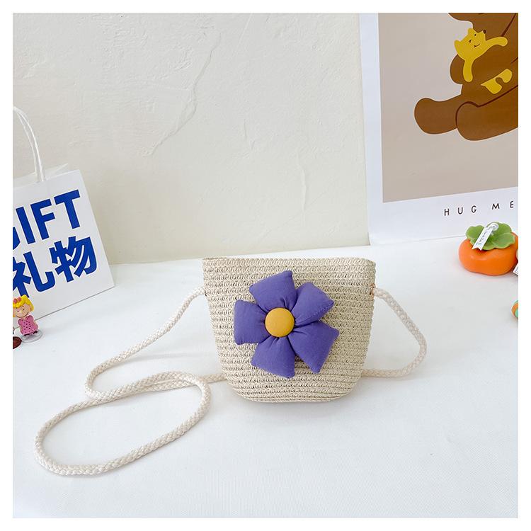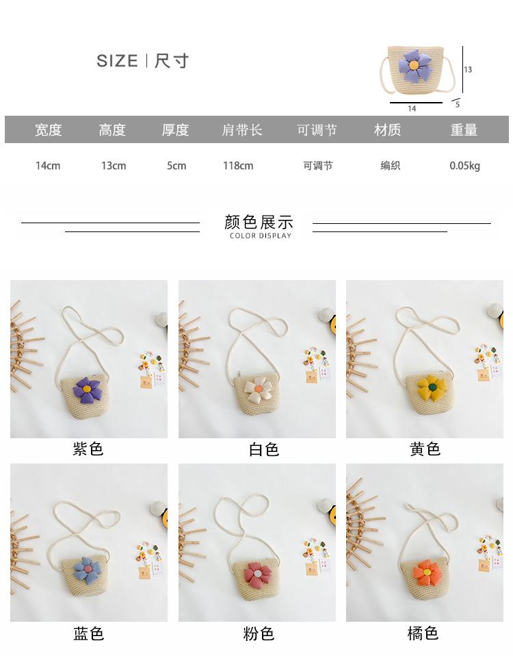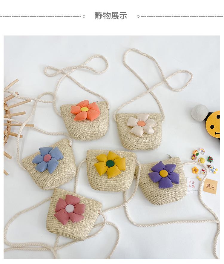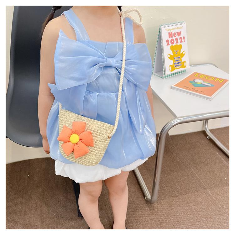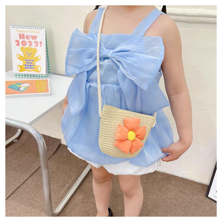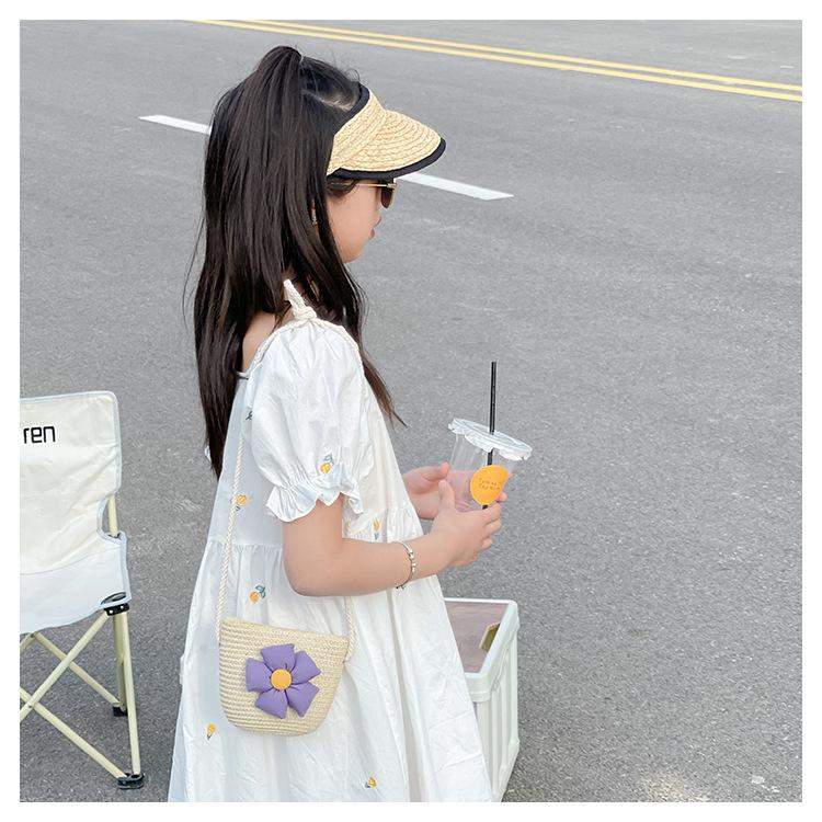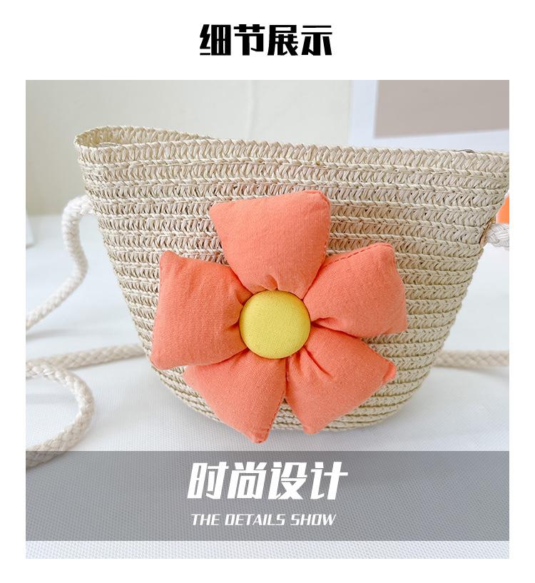 Bolsa Infantil de Paja de Flores Verano Nueva Bolsa Tejida para Playa Elegante Forma Cóncava para Niña Cruzada Monedero