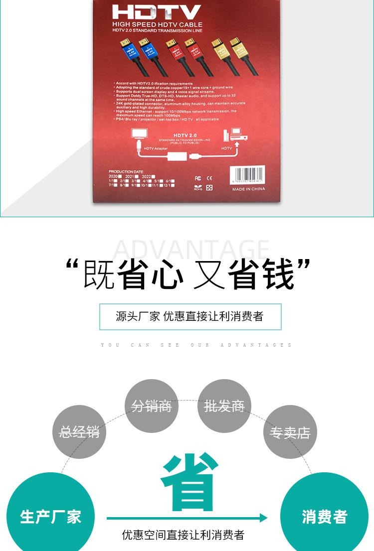 Cable HDMI HD 4K*2K 19+1 Cable de conexión HD para decodificador de TV HDMI2.0V Paquete de caja a color 4K2,85 yuanesComprar ahora>