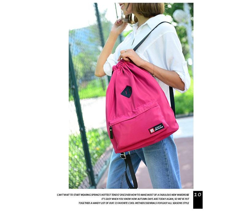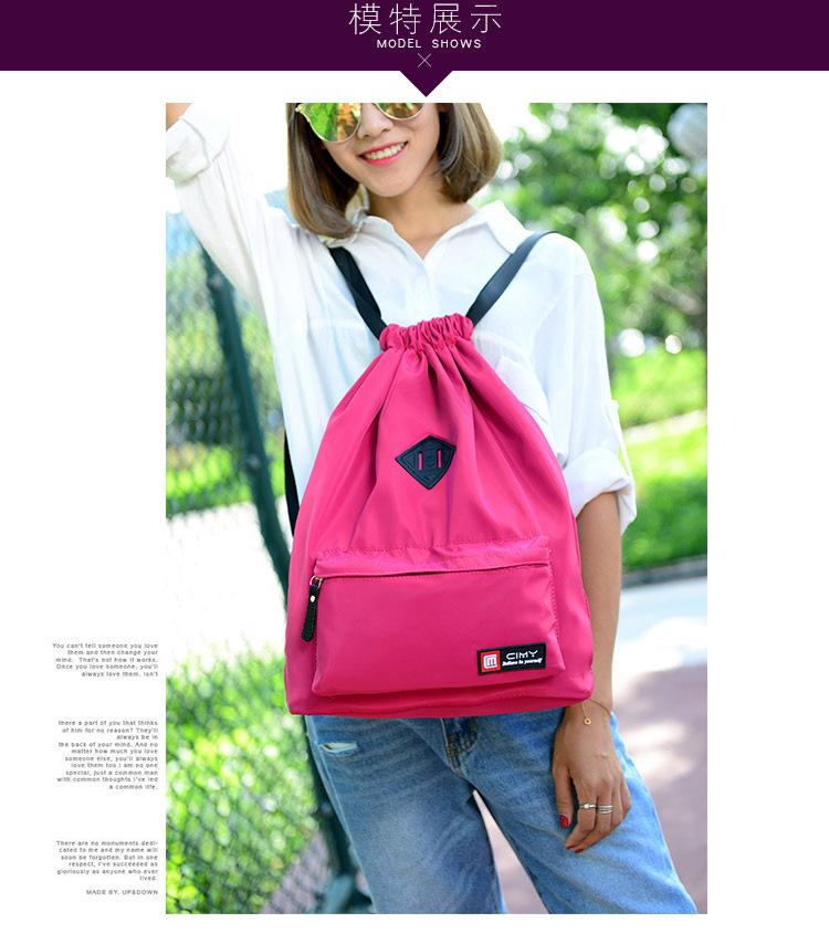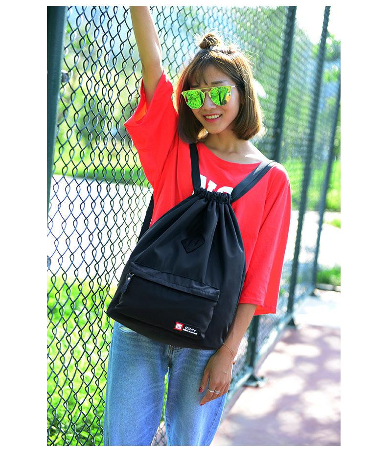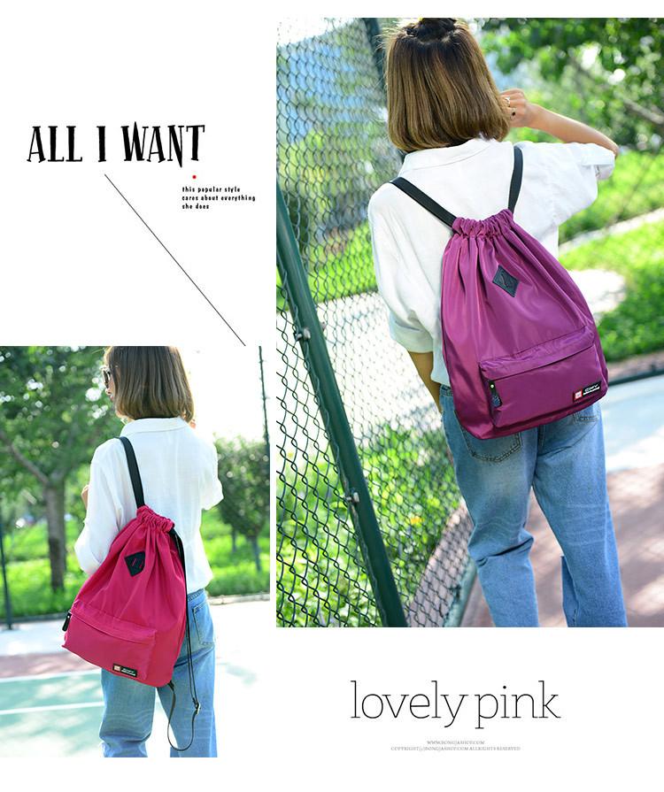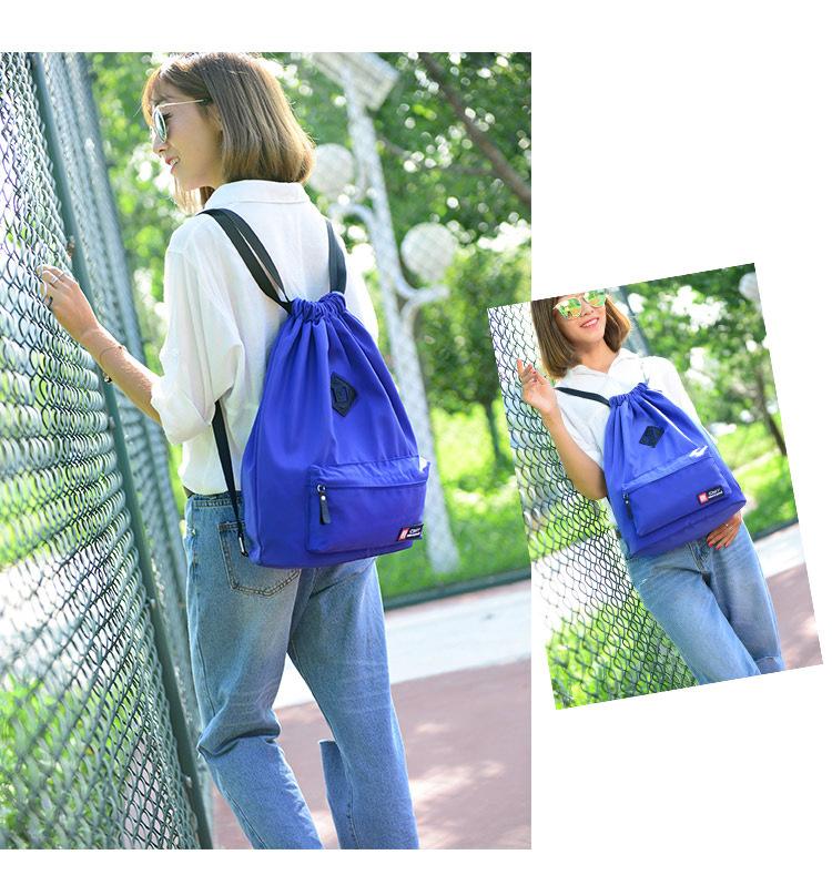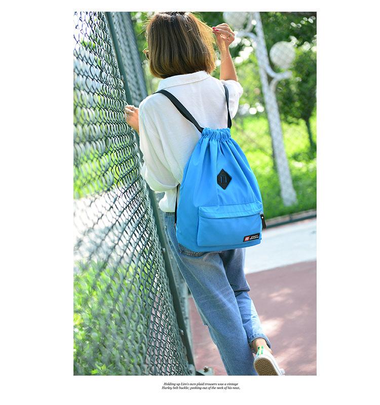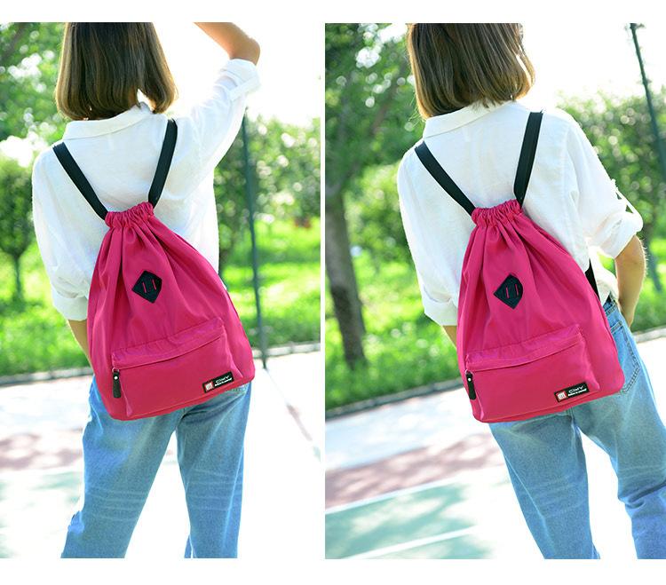 Mochila con cordón de nailon para mujer, ligera, plegable, para hombre, para viajes, deportes al aire libre, bolsa de gimnasio sencilla