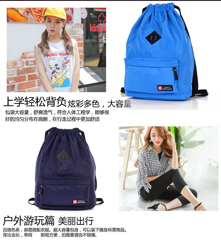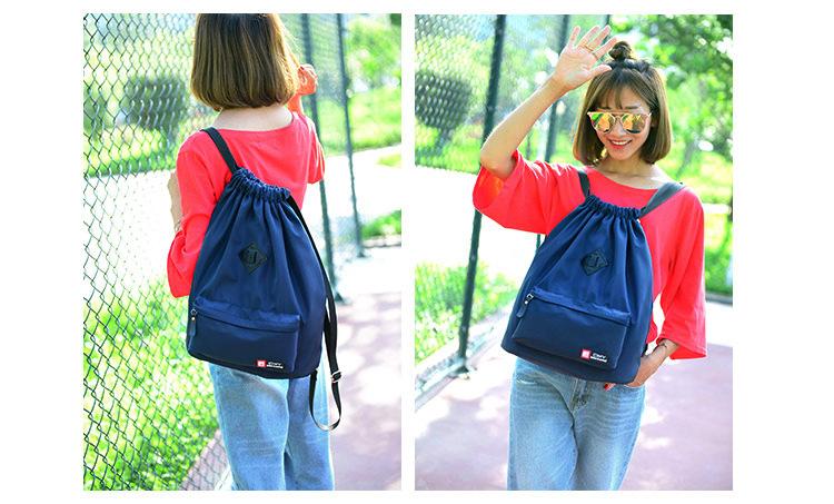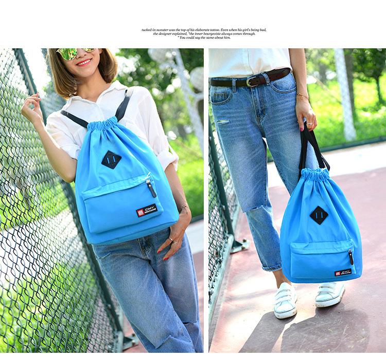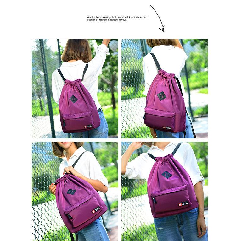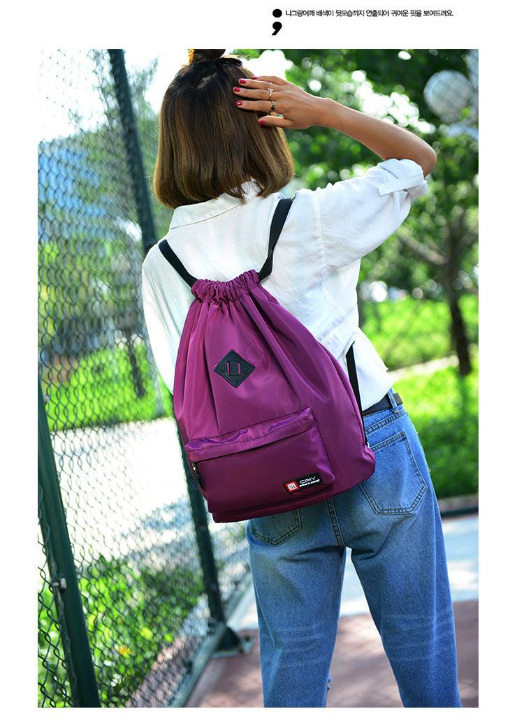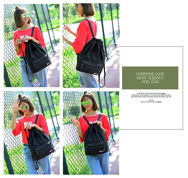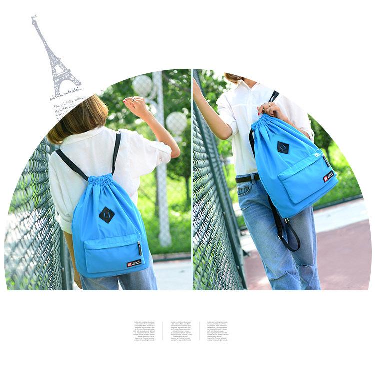 Mochila con cordón de nailon para mujer, ligera, plegable, para hombre, para viajes, deportes al aire libre, bolsa de gimnasio sencilla