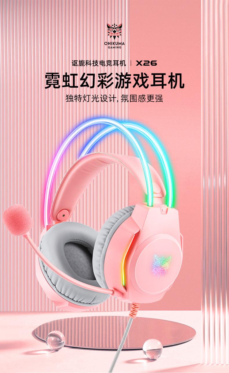Auriculares para juegos de ordenador ONIKUMA x26 con tecnología de cabeza electrónica, con haz de luz y cableado para comer pollos y explosiones transfronterizas.