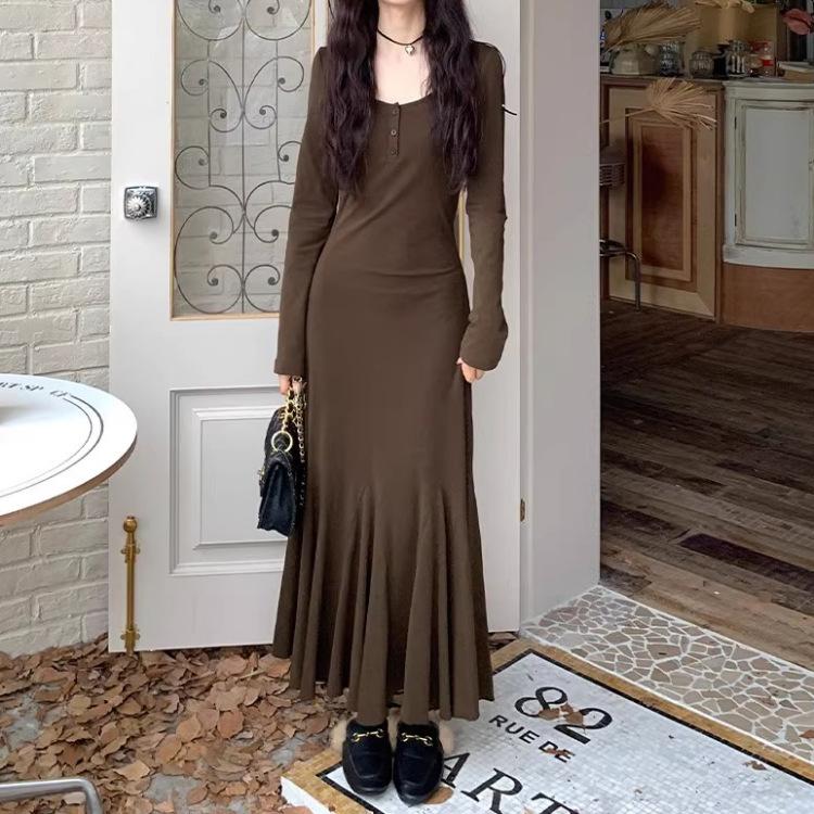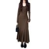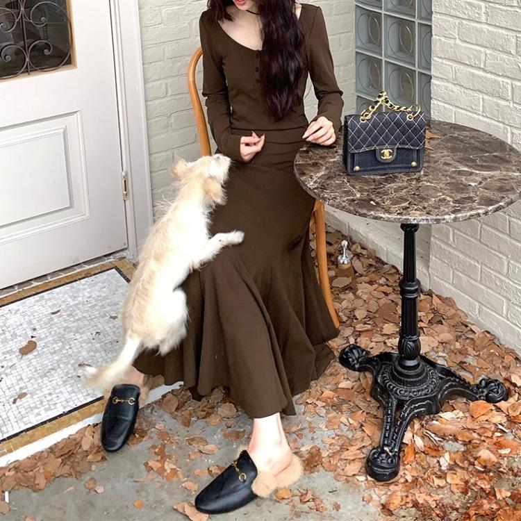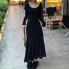 Ropa de otoño para mujer, vestido de cola de pez de cintura alta adelgazante de estilo francés, falda elegante de manga larga ajustada a la cintura para mujer de principios de otoño, estilo Chanel