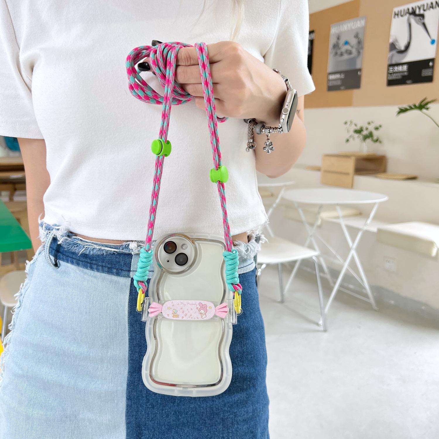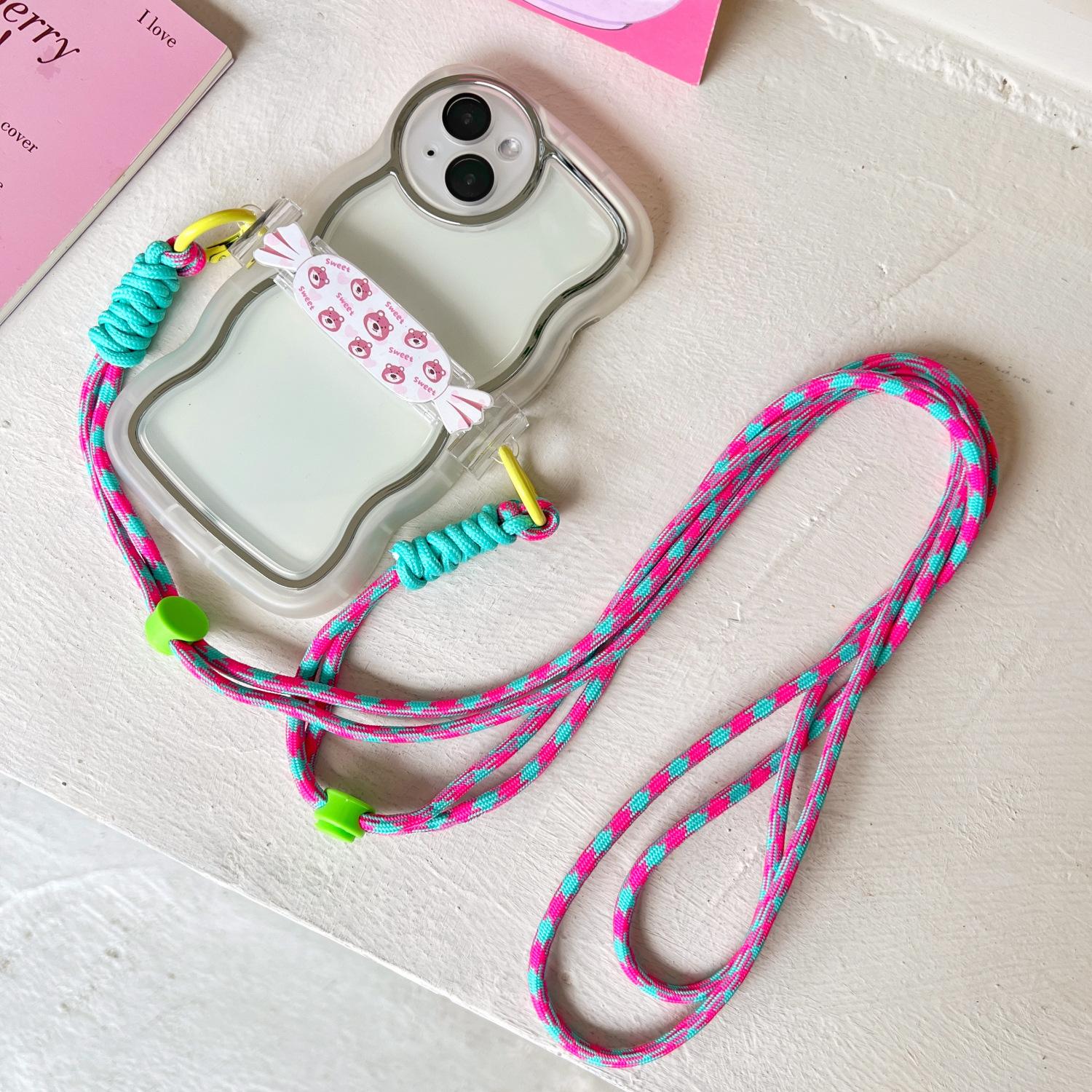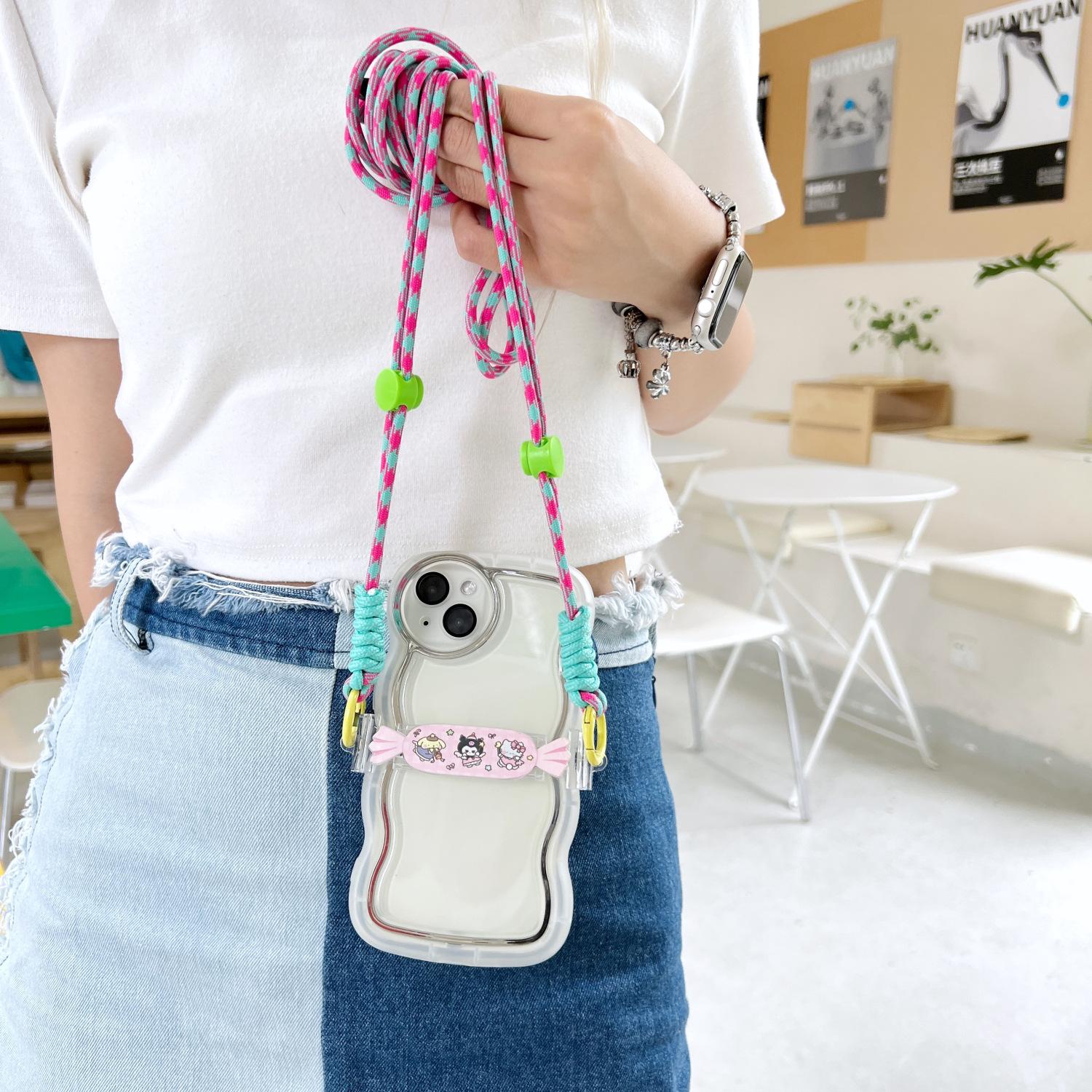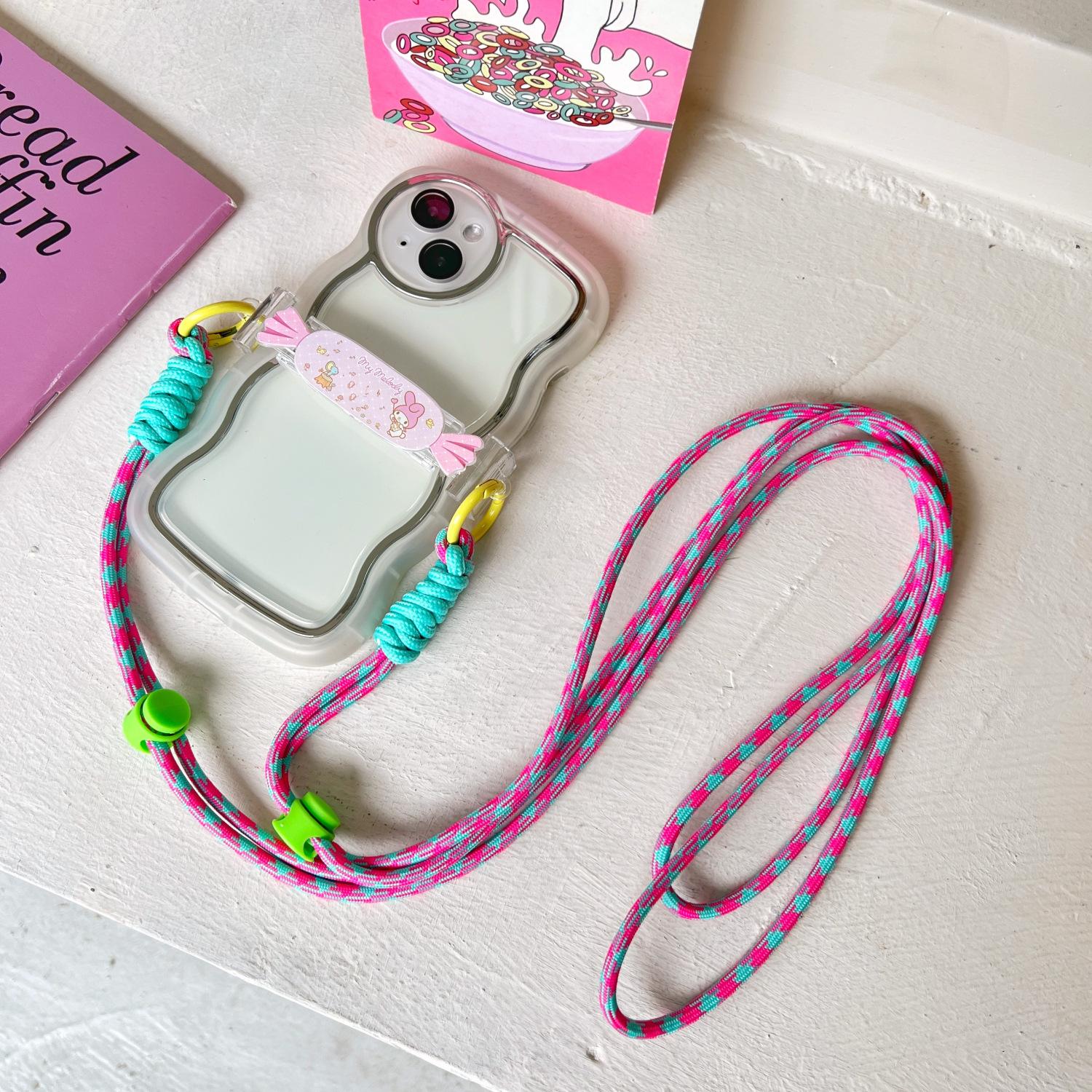 Adecuado para Correa Cruzada con Clip Trasero para Teléfono Móvil Apple, Se Puede Llevar en la Espalda, Compatible con Modelos 16/15/14, Dibujos Animados Caramelo Largo Clip Trasero Correa Larga