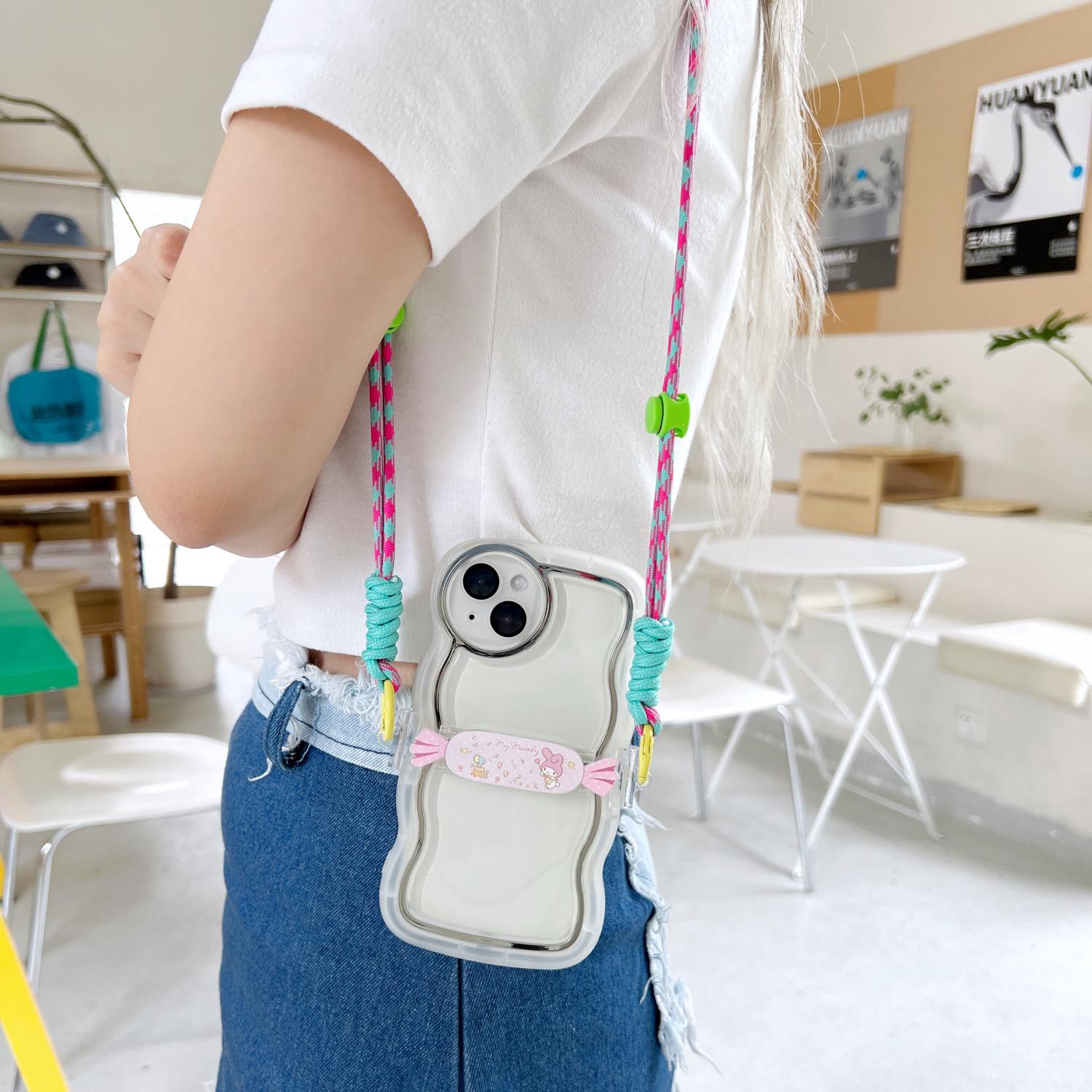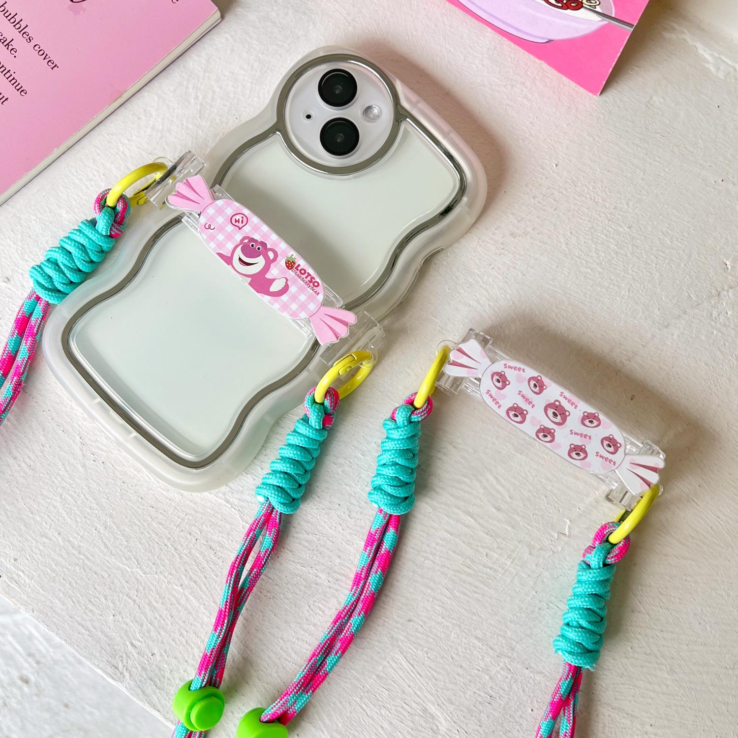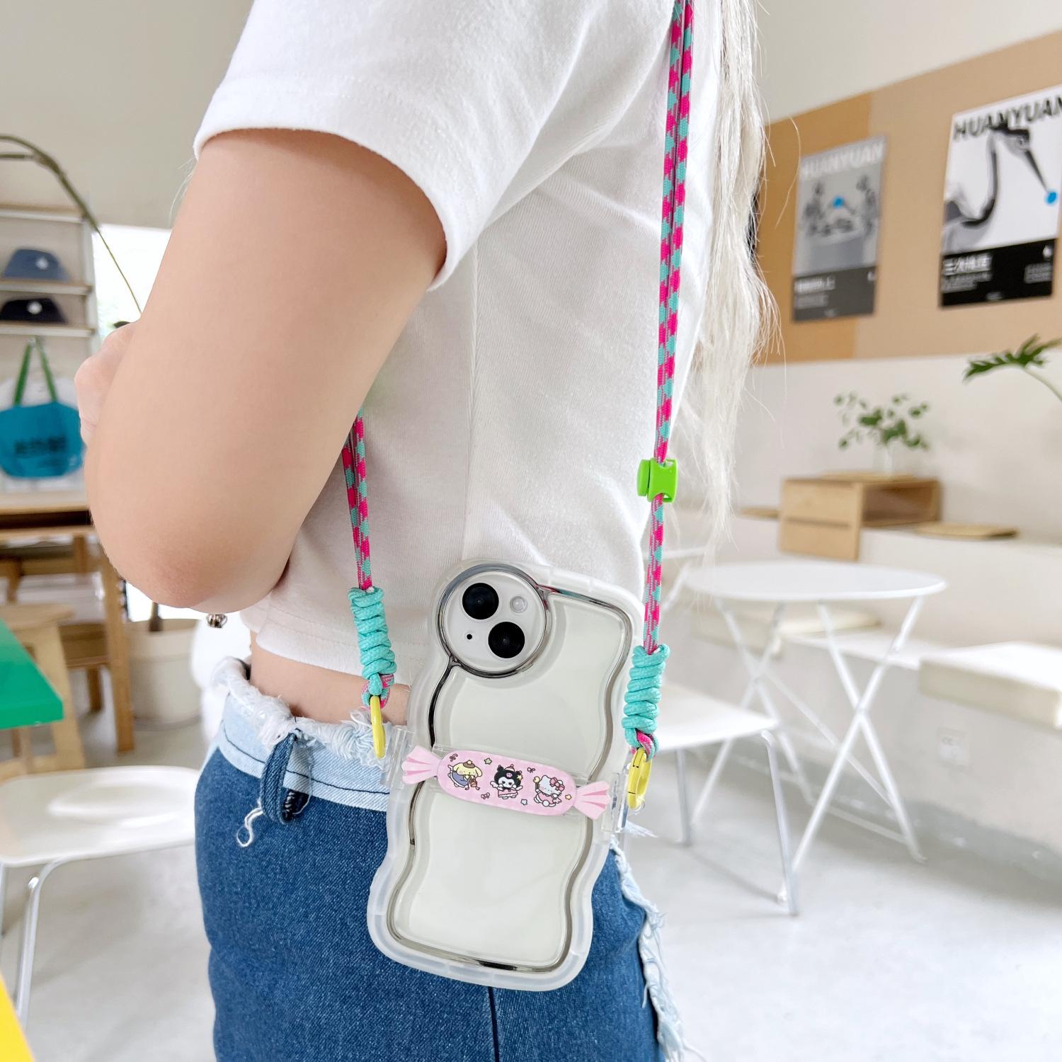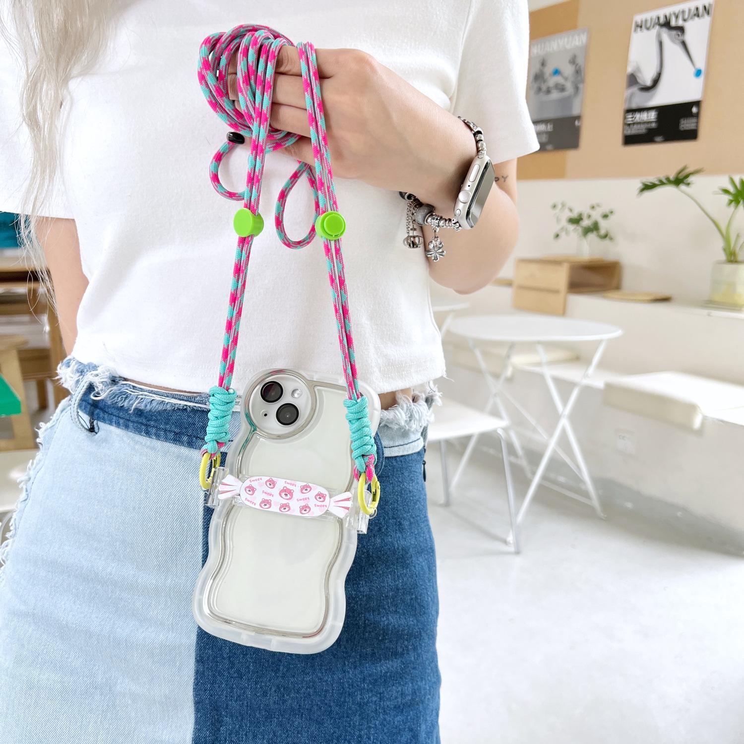 Adecuado para Correa Cruzada con Clip Trasero para Teléfono Móvil Apple, Se Puede Llevar en la Espalda, Compatible con Modelos 16/15/14, Dibujos Animados Caramelo Largo Clip Trasero Correa Larga