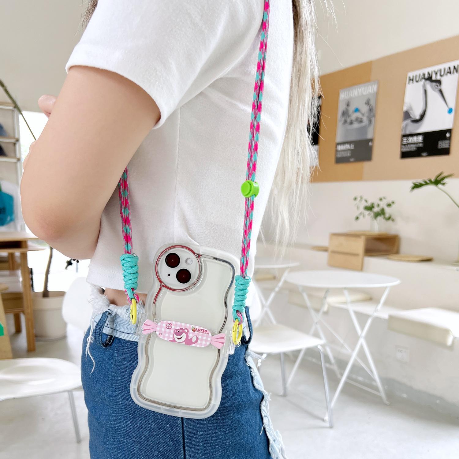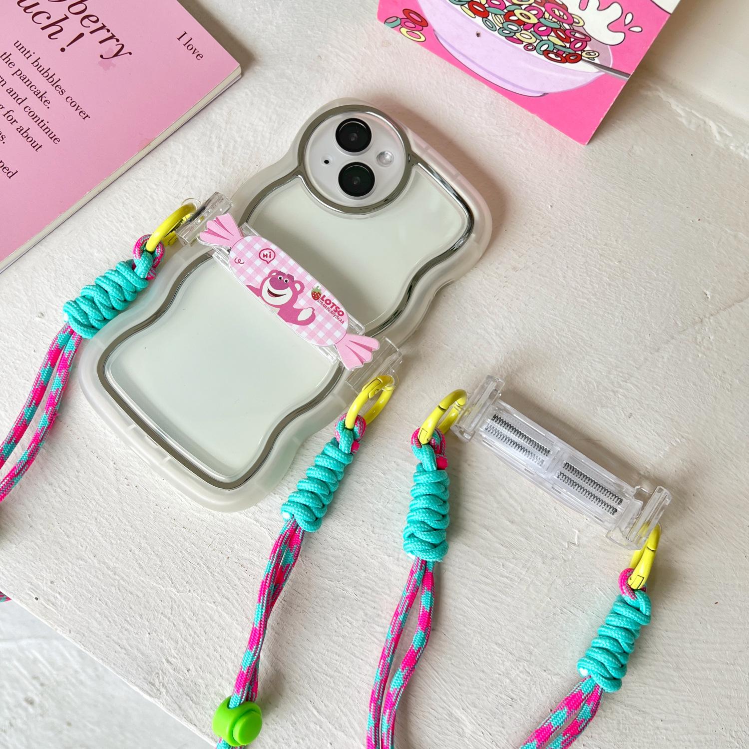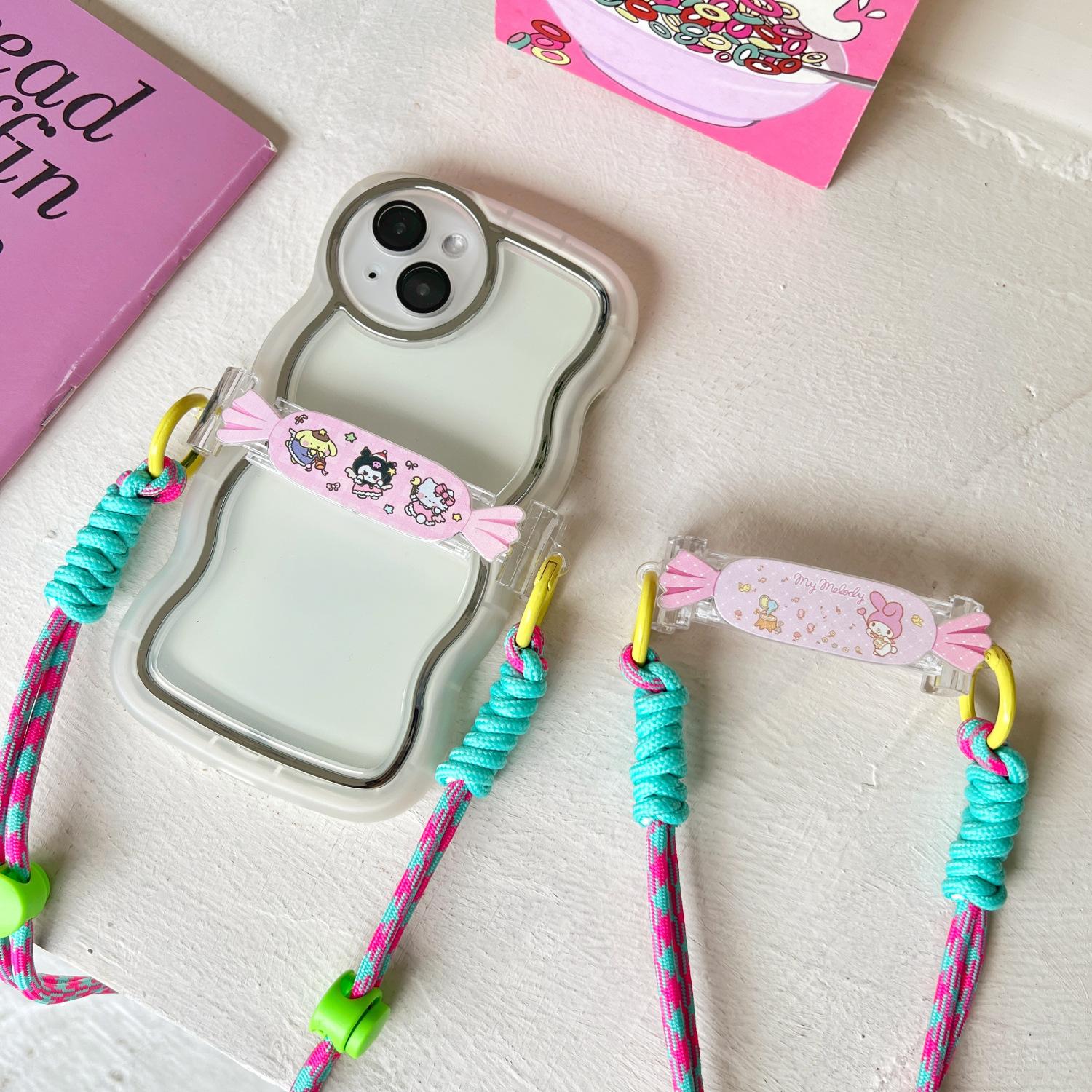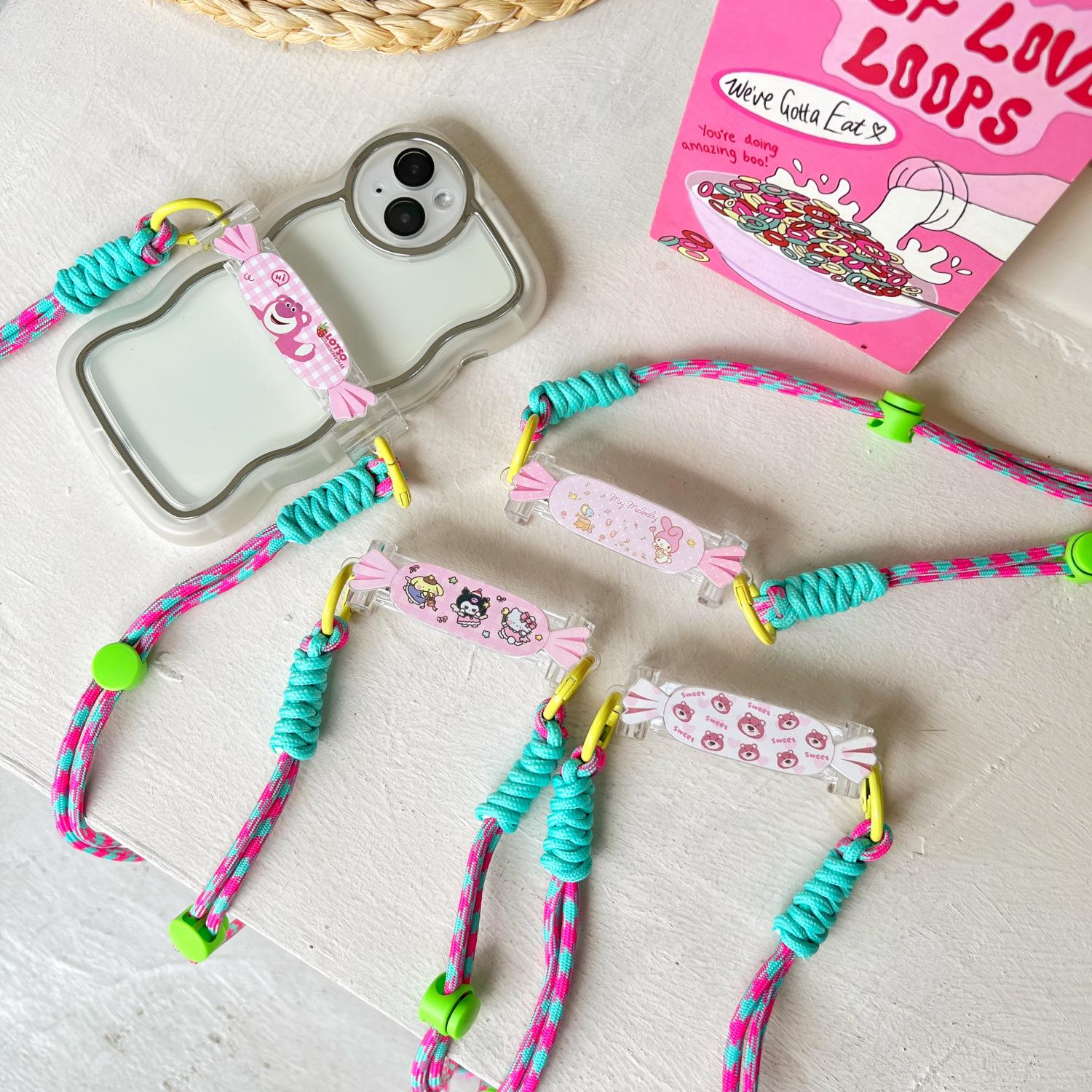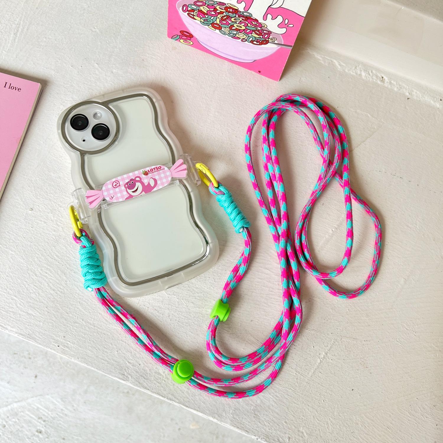 Adecuado para Correa Cruzada con Clip Trasero para Teléfono Móvil Apple, Se Puede Llevar en la Espalda, Compatible con Modelos 16/15/14, Dibujos Animados Caramelo Largo Clip Trasero Correa Larga