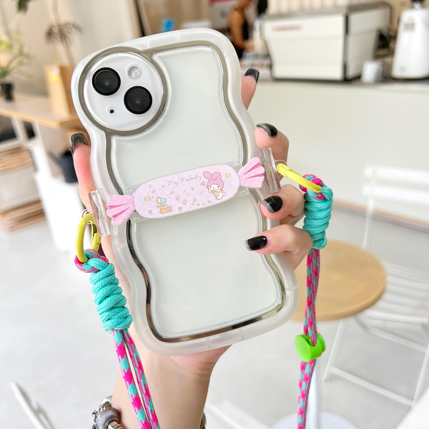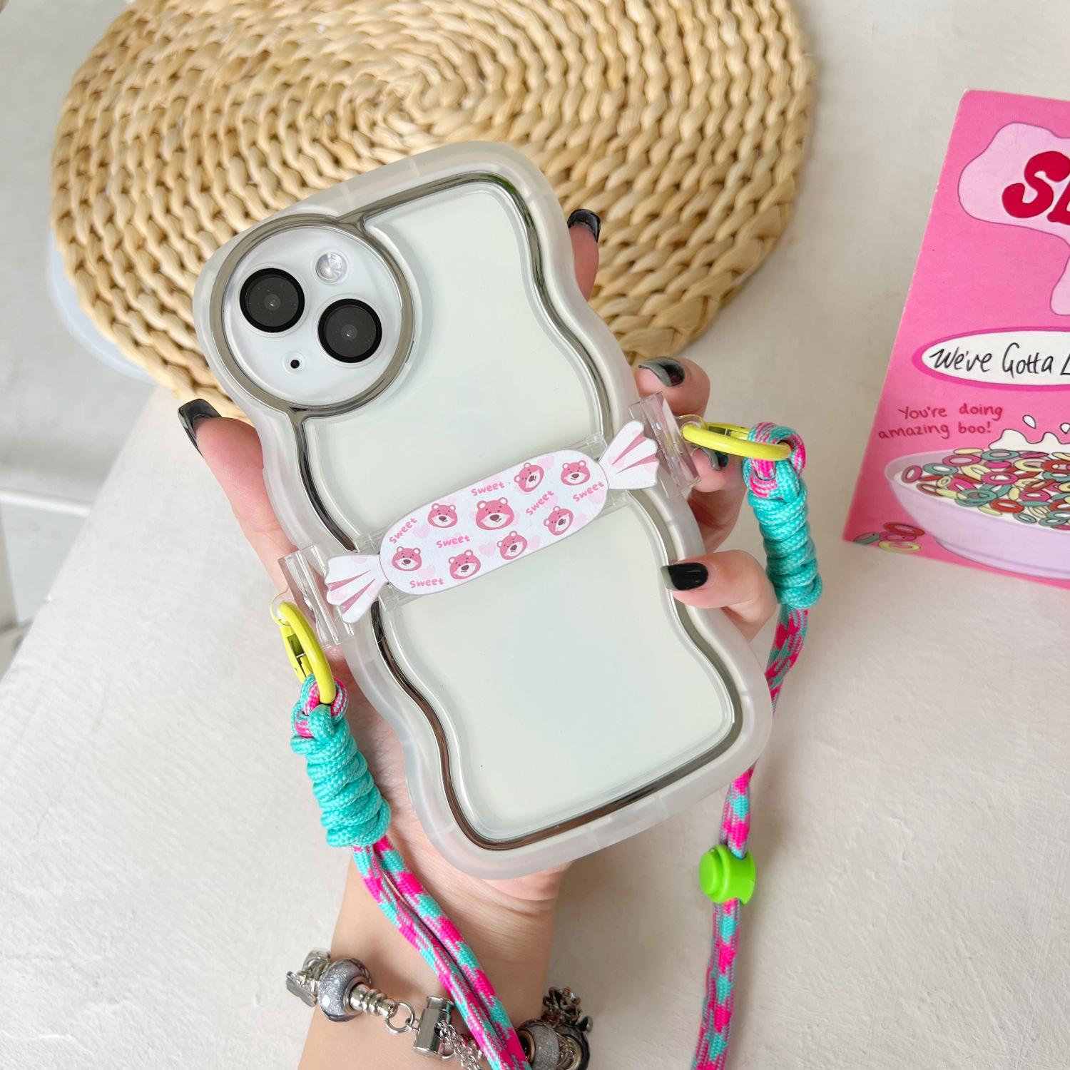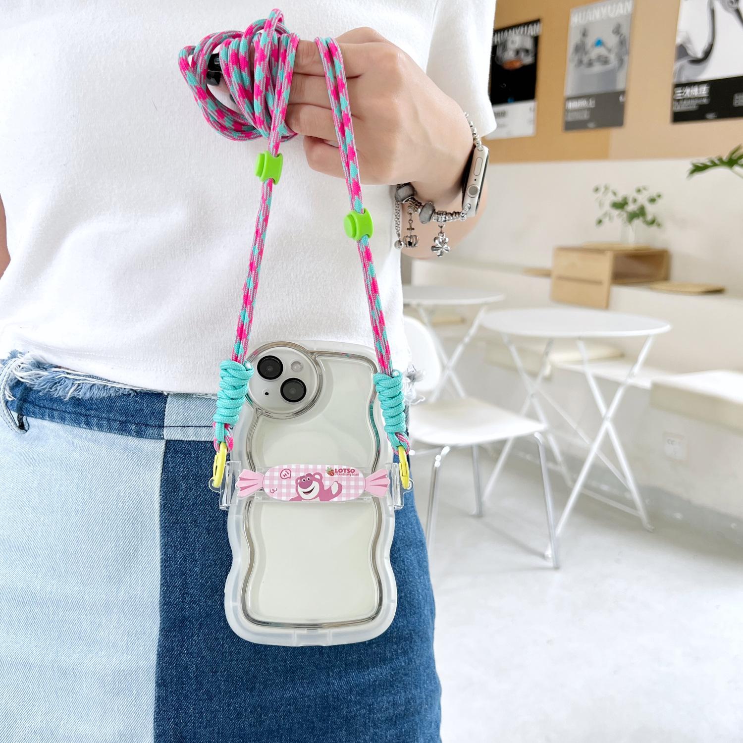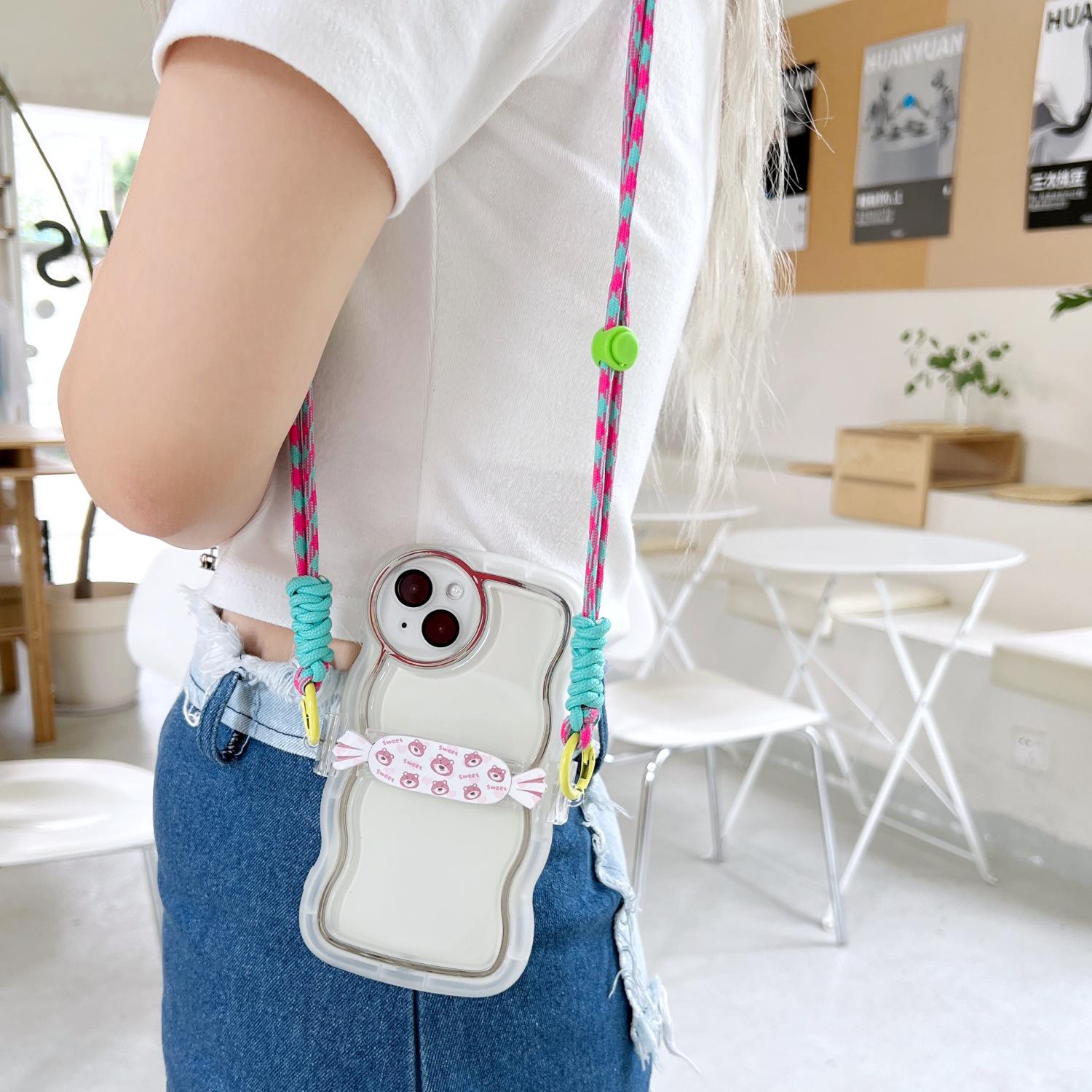 Adecuado para Correa Cruzada con Clip Trasero para Teléfono Móvil Apple, Se Puede Llevar en la Espalda, Compatible con Modelos 16/15/14, Dibujos Animados Caramelo Largo Clip Trasero Correa Larga