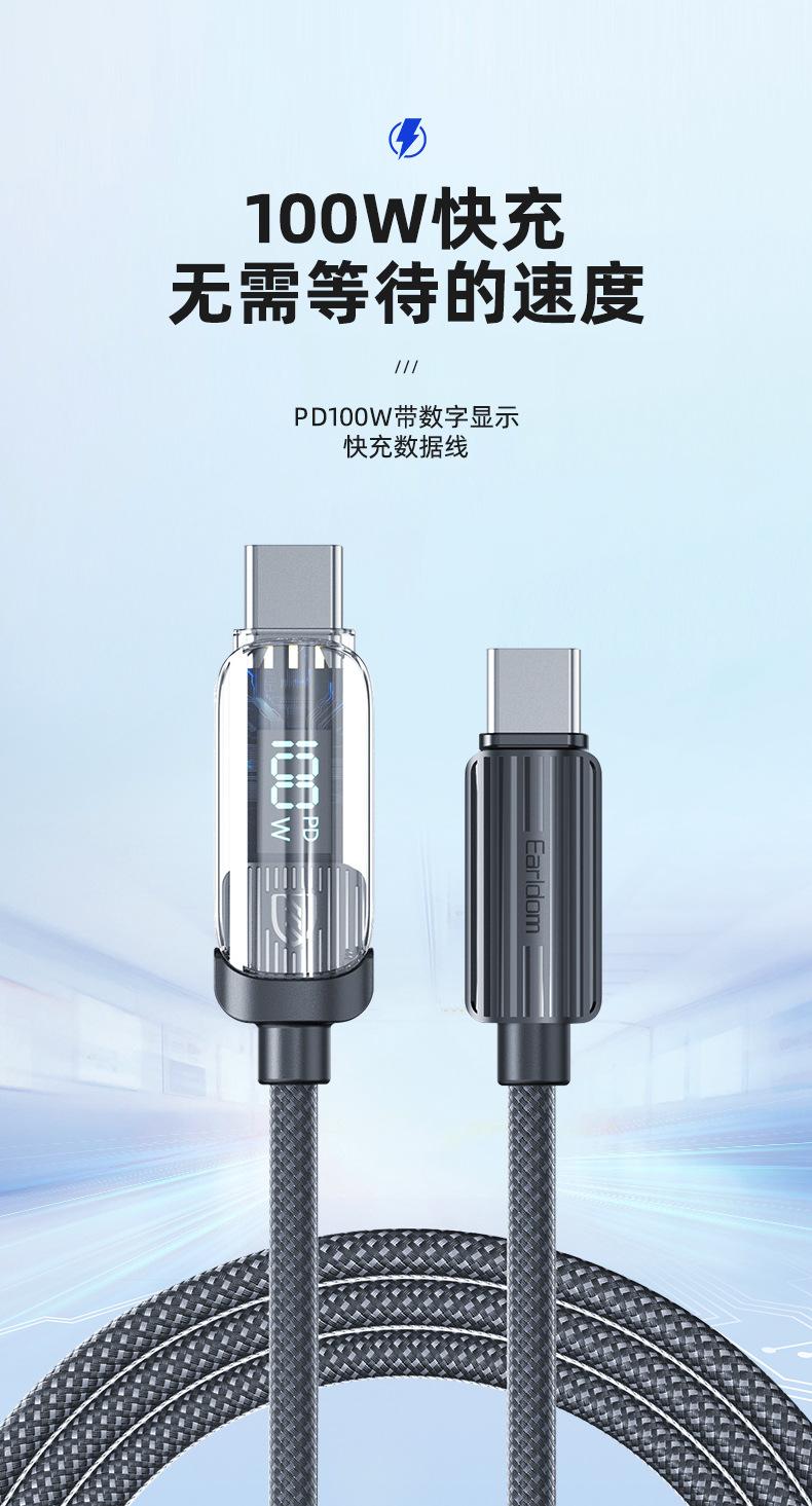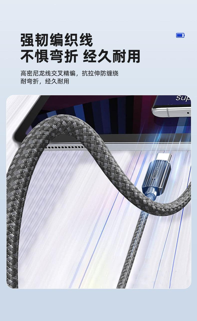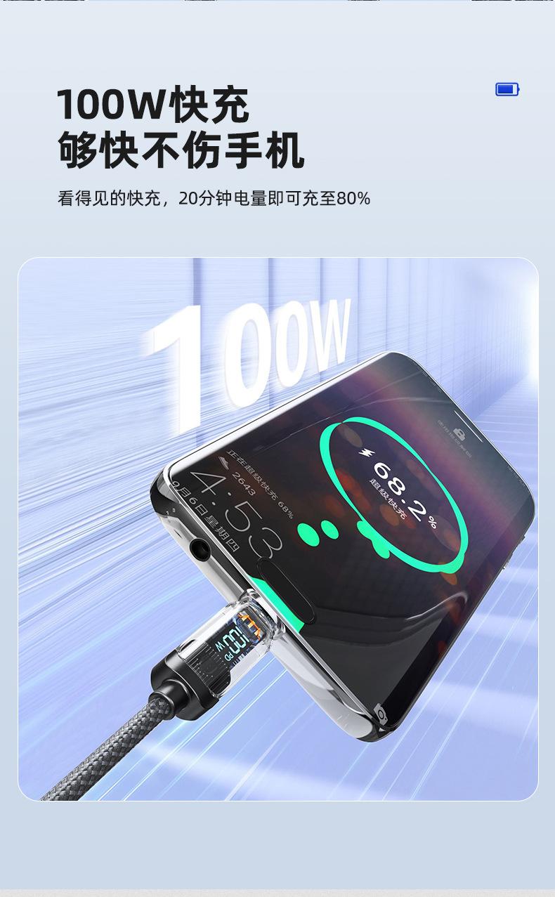Cable de datos transparente PD20W, cable tipo C de carga súper rápida de 100 W, compatible con Apple 15 y Huawei 6A.