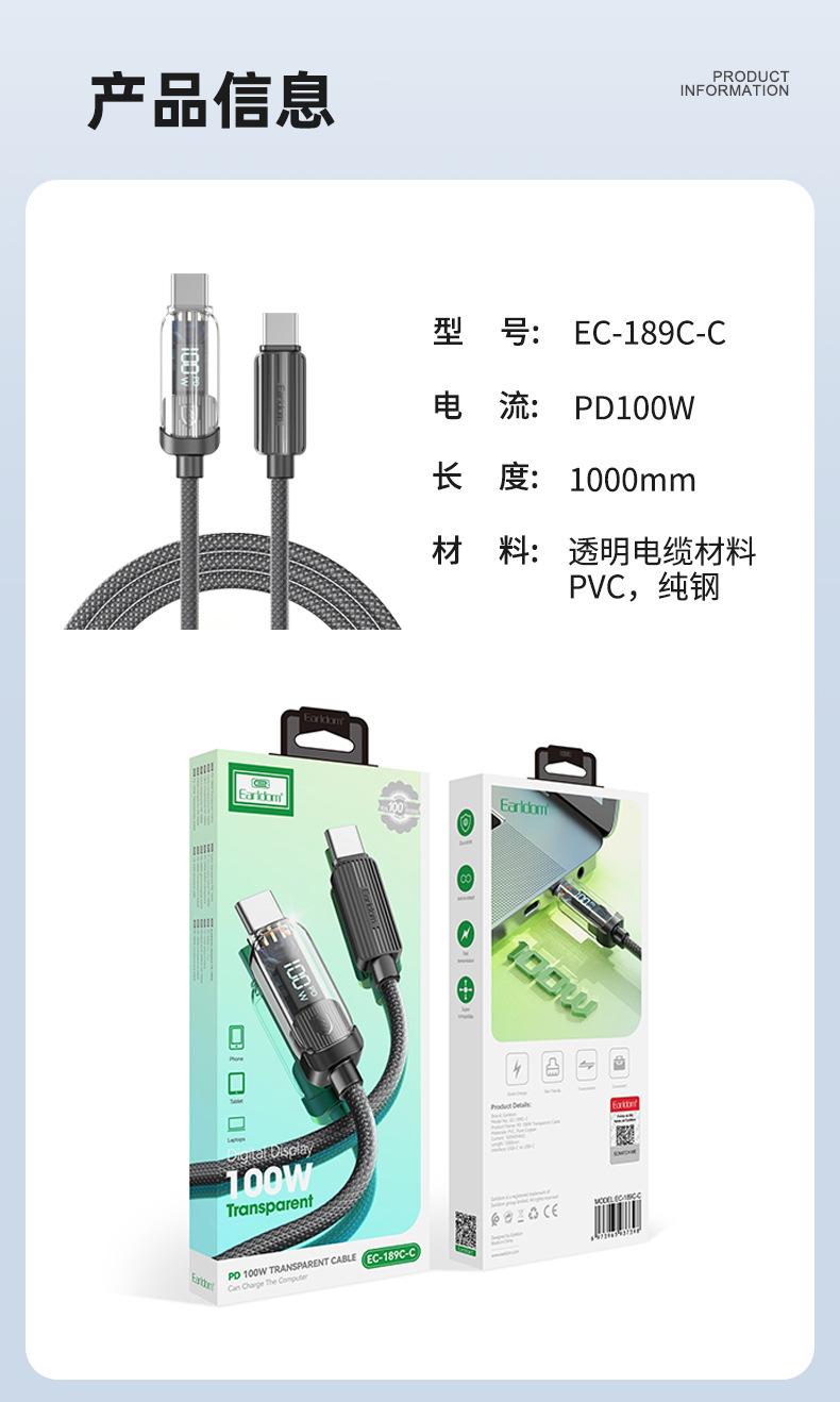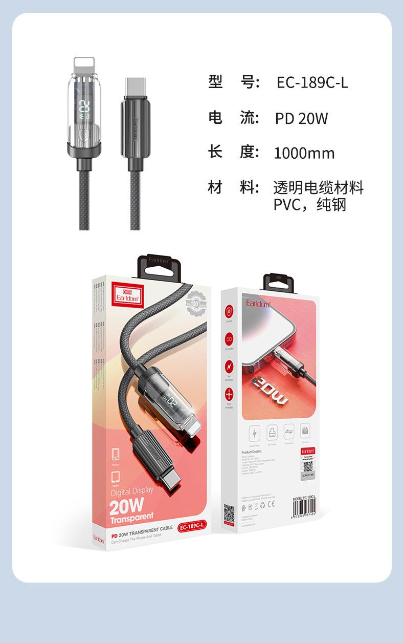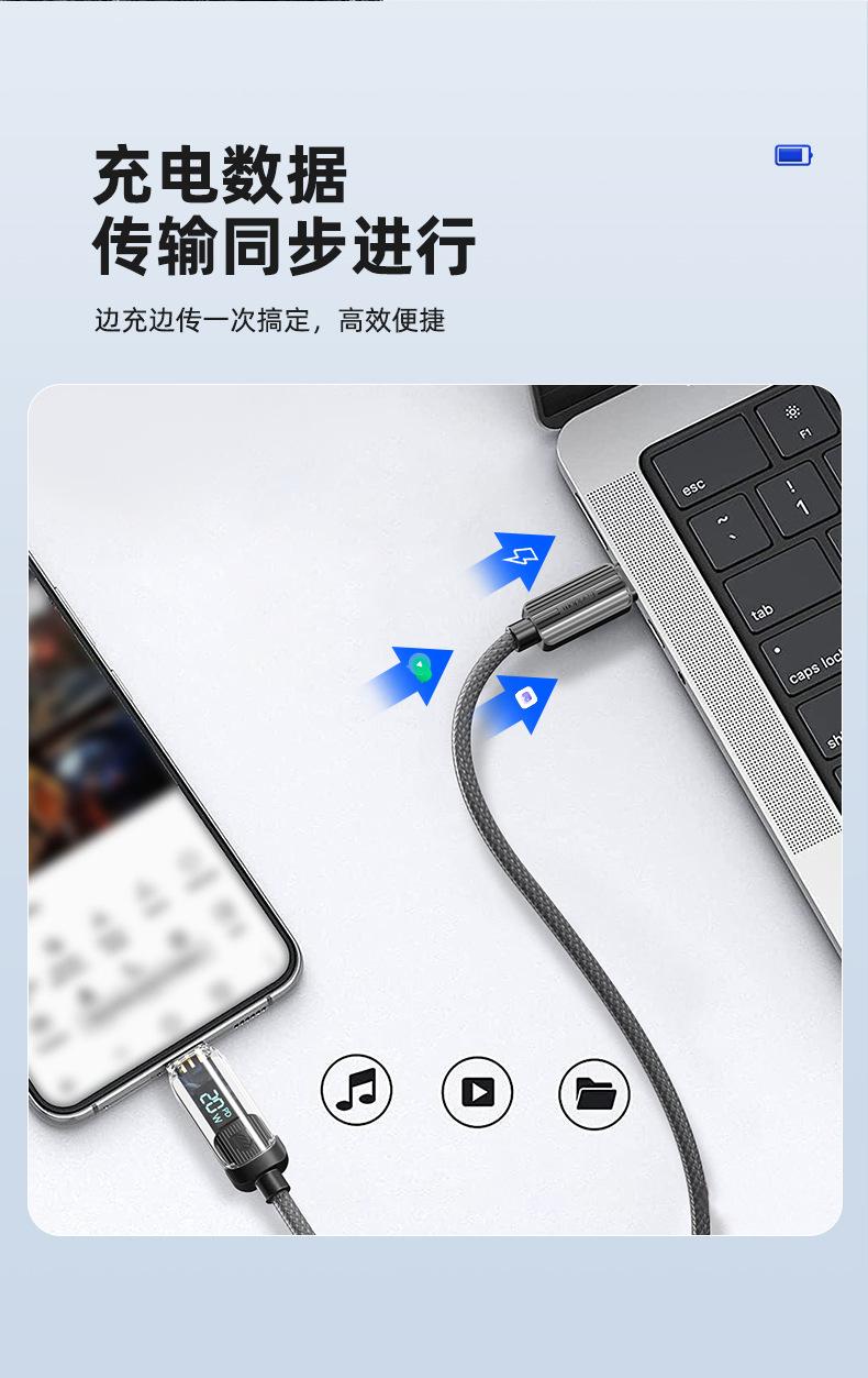 Cable de datos transparente PD20W, cable tipo C de carga súper rápida de 100 W, compatible con Apple 15 y Huawei 6A.