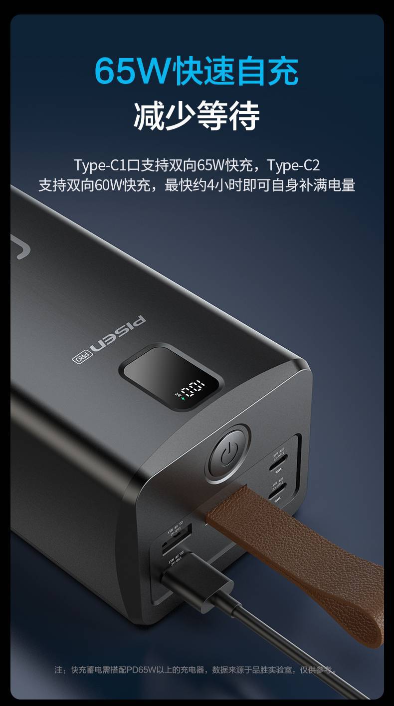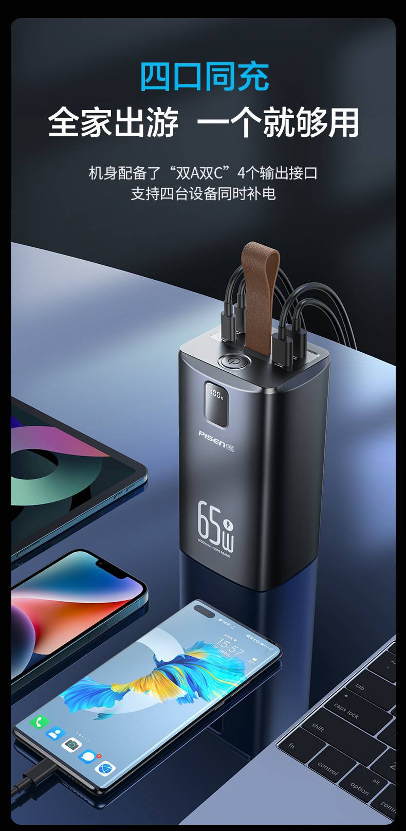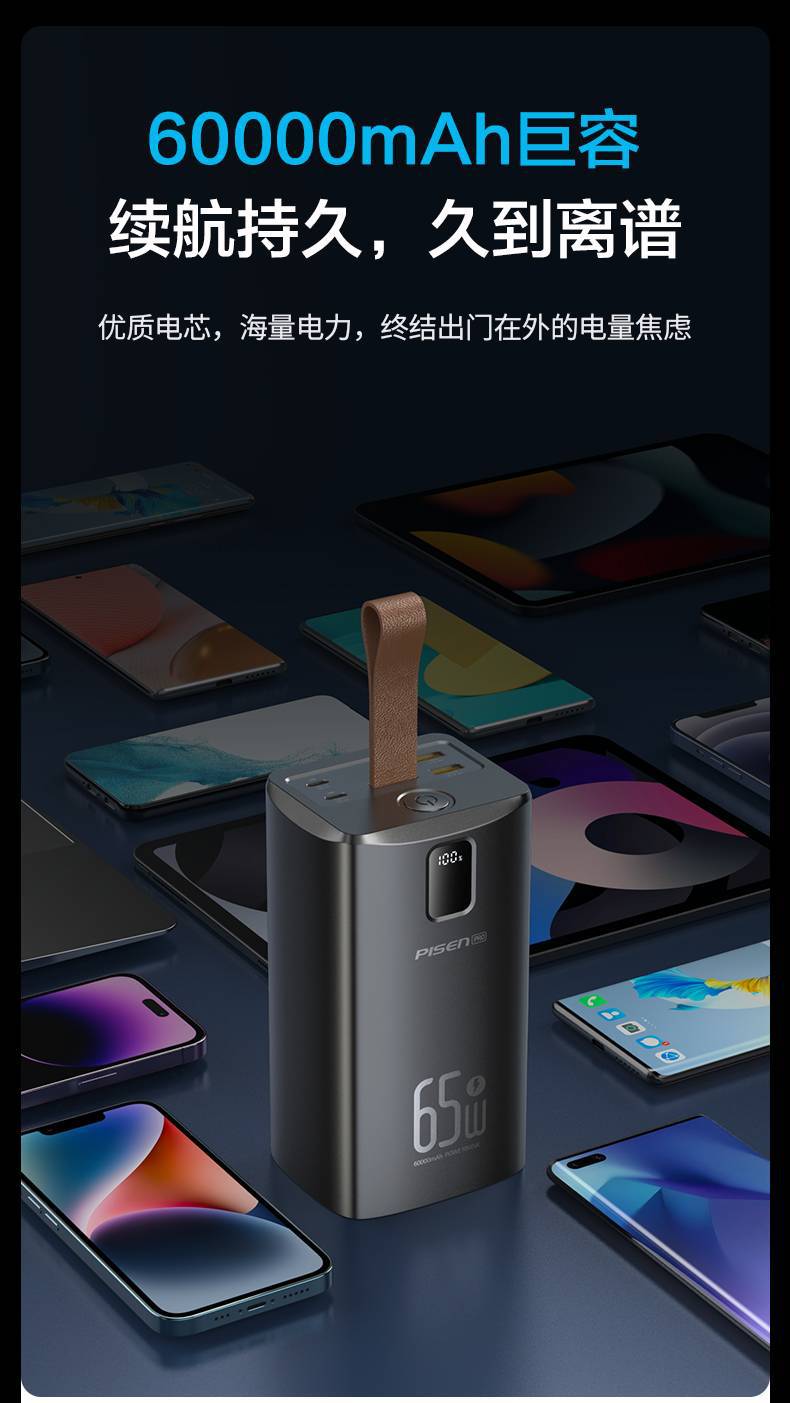 Pinsheng Pd65W Carga Superrápida Fuente de Alimentación Móvil 60000 Mah Gran Capacidad Adecuado para Teléfono Móvil Notebook Banco de Energía