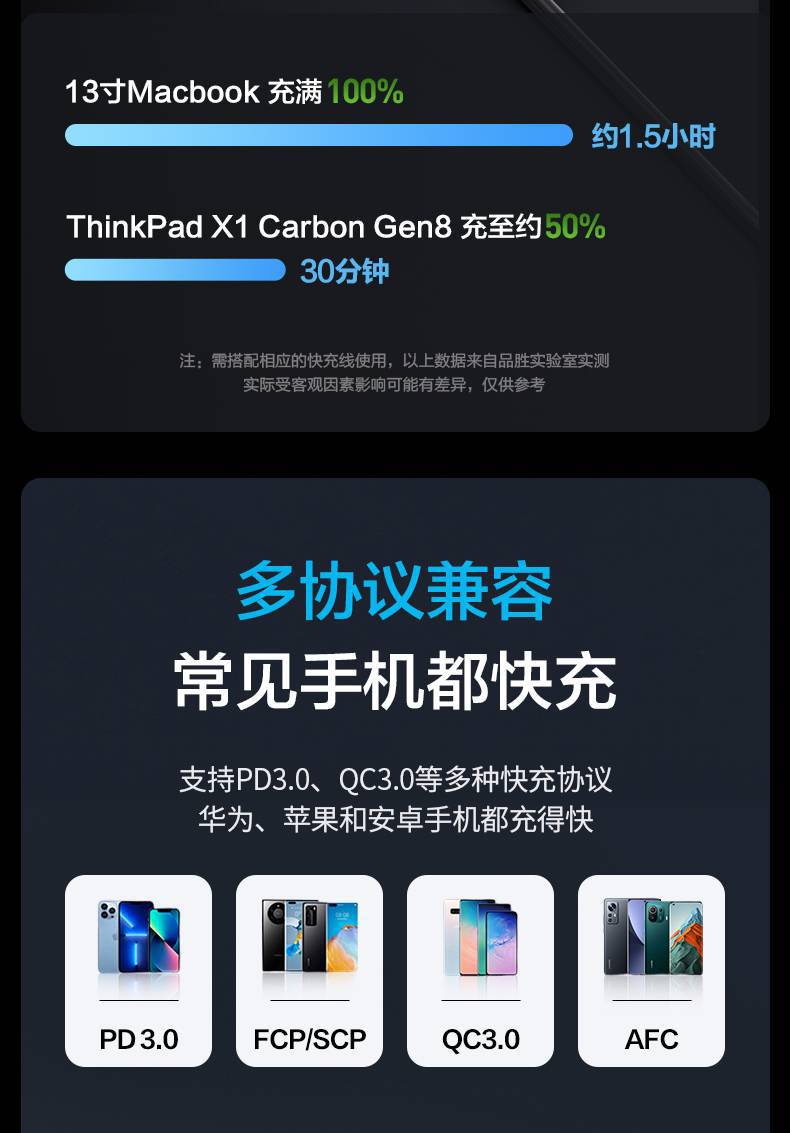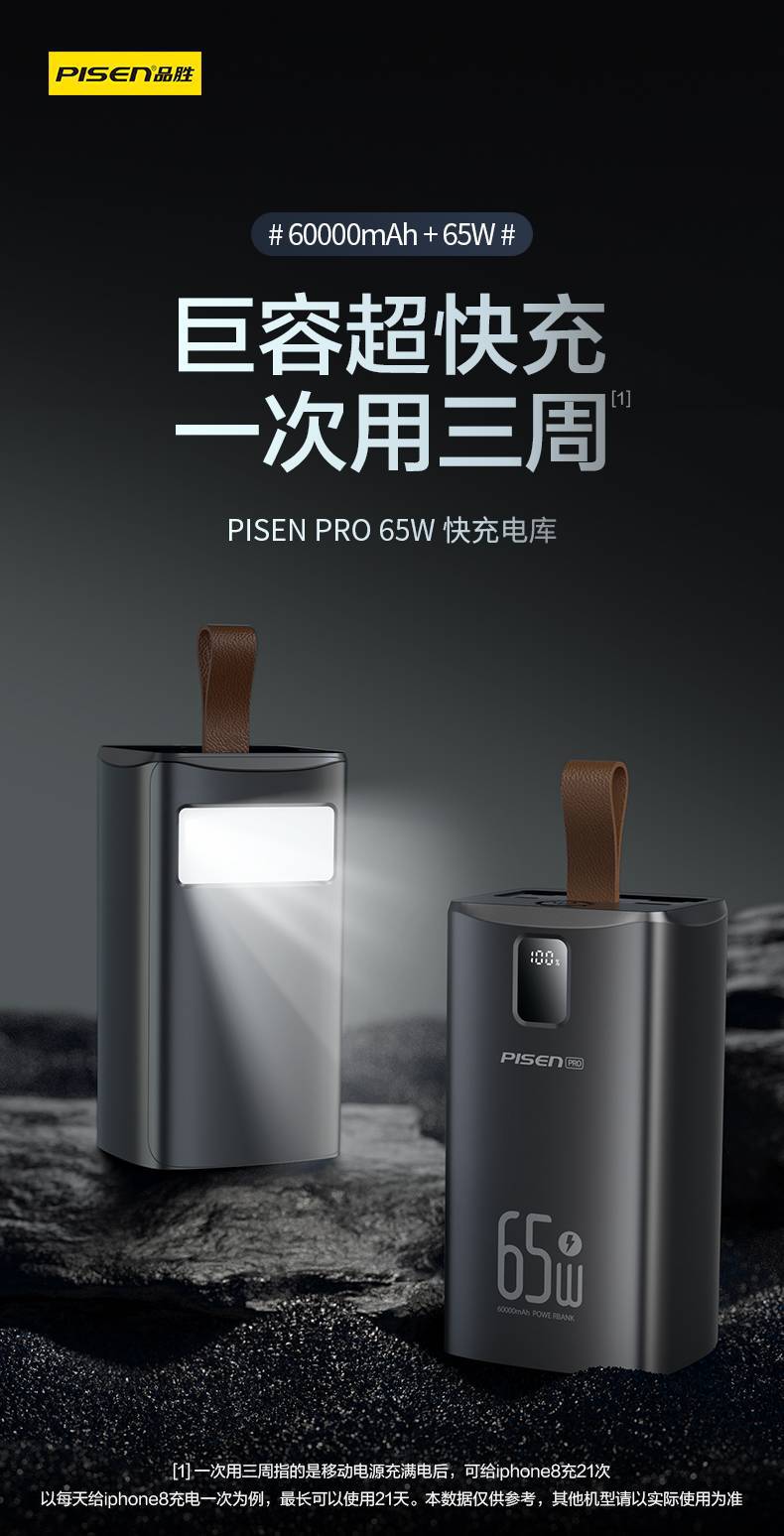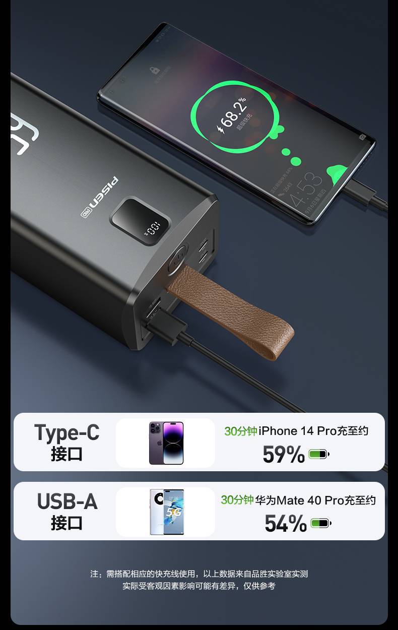 Pinsheng Pd65W Carga Superrápida Fuente de Alimentación Móvil 60000 Mah Gran Capacidad Adecuado para Teléfono Móvil Notebook Banco de Energía