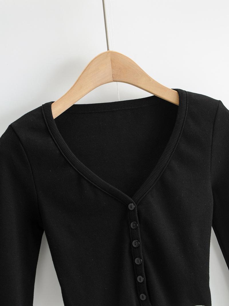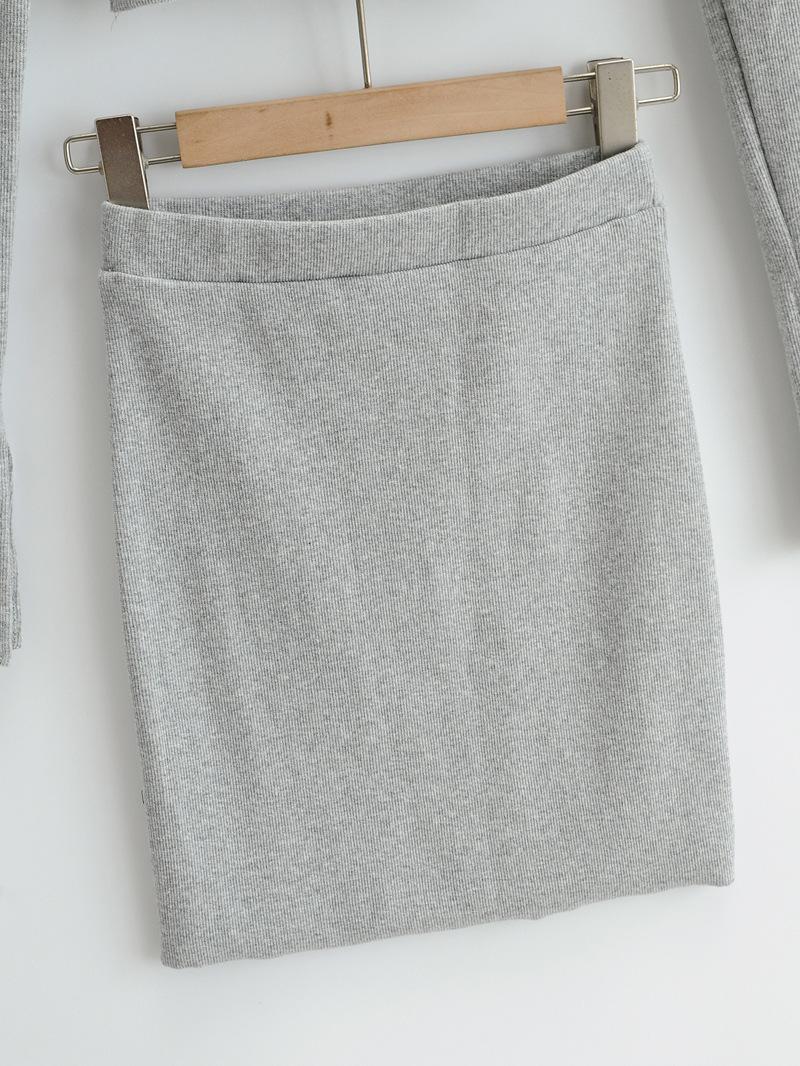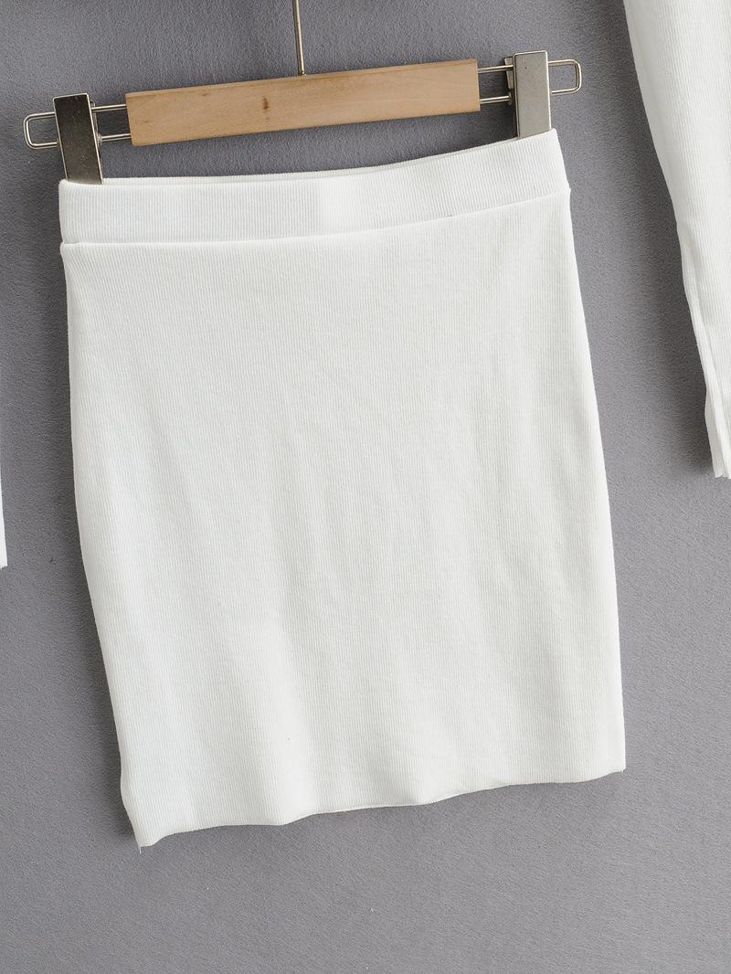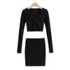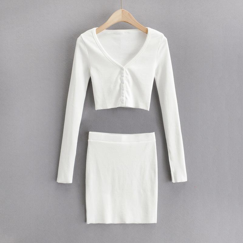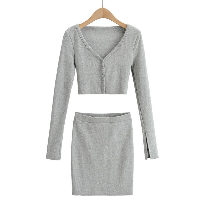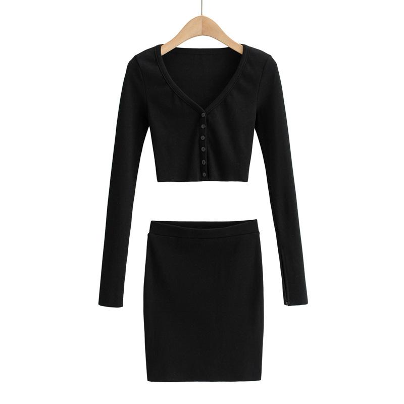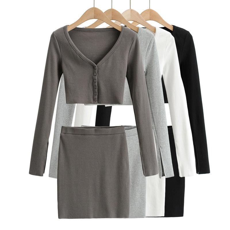 Conjunto de dos piezas formado por camiseta y falda de cintura alta, estilo europeo y americano, manga larga, puños divididos y cintura alta, informal, para mujer