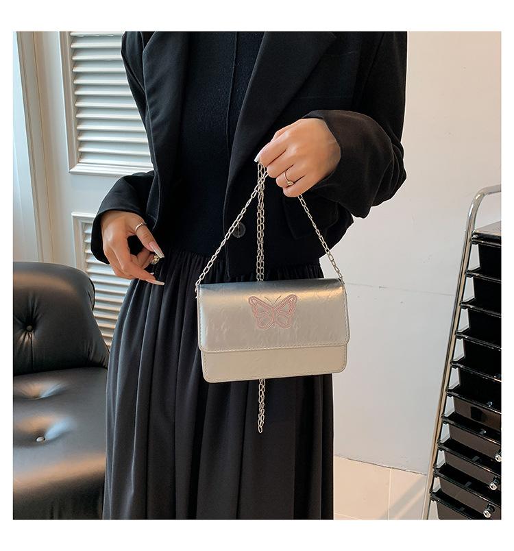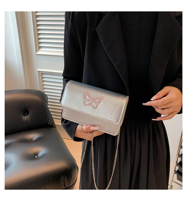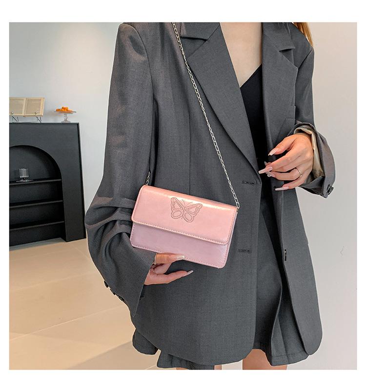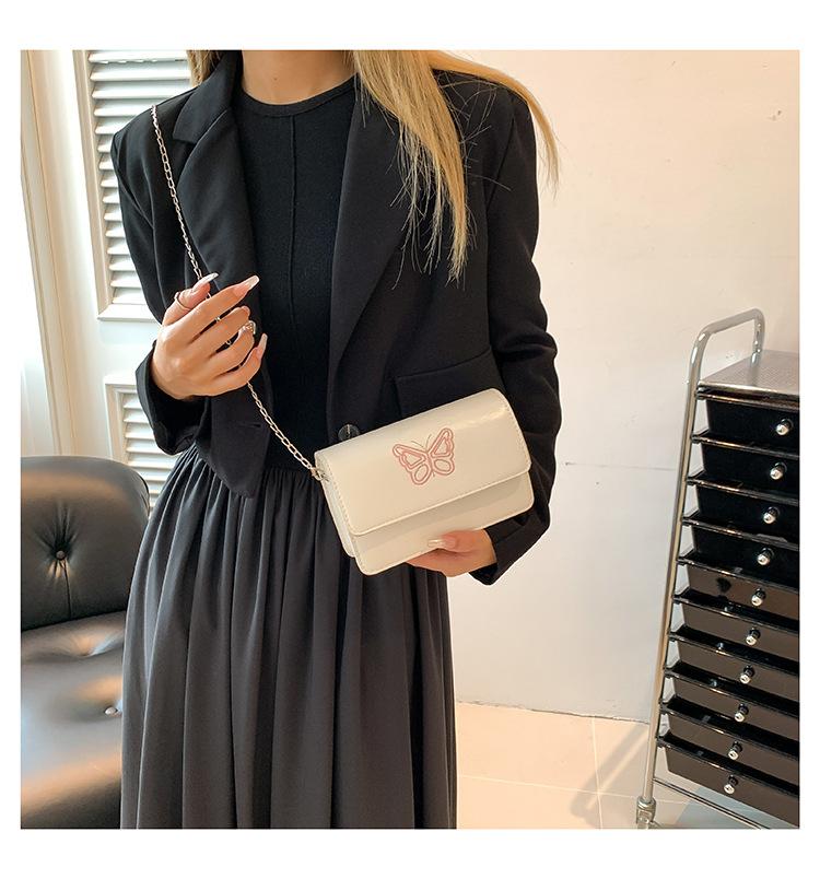Bolsos Temperamento de Moda para Mujer Bolso Cuadrado Pequeño 2025 Nuevo Bolso de Cadena de Mariposa para Mujer Estilo Coreano Color Sólido de Mano Cruzado