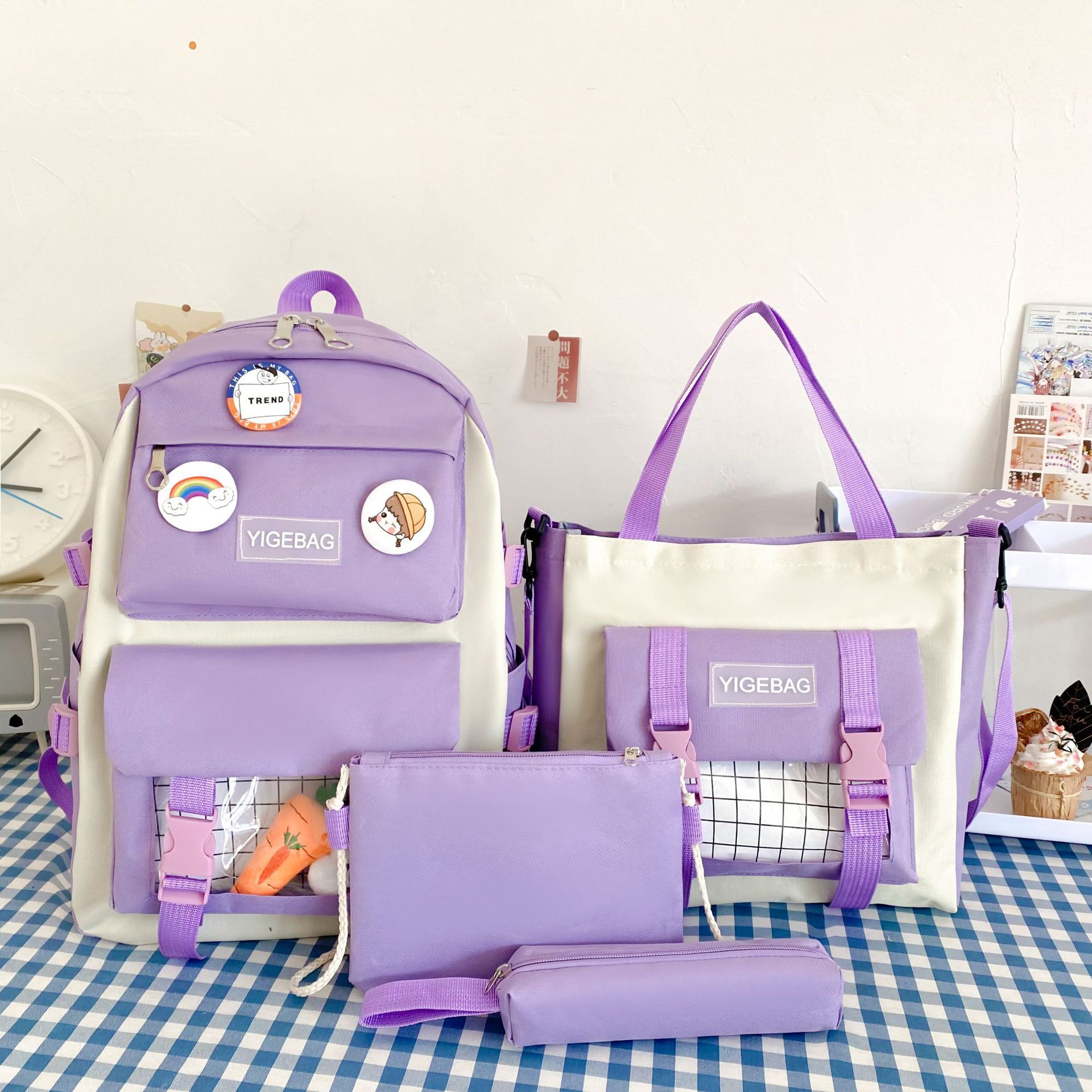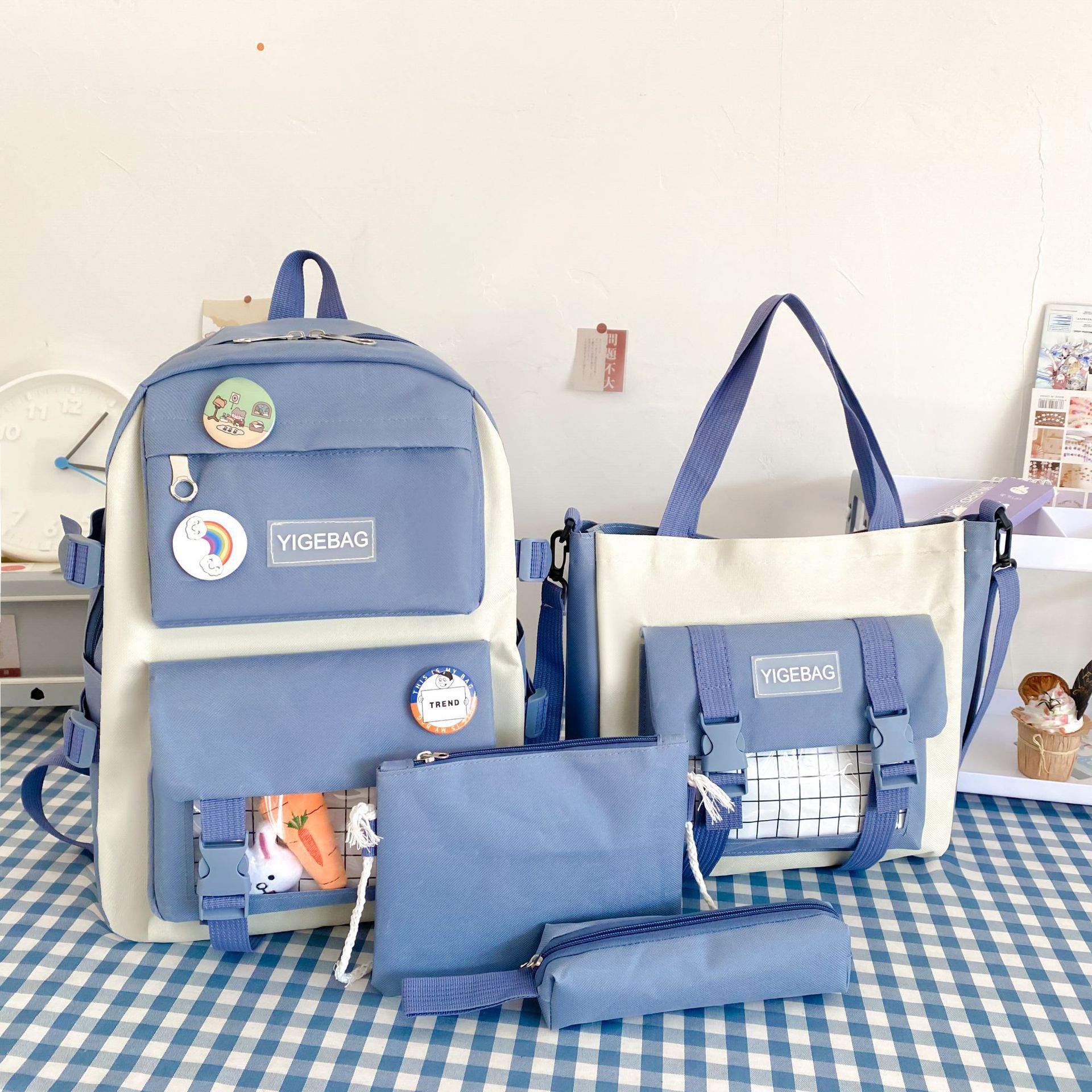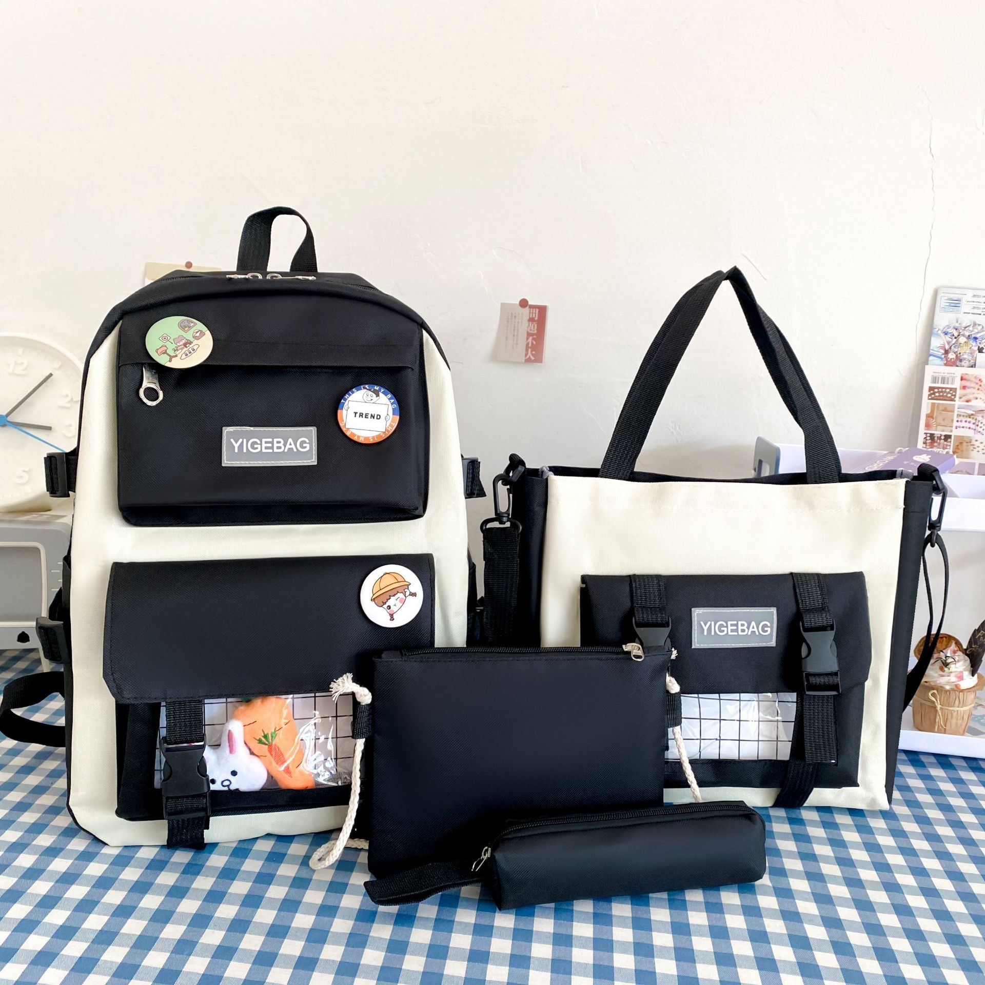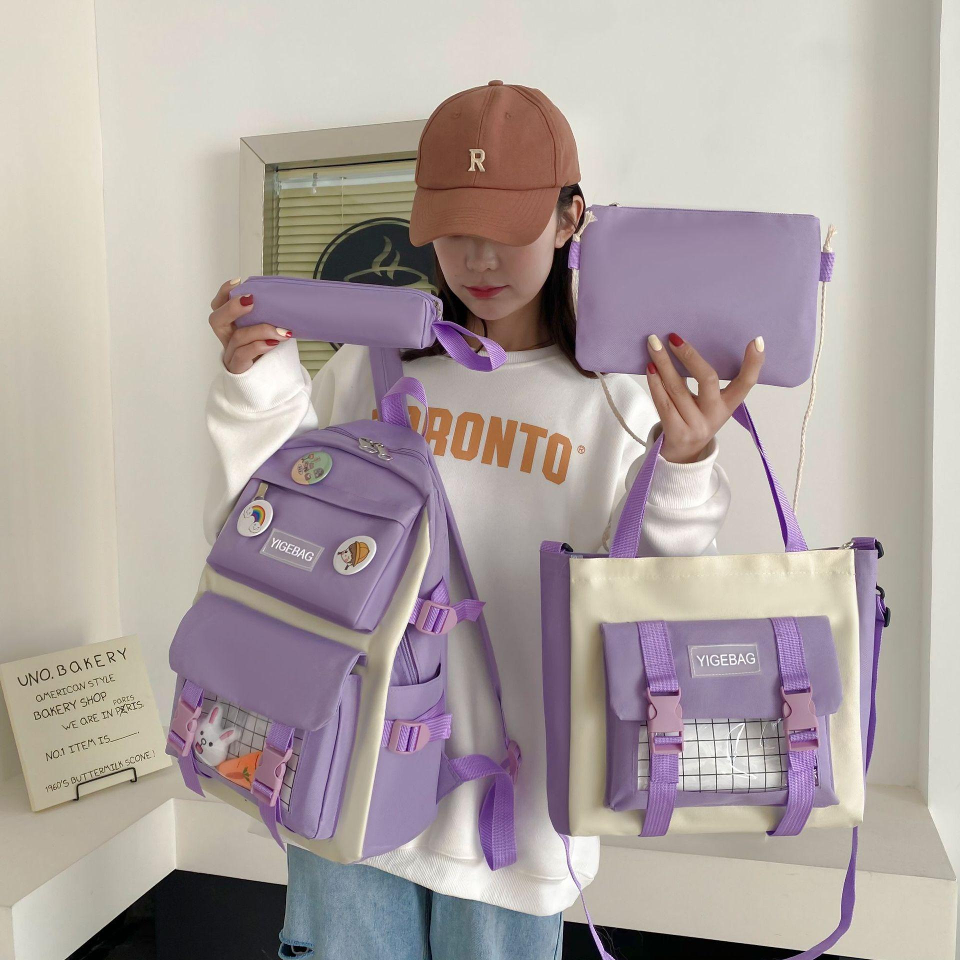 Mochila para estudiante de secundaria 2022 nueva versión coreana mochila para estudiante campus moda japonesa Harajuku mochila de cuatro piezas