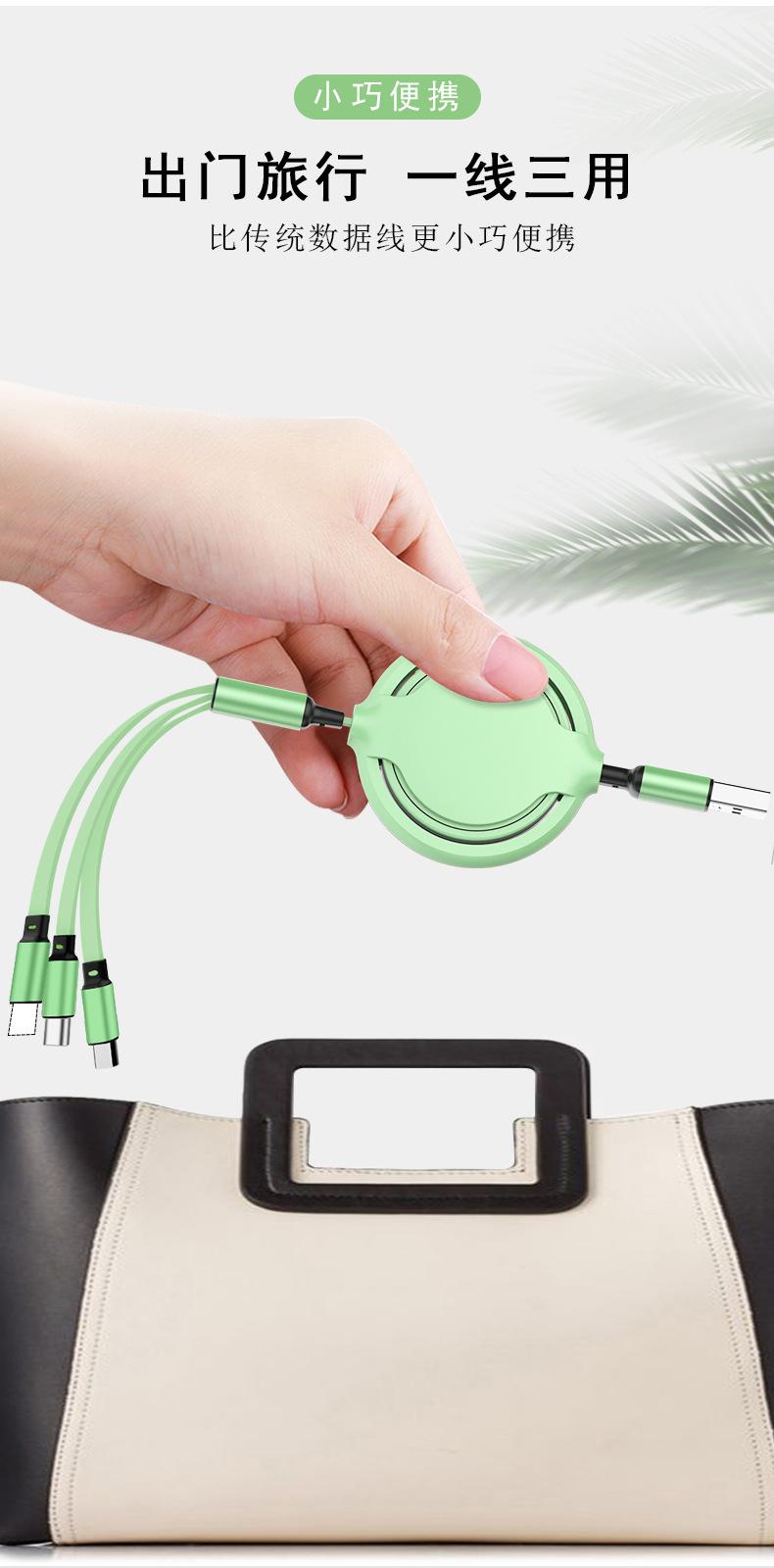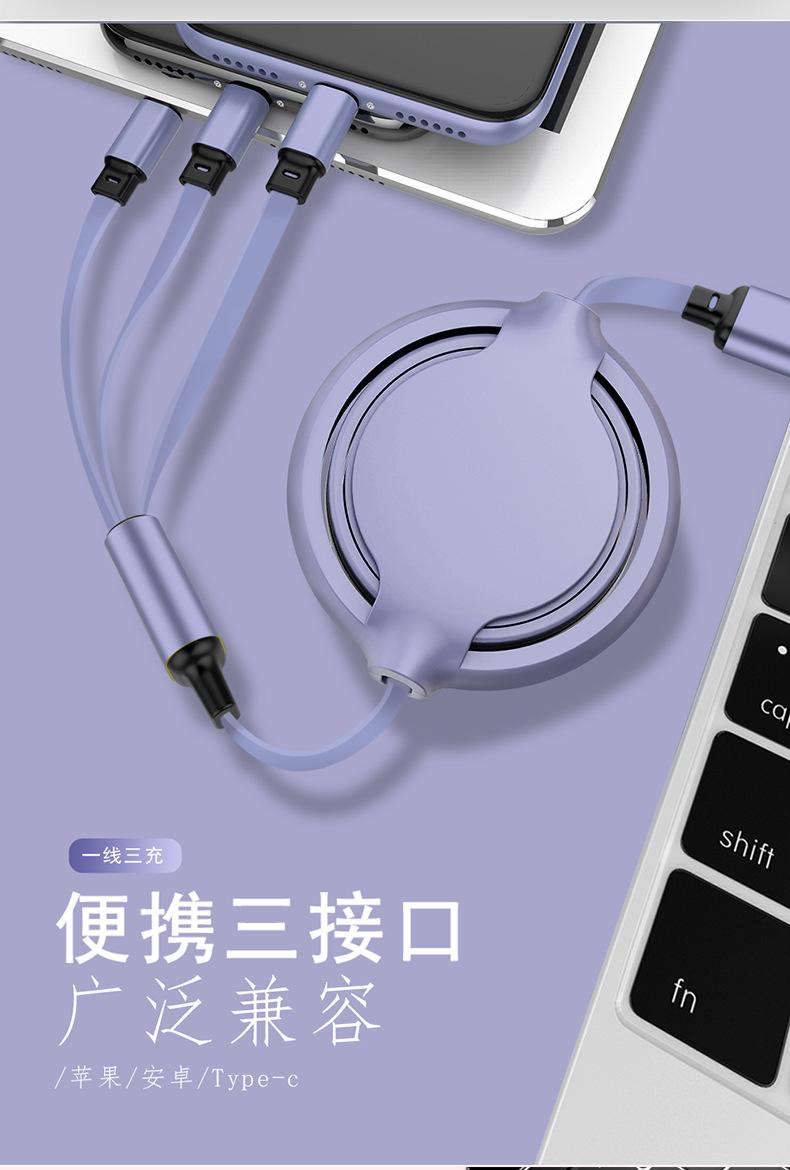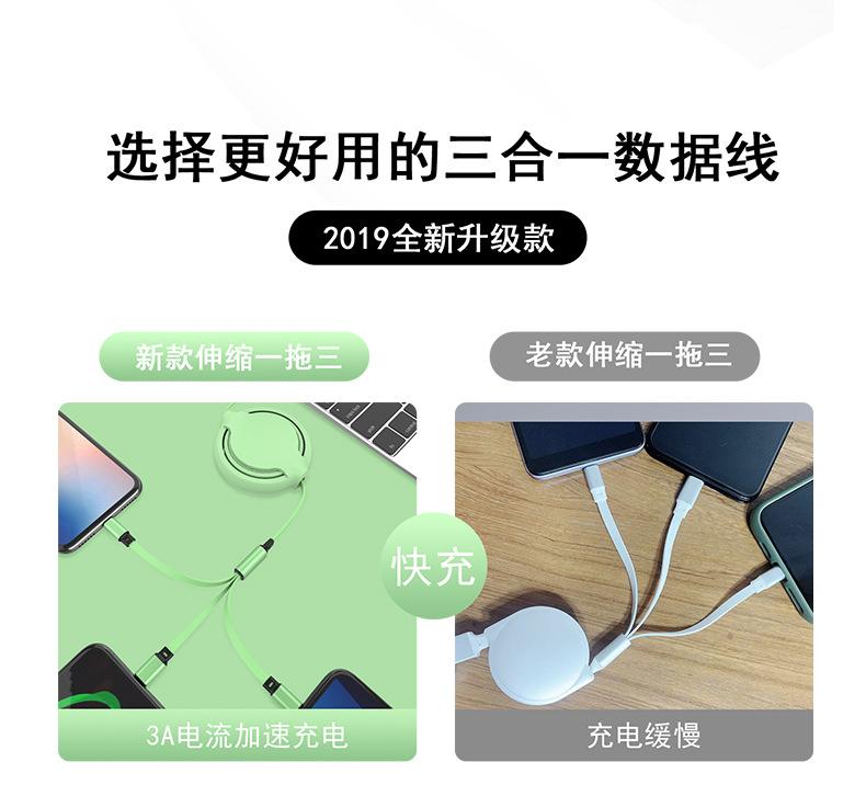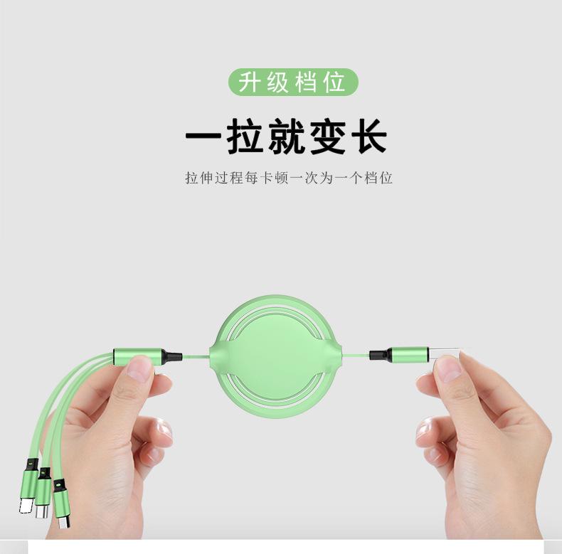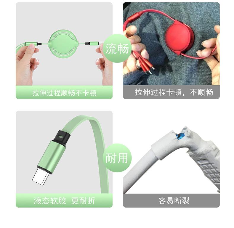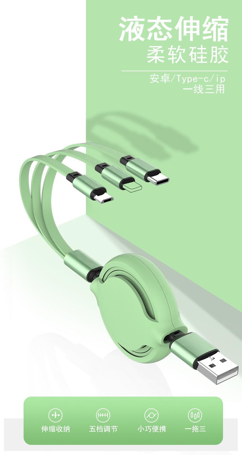 Cable de datos de silicona líquida de uno a tres, fabricante de regalos promocionales de tierra Cable retráctil de uno a tres para carga rápida de Apple, cable de datos tres en uno aplicable Cables de datos de alta calidad de carga súper rápida de 66 W de uno a tres 5A tres en uno