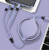 Uno a tres cables de datos retráctiles push regalo fabricante mayoreo fácil de recoger Cable de datos de uno a tres streamer LED luz suave tres en uno multicabezal genial Cable de datos trenzado de nailon de uno a tres, carga rápida múltiple de 2A, tres en uno