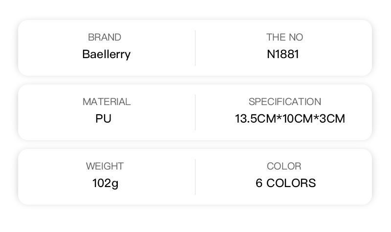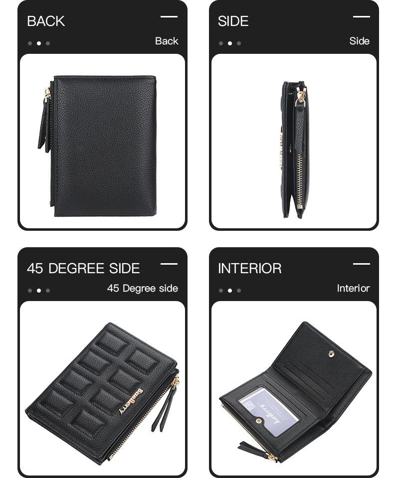 | | | | Nuevo bolso de pasaporte unisex Baellerry, elegante, sencillo, multifuncional, con cremallera, monedero compacto para teléfono móvil para mujer | | | | ¥ 15.50 | | Vendido:207Bolígrafo | | | | | | | | | | Nueva cartera corta para hombre Baellerry, cartera retro multitarjeta con borde cruzado, monedero de cuero aceitado con doble cremallera | | | | ¥ 24.50 | | Vendido:1564Bolígrafo | | | | | | | | | | Cartera corta de estilo nuevo para dama, versión coreana, con estampado de lichi, con ranura para múltiples tarjetas y cremallera, monedero de moda. | | | | ¥ 16.50 | | Vendido:3469Bolígrafo | | | | |