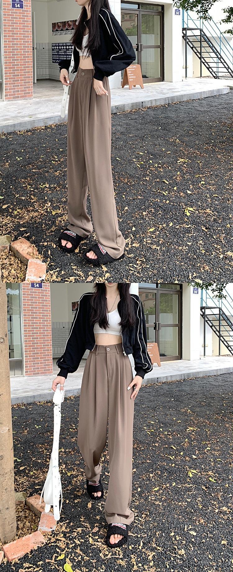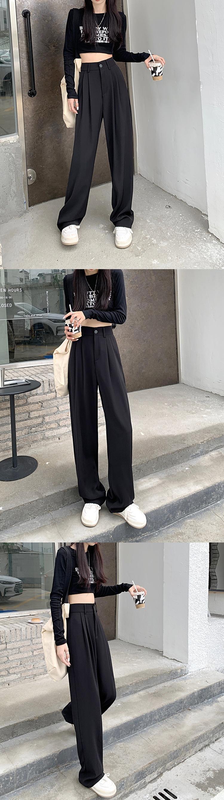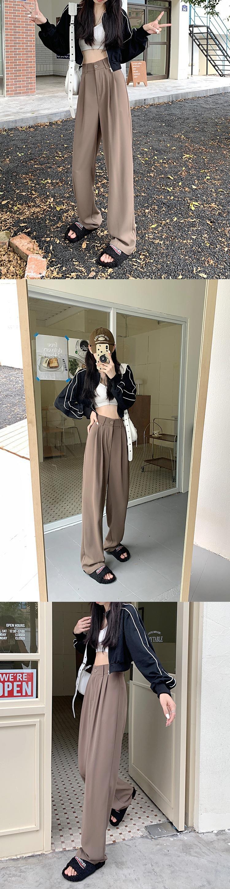 Pantalones de traje de otoño para mujer, pantalones casuales adelgazantes de cintura alta, pantalones holgados de pierna ancha, pantalones rectos que combinan con todo, pantalones largos hasta el suelo