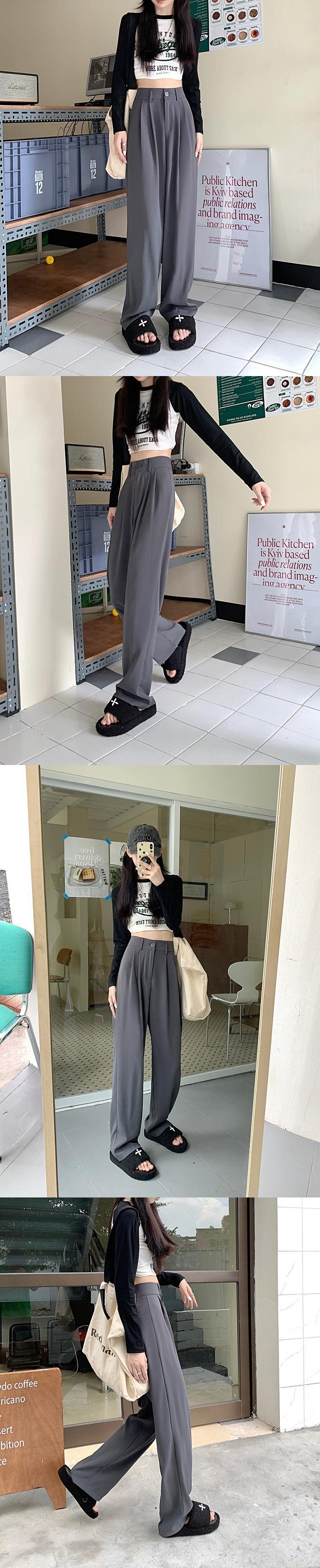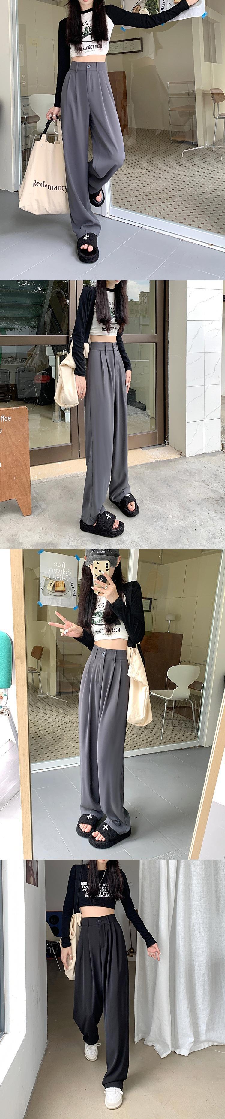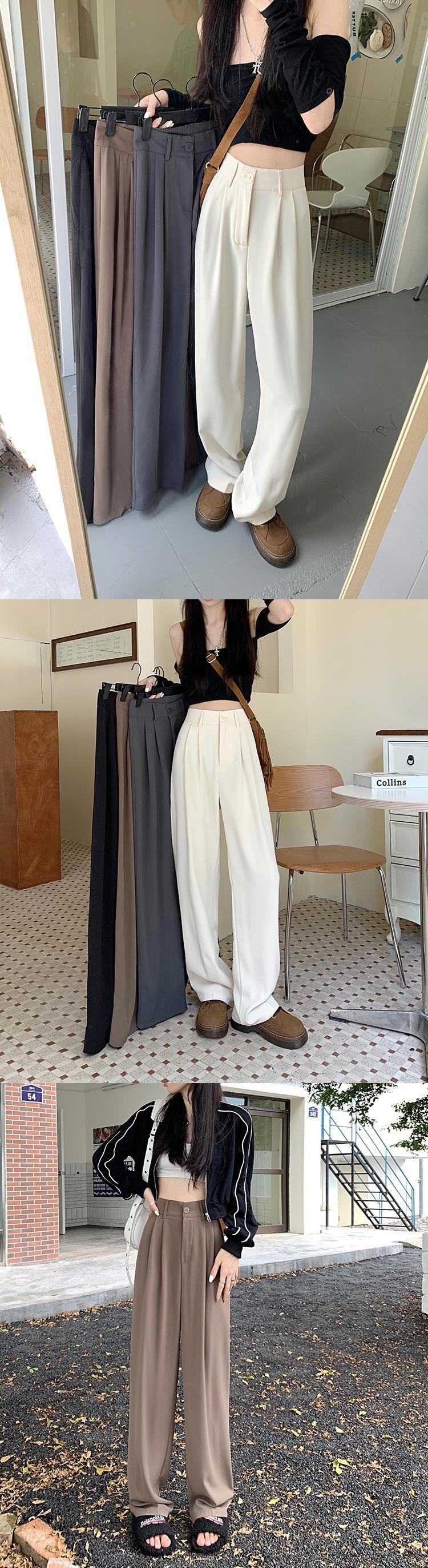 Pantalones de traje de otoño para mujer, pantalones casuales adelgazantes de cintura alta, pantalones holgados de pierna ancha, pantalones rectos que combinan con todo, pantalones largos hasta el suelo