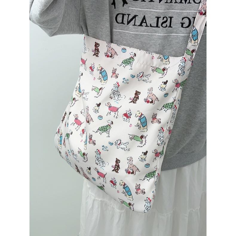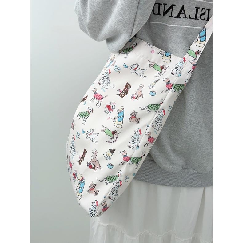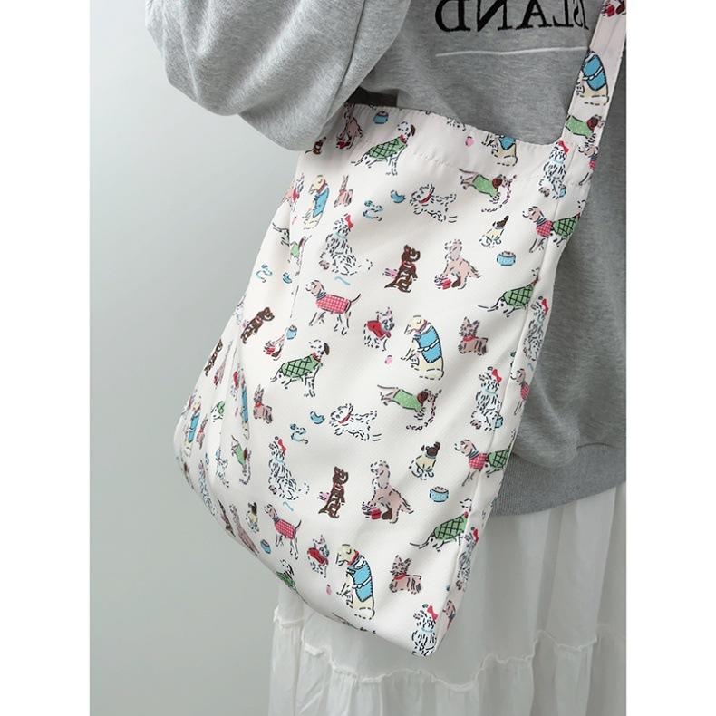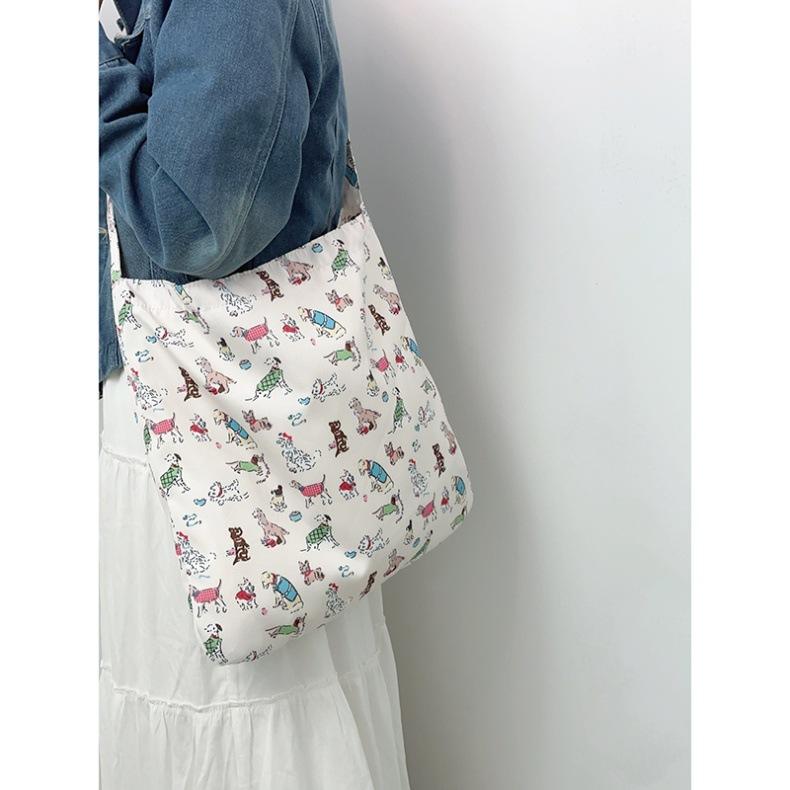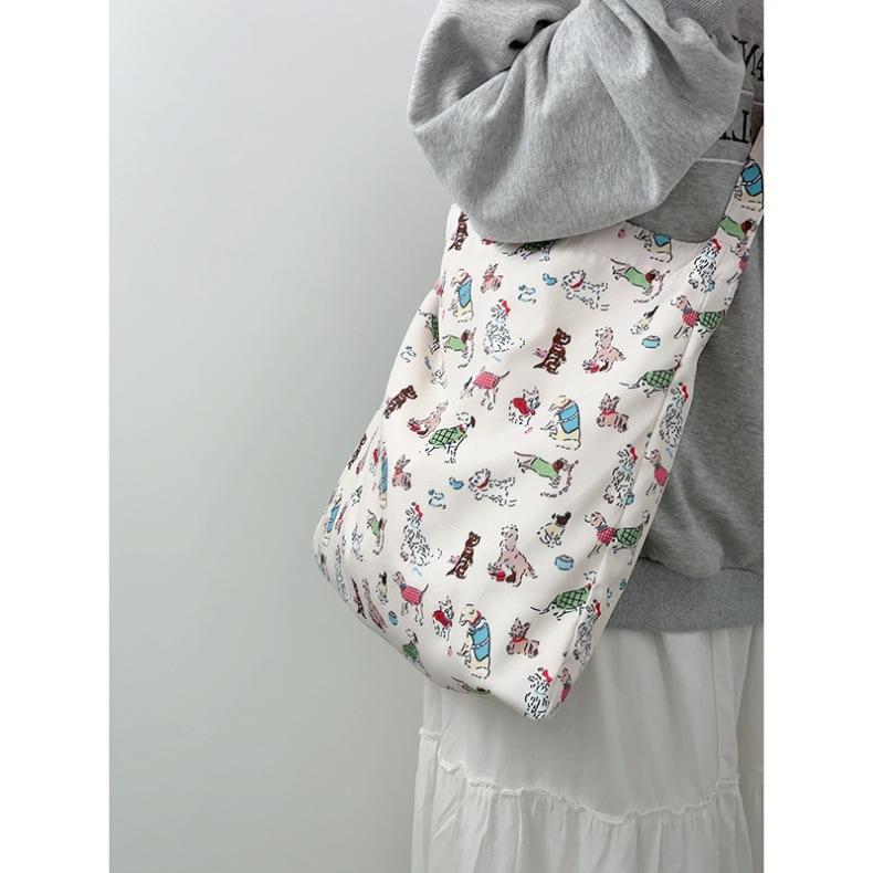 Bolso de lona de gran capacidad para mujer, bandolera de tela con estampado de perro de dibujos animados, novedad de 2024