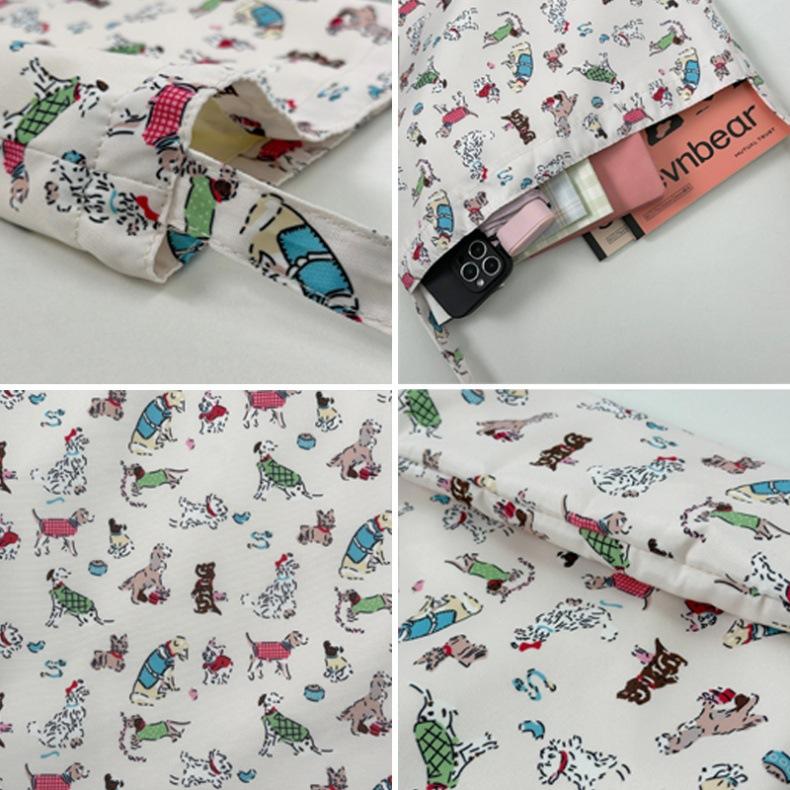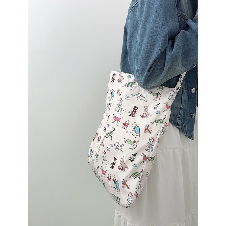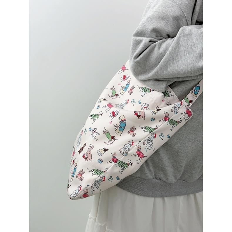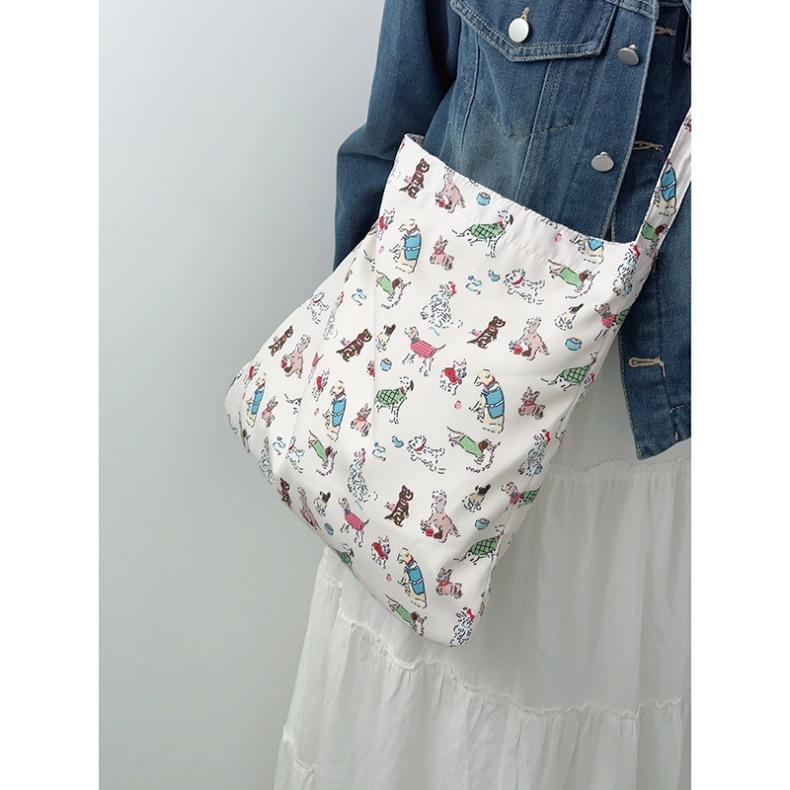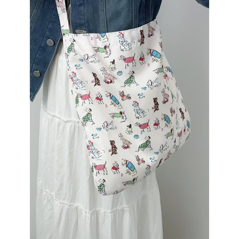 Bolso de lona de gran capacidad para mujer, bandolera de tela con estampado de perro de dibujos animados, novedad de 2024