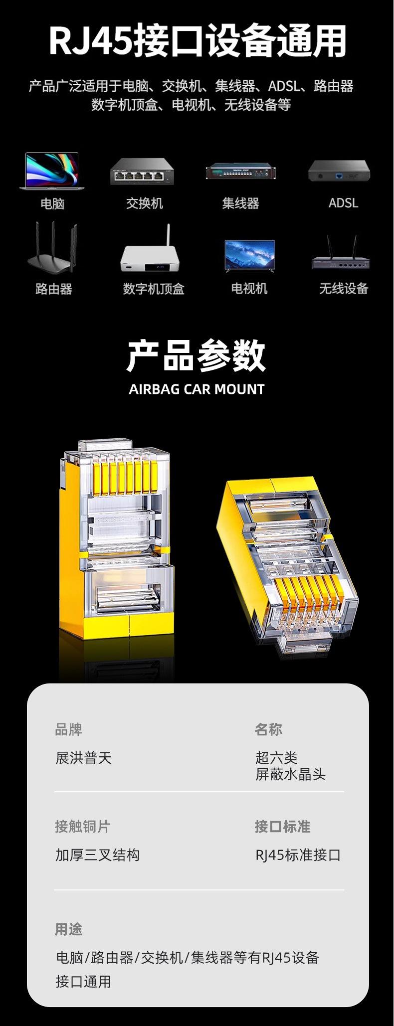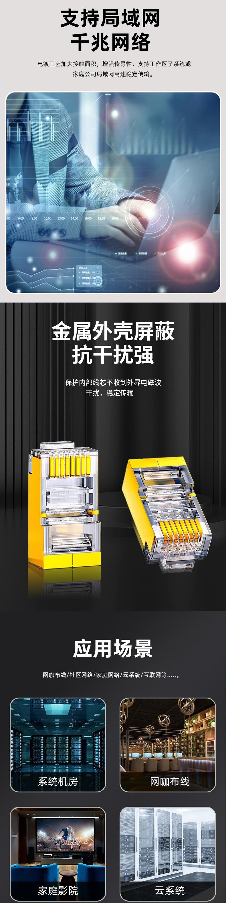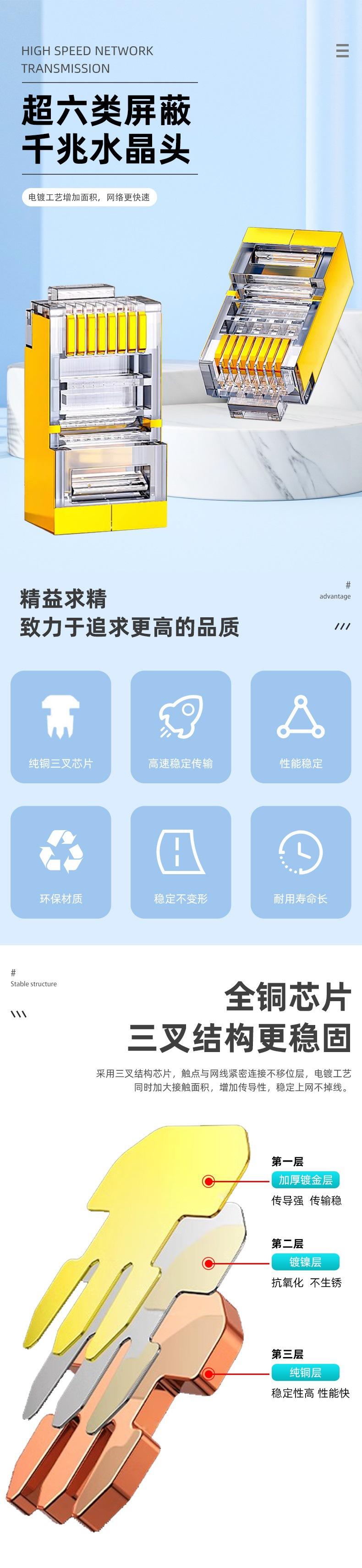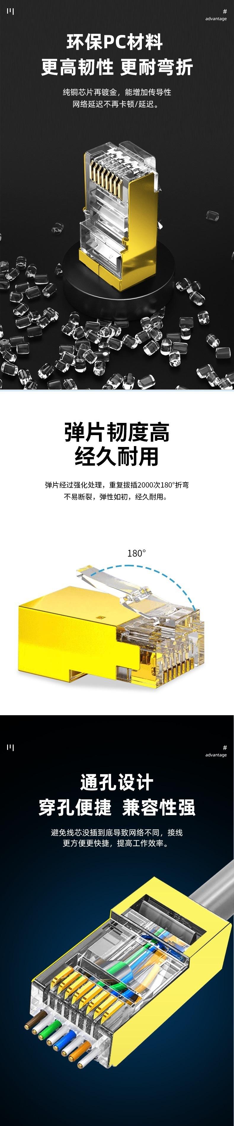 Suministro de fabricantes CAT6 perforado dorado rj45 cobre puro chapado en oro super seis fila única apantallado pasante computadora Cabezal de Cristal