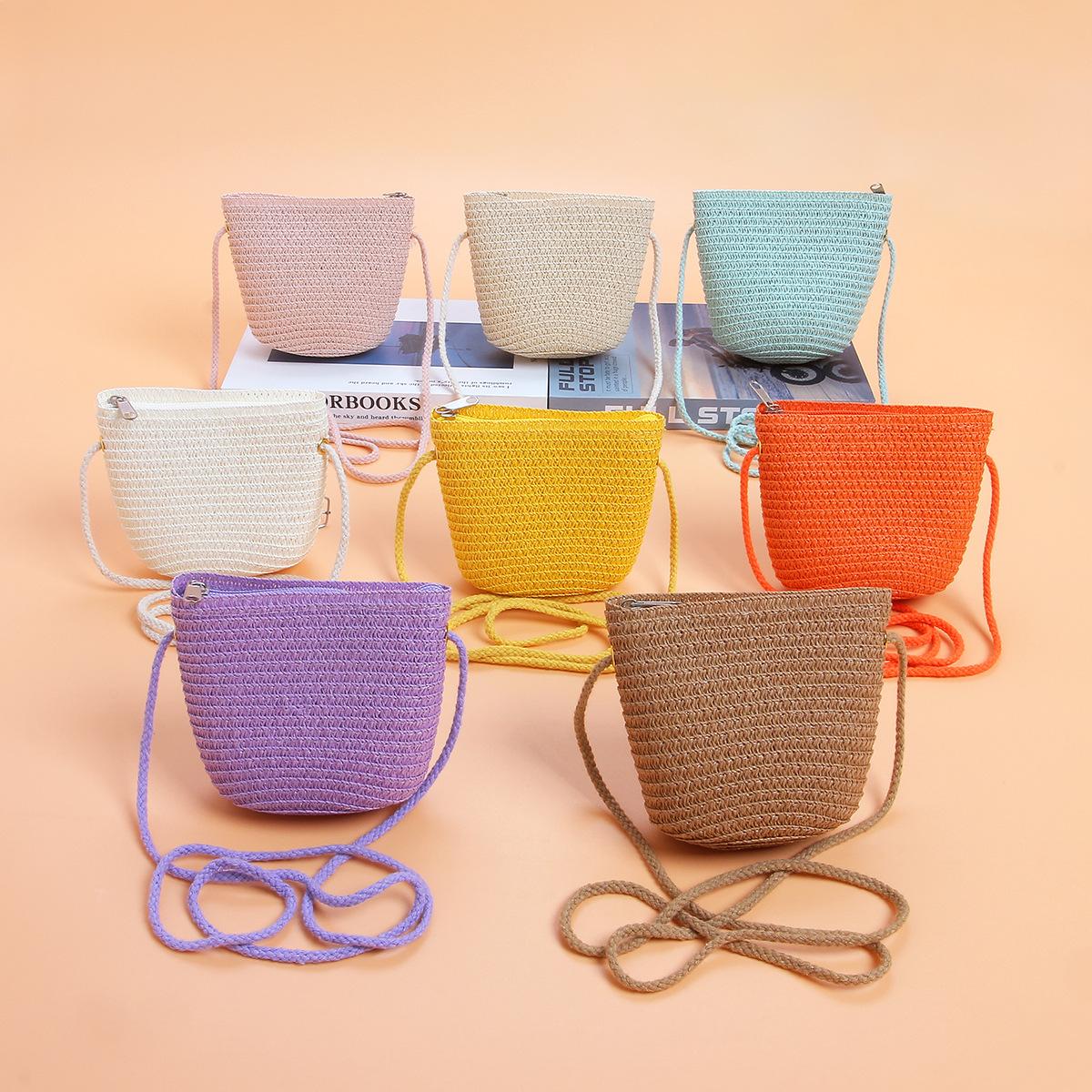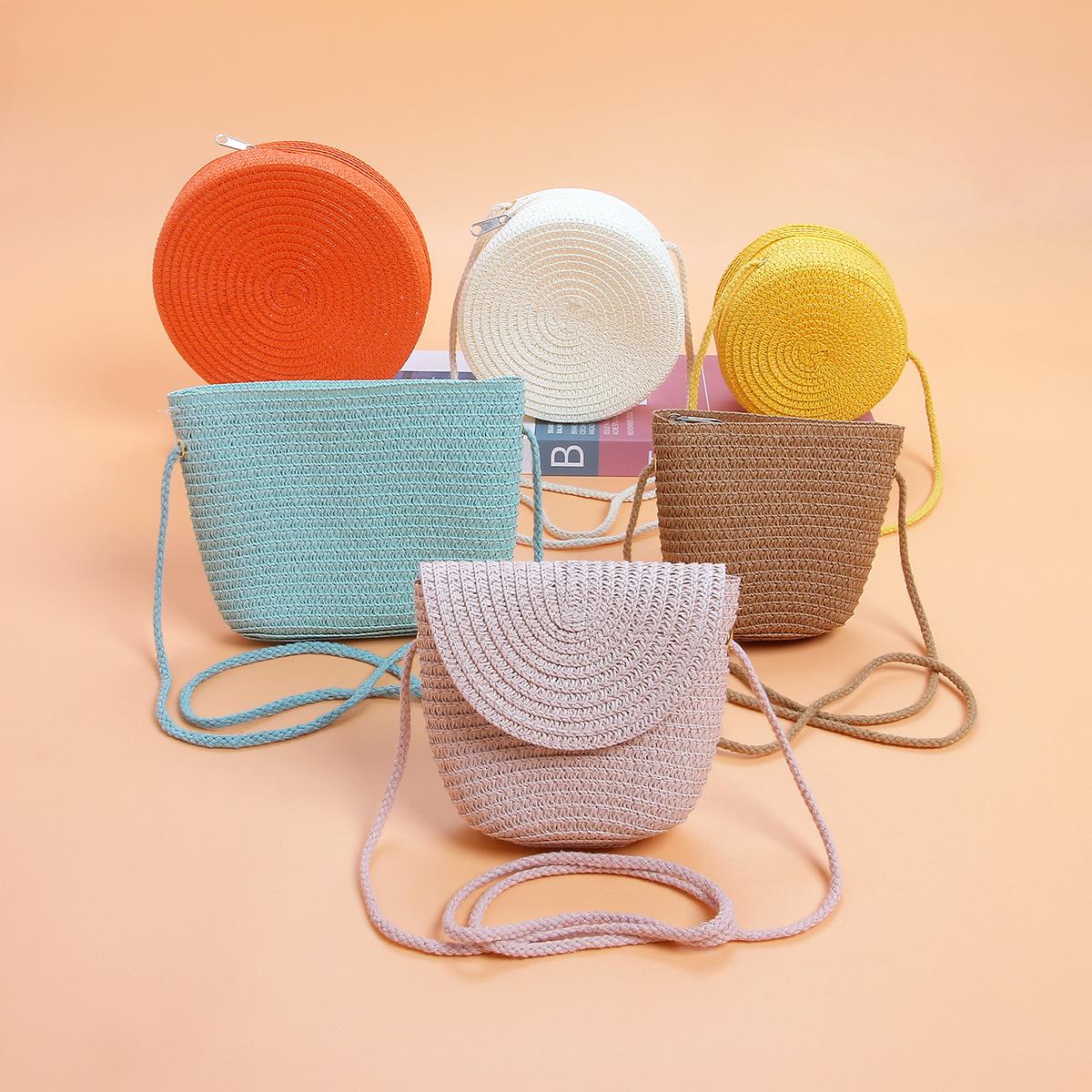 Bolsa Mensajera para Niñas Bolso Tejido de Paja para Viaje de Bebé Infantil Bolso Tejido Pequeño de Nuevo Estilo para Niña Lindo Combinable Verano