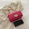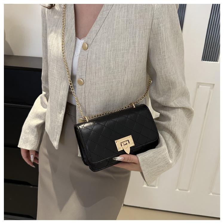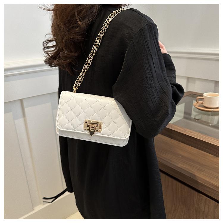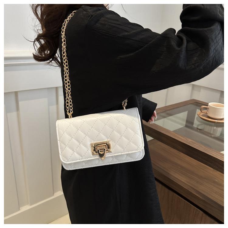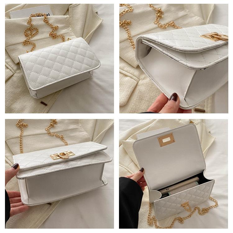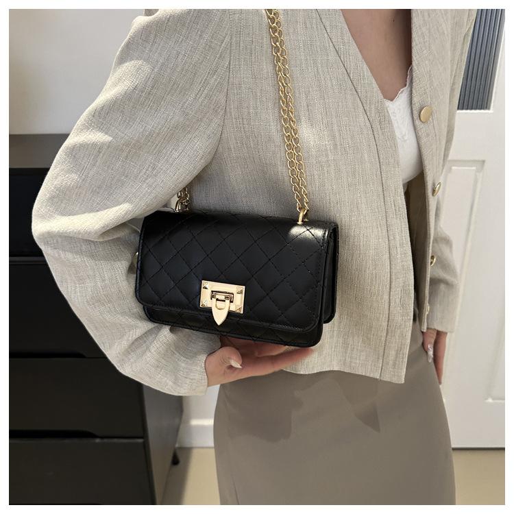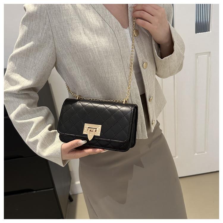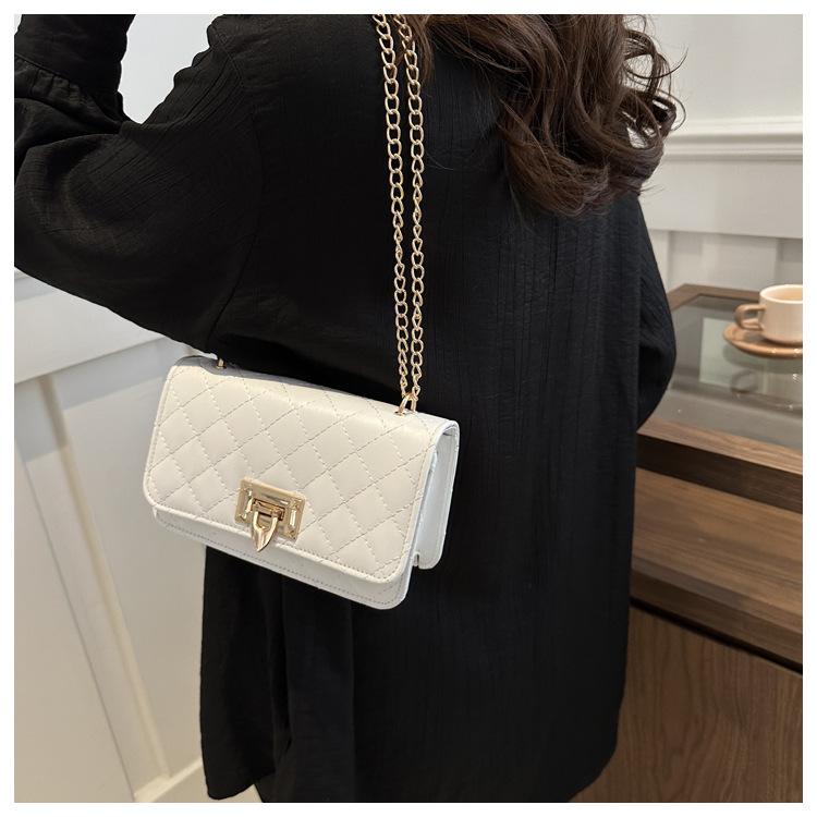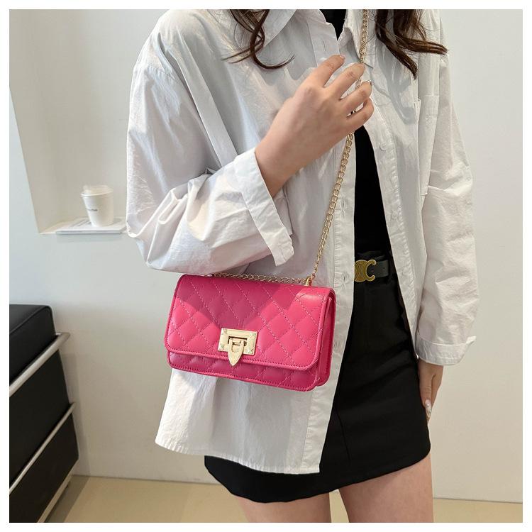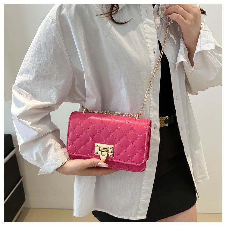 Bolso pequeño cuadrado con bordado rómbico de moda, nuevo bolso cruzado informal de verano de 2024, sencillo y moderno con cadena de color liso.