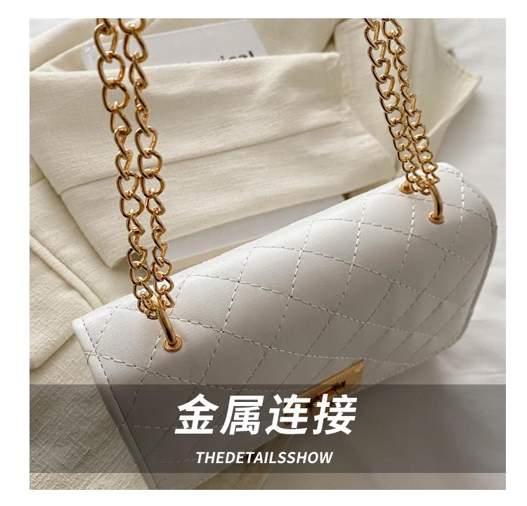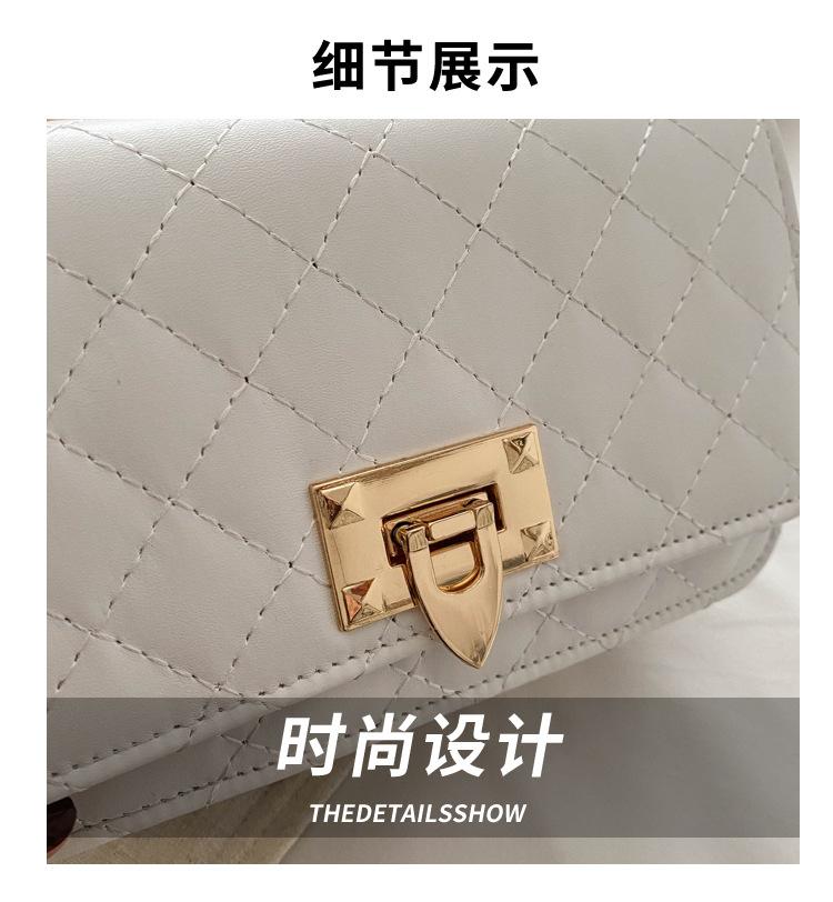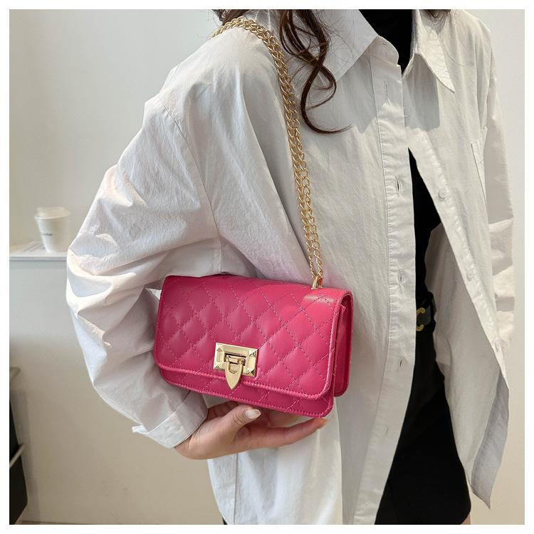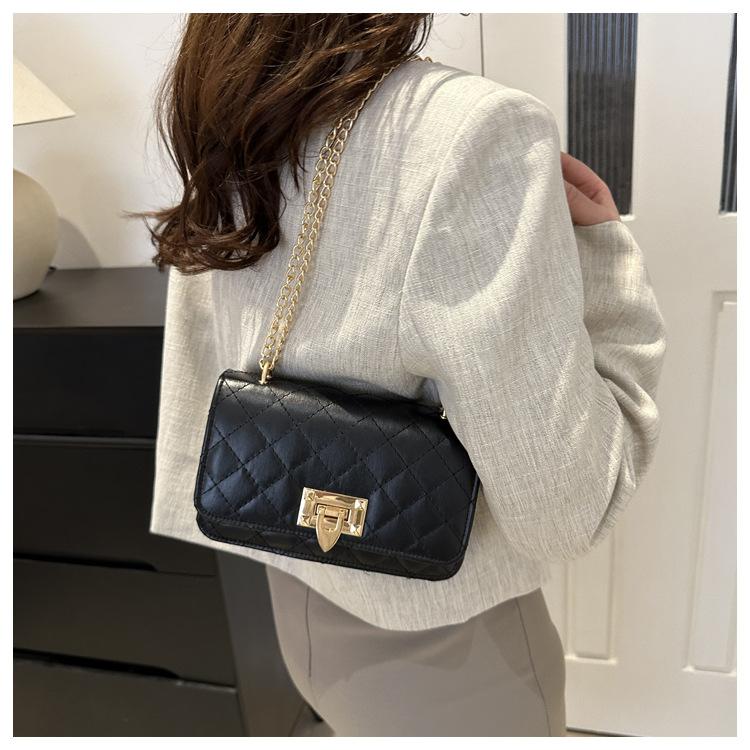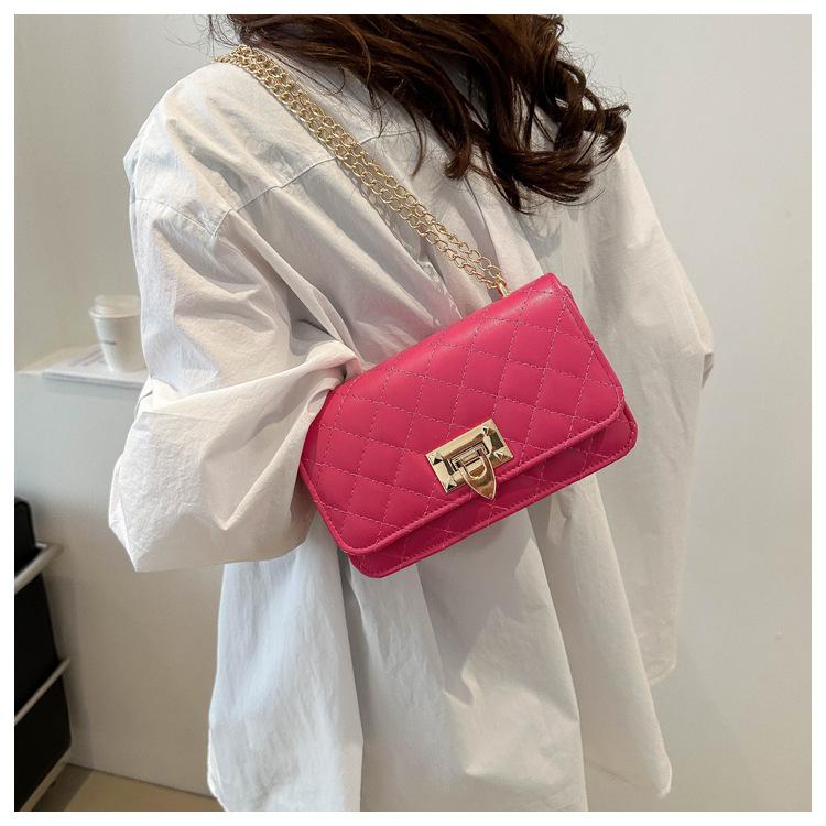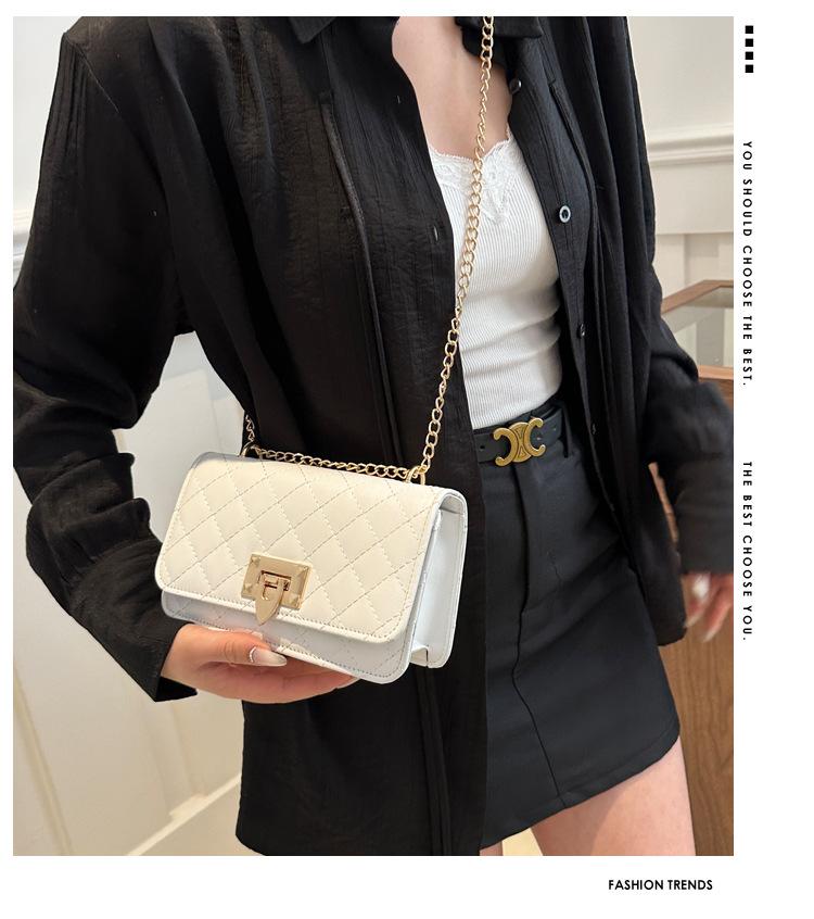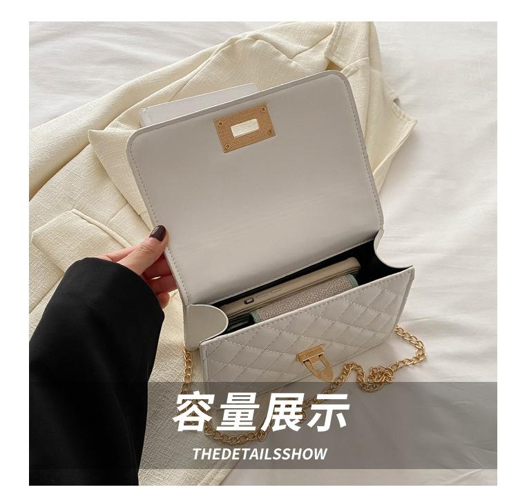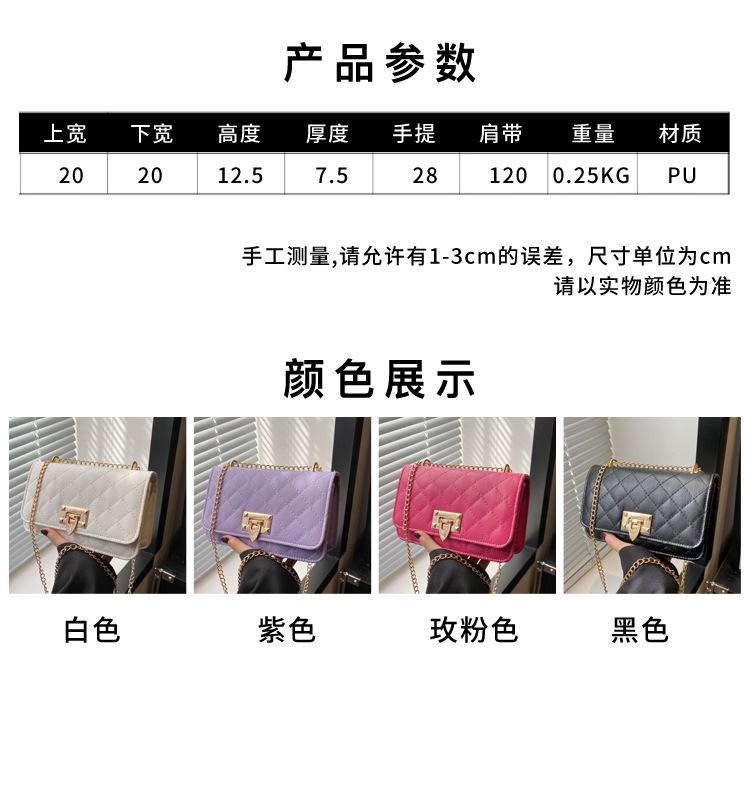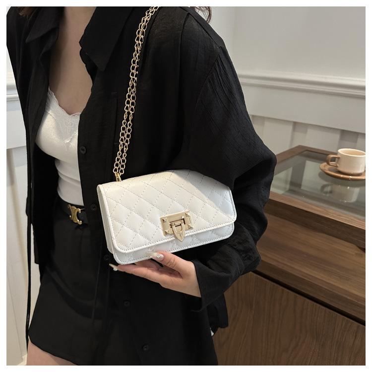 Bolso pequeño cuadrado con bordado rómbico de moda, nuevo bolso cruzado informal de verano de 2024, sencillo y moderno con cadena de color liso.