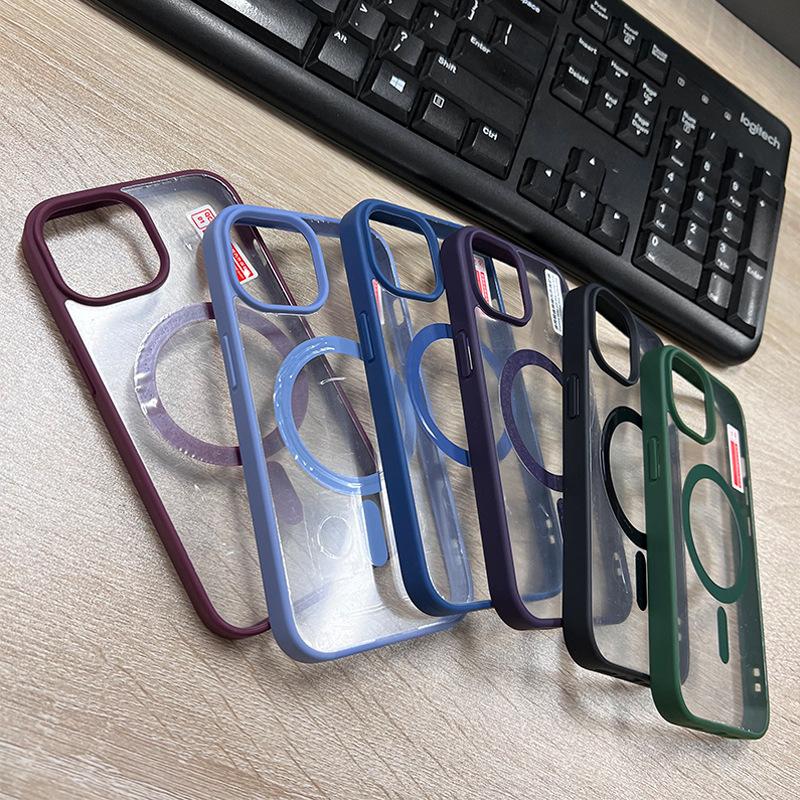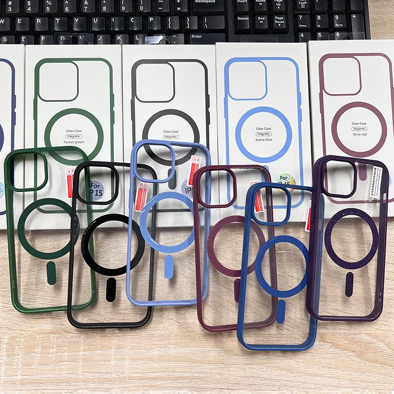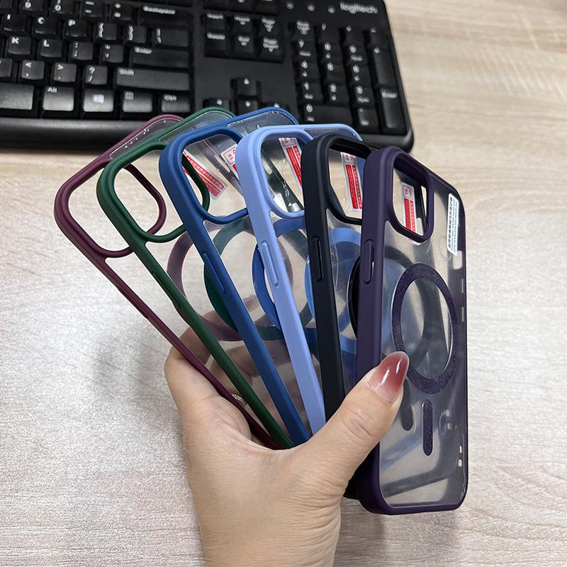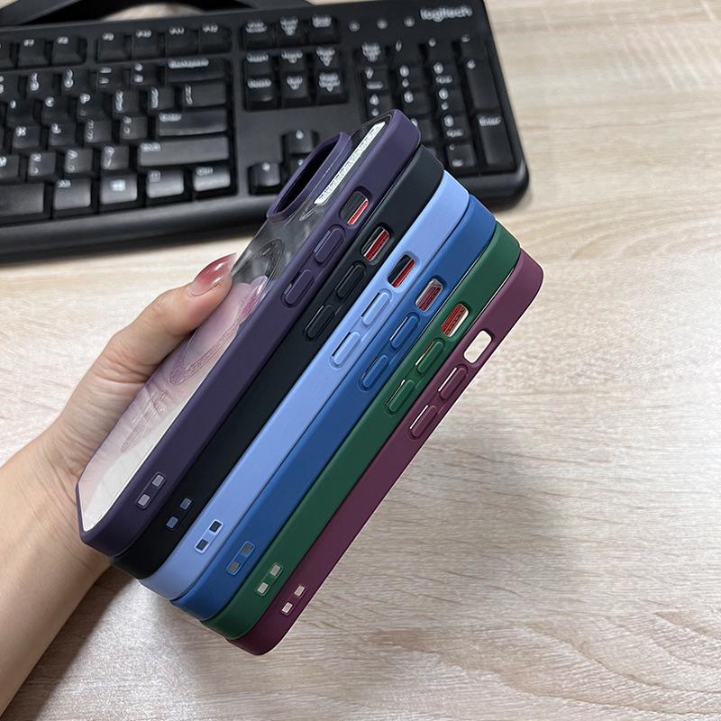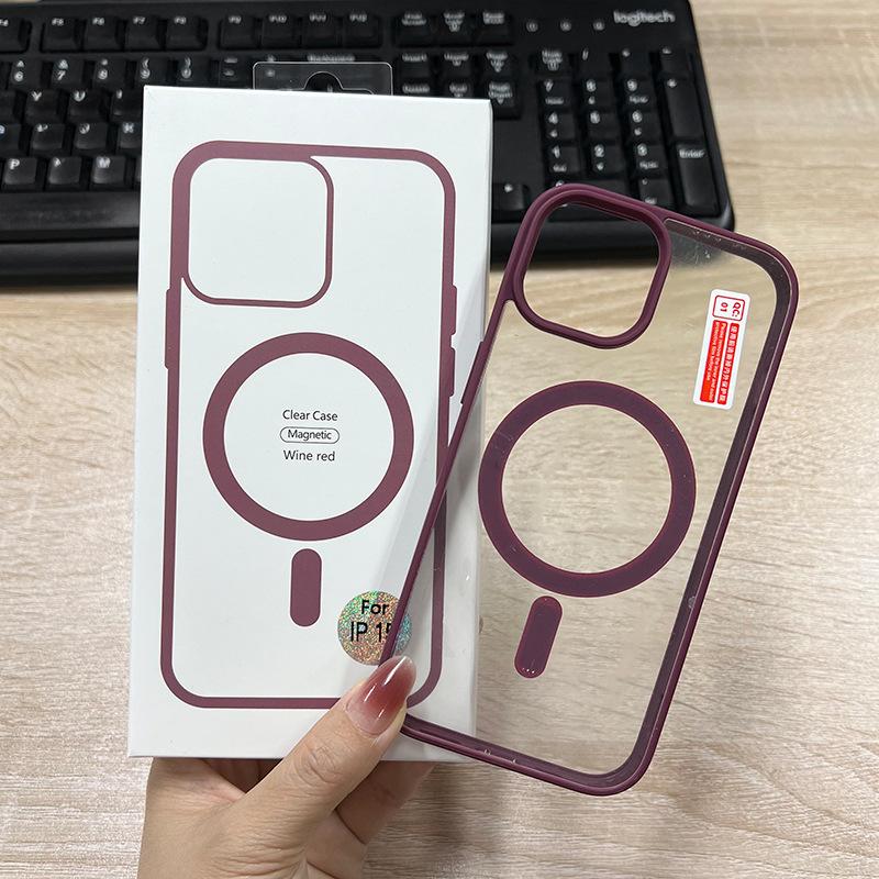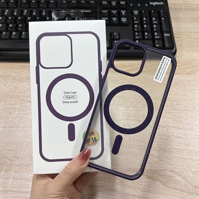 Adecuado para iphone15 sensación de piel marco carcasa de succión magnética Apple 16ProMax transparente 13 funda protectora 14 carcasa dura venta al por mayor