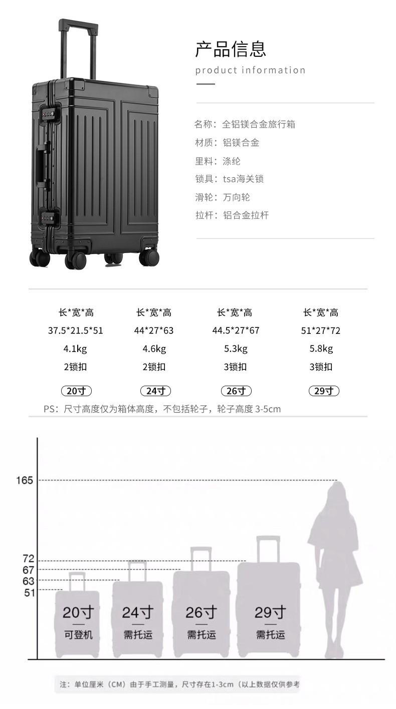 Nueva maleta de aleación de magnesio y aluminio 20 pulgadas maleta trolley de mano rueda universal 24 pulgadas maleta femenina una generación de cabello