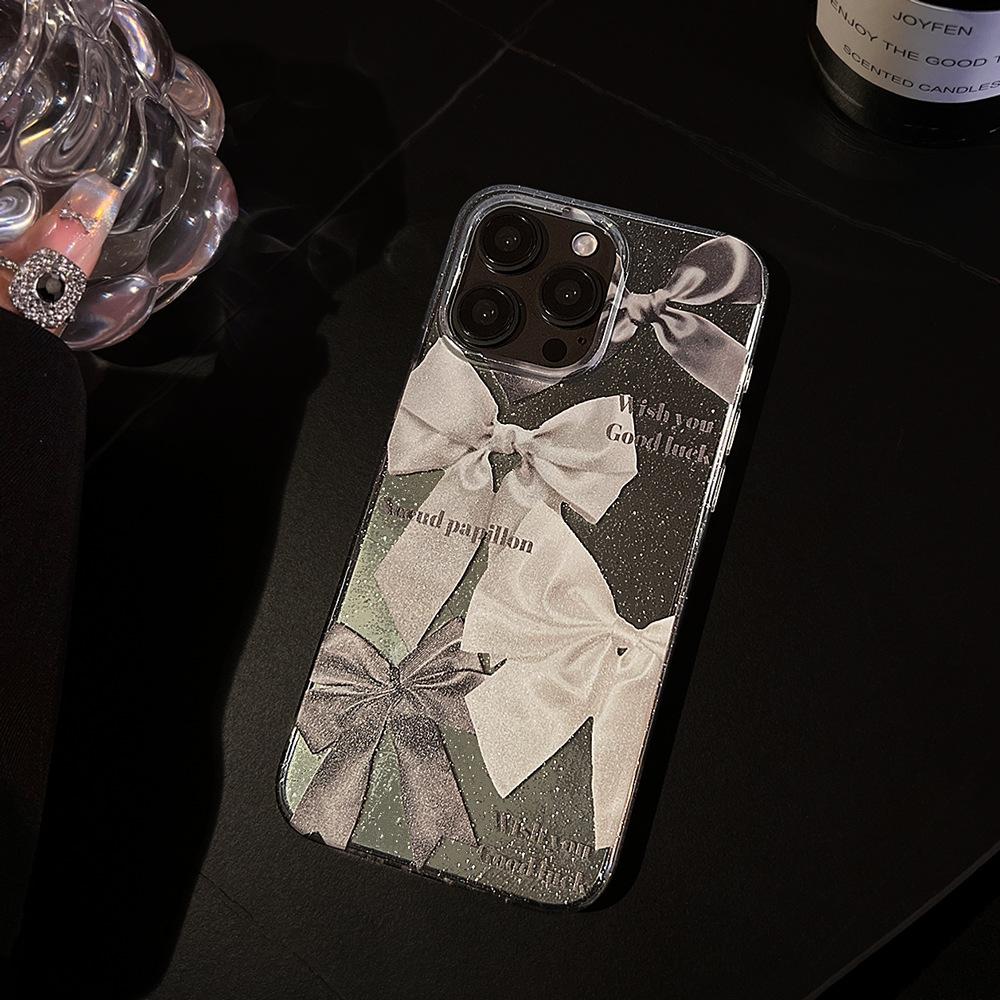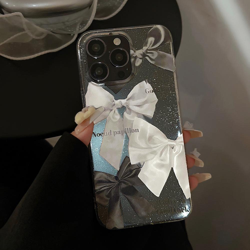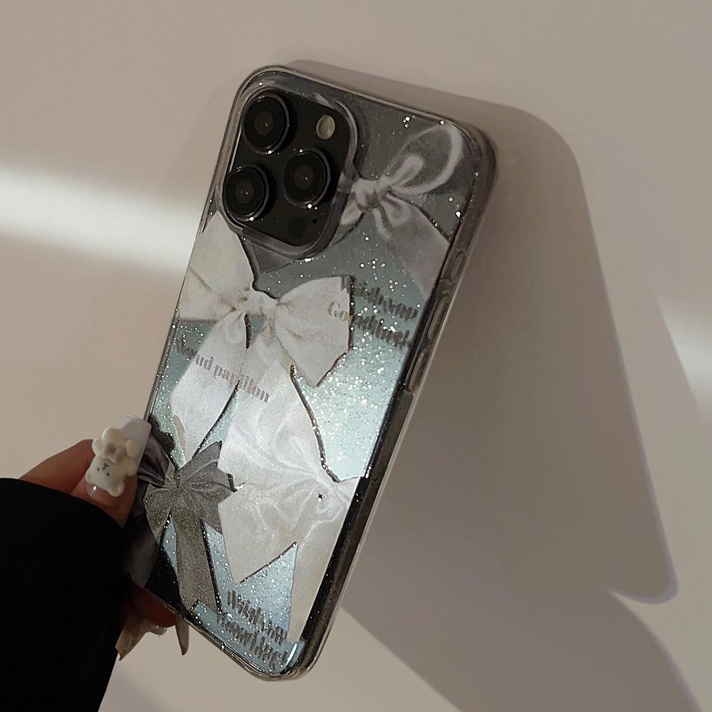 Funda de Teléfono con Brillo Único para iPhone 17 con Lazo, Transparente para iPhone 15 Pro Max, a Prueba de Golpes para iPhone 16, Compatible con iPhone 13