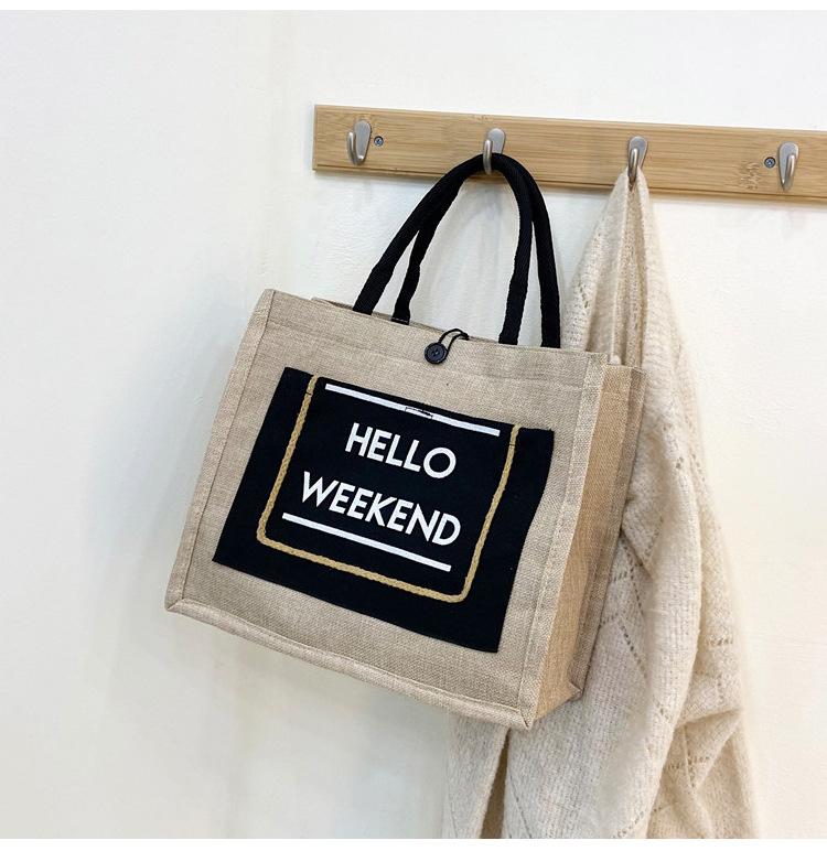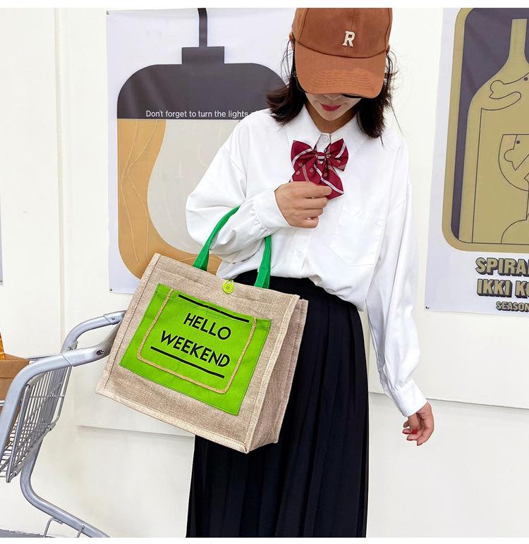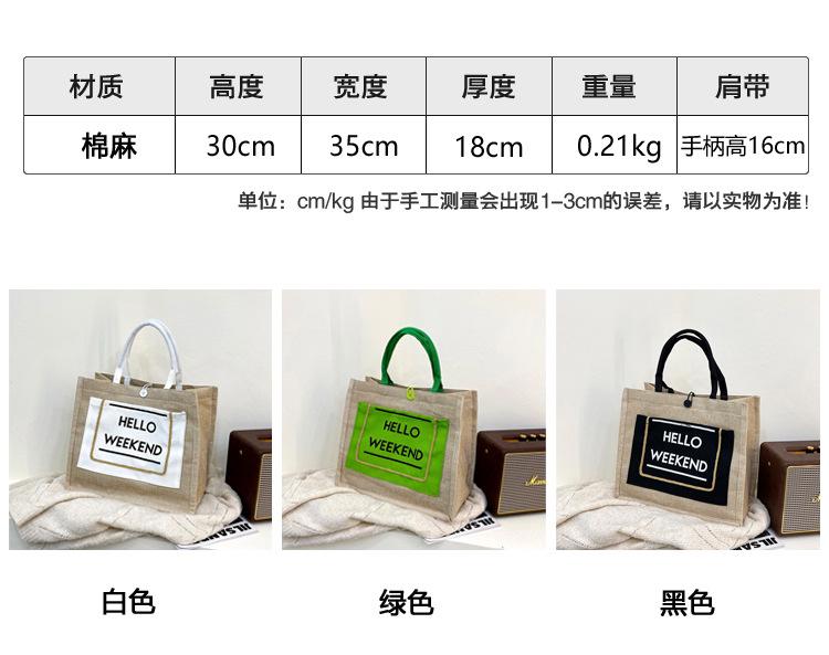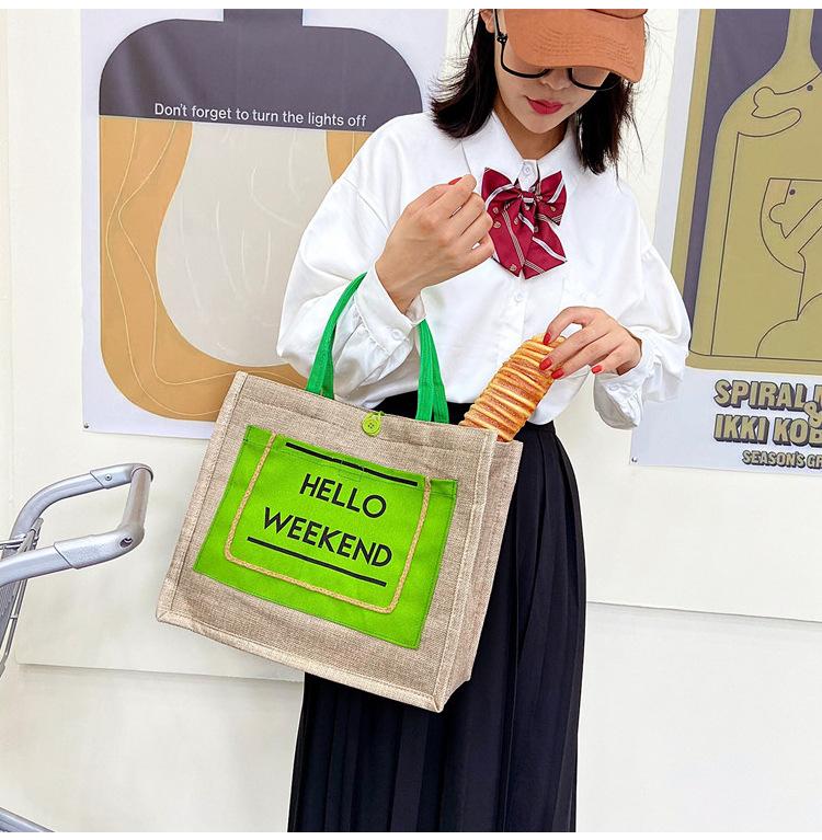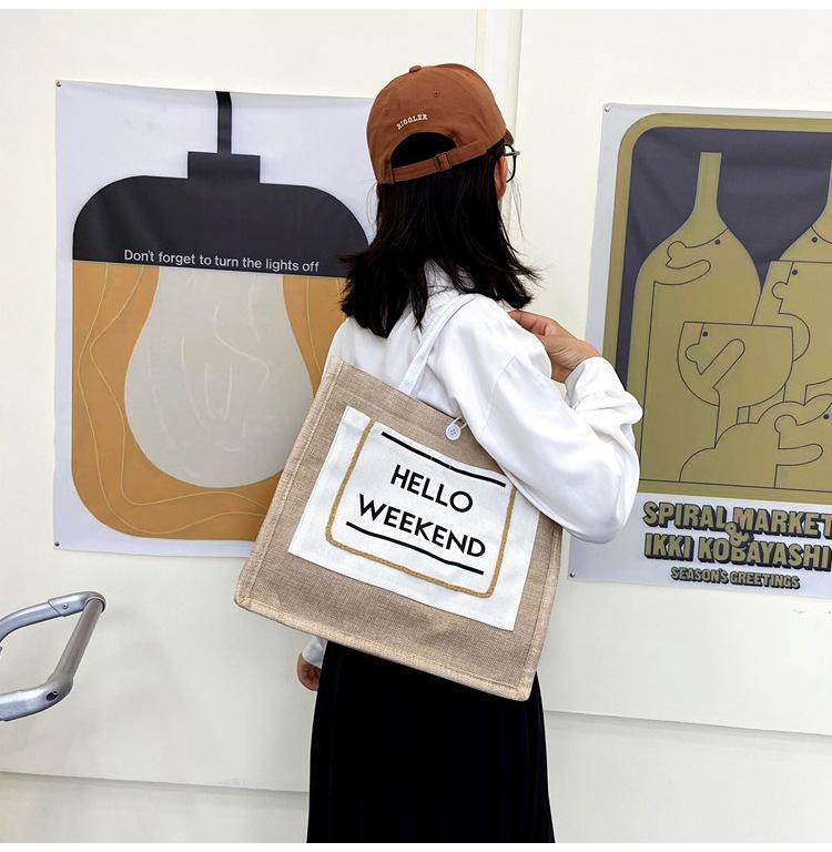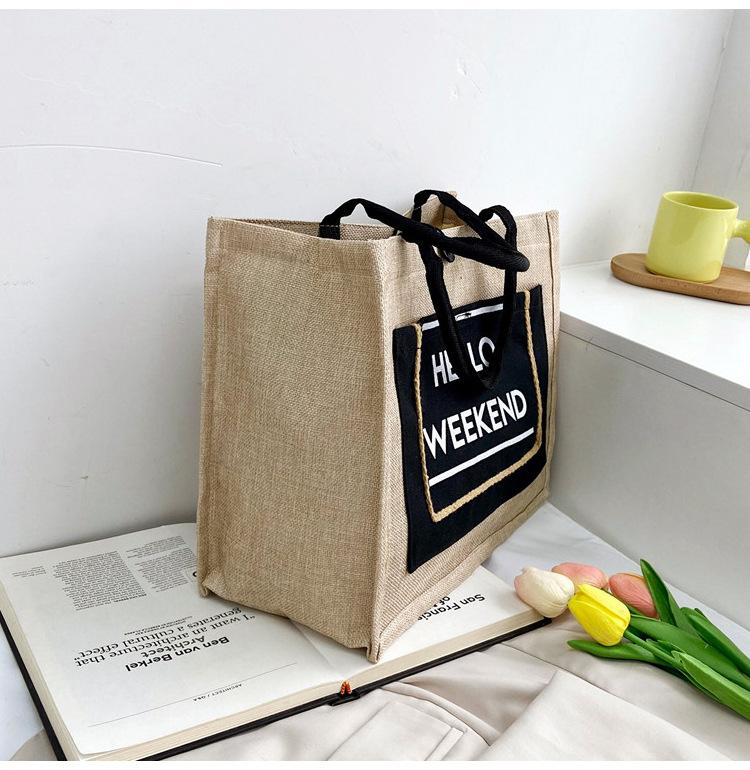 Bolso de compras transfronterizo de algodón y lino de nueva moda, bolso de lona simple de gran capacidad, bolso de mano de lino