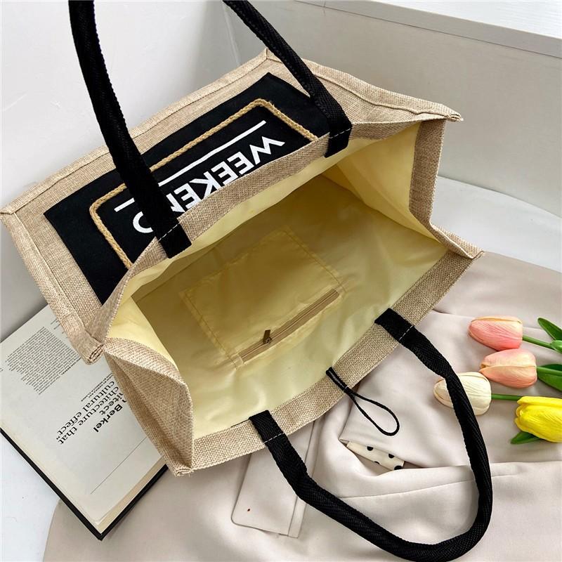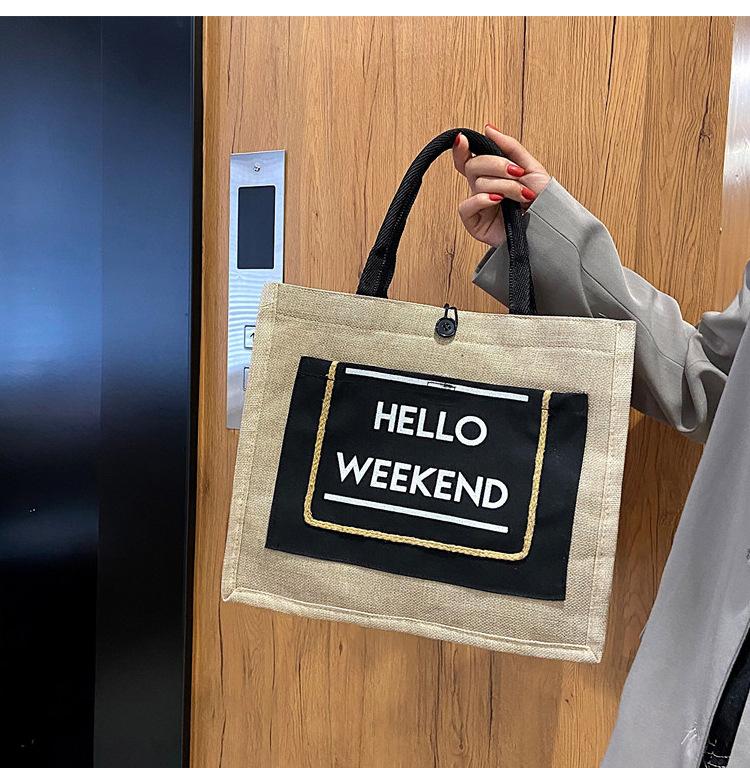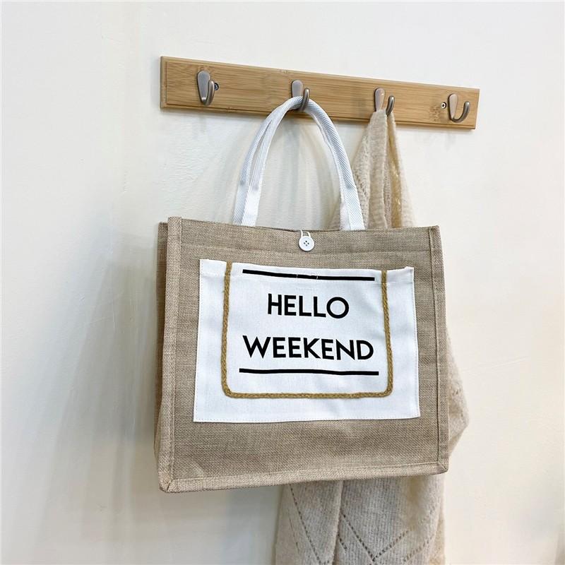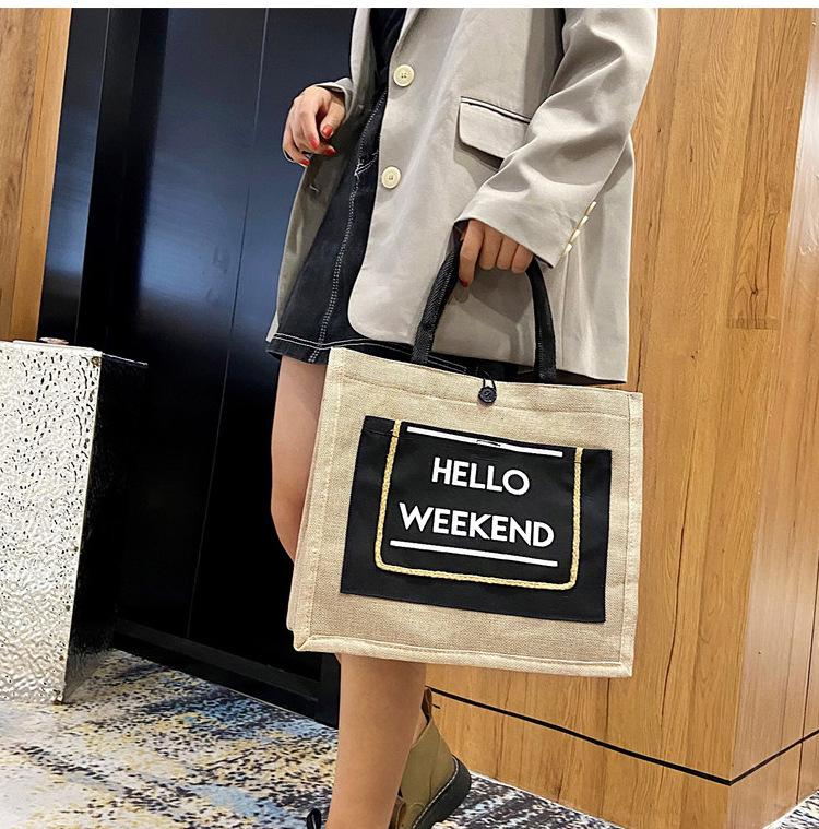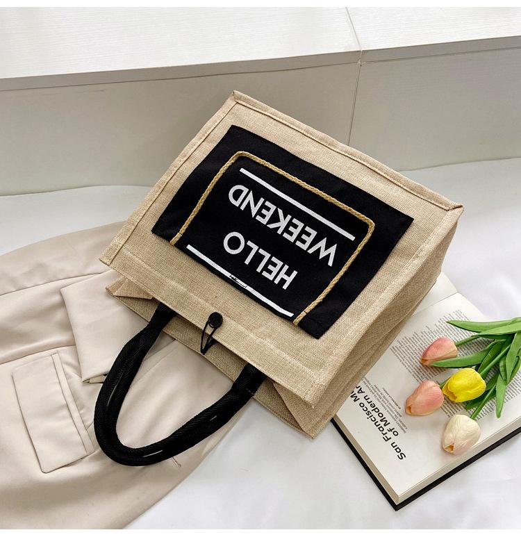 Bolso de compras transfronterizo de algodón y lino de nueva moda, bolso de lona simple de gran capacidad, bolso de mano de lino