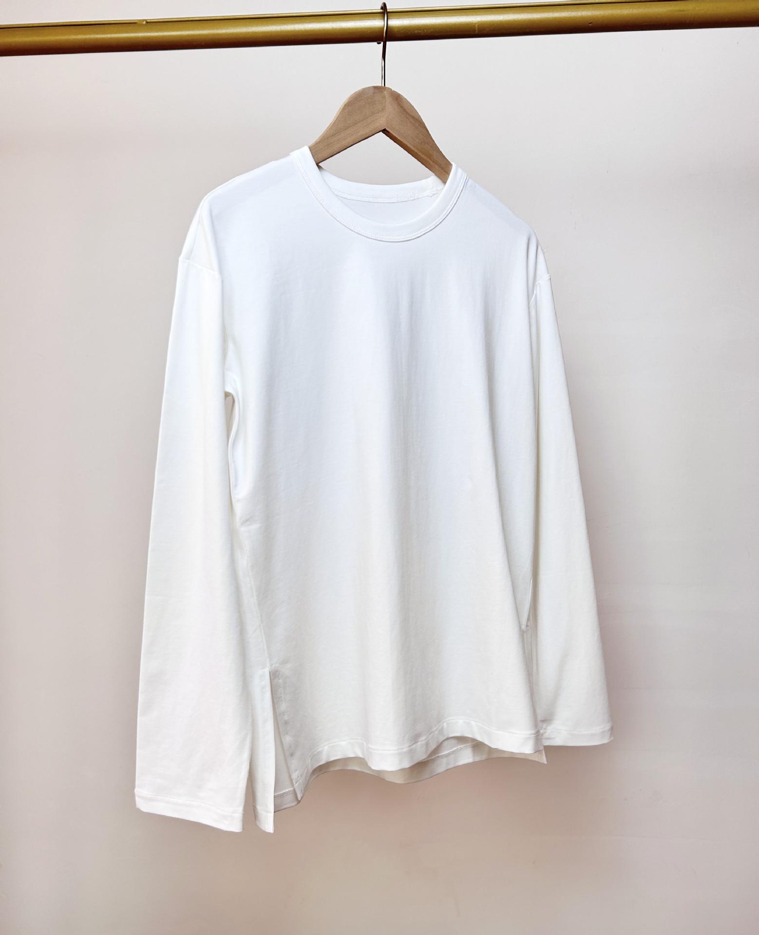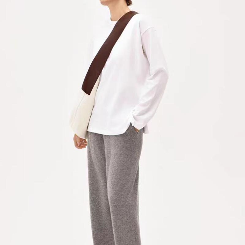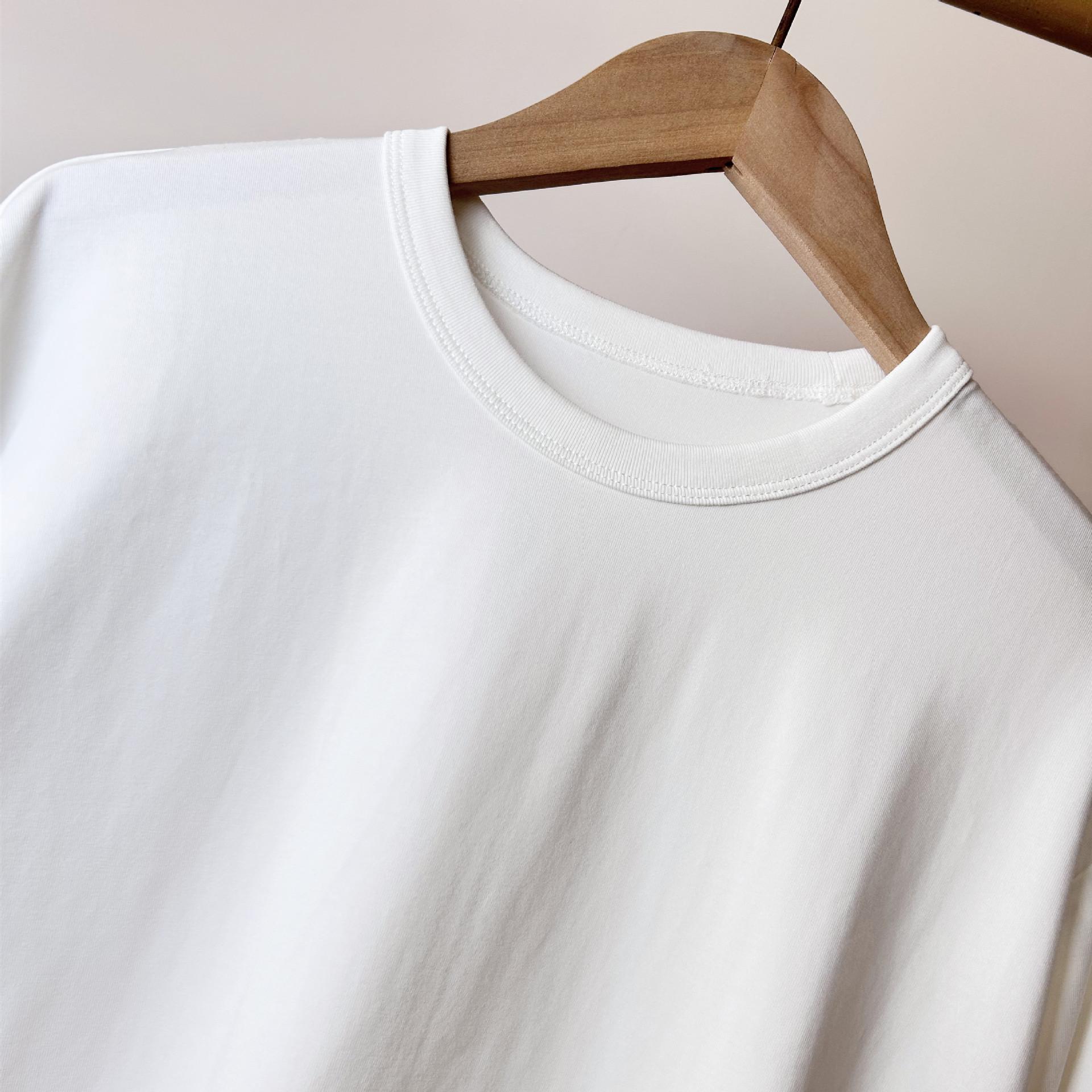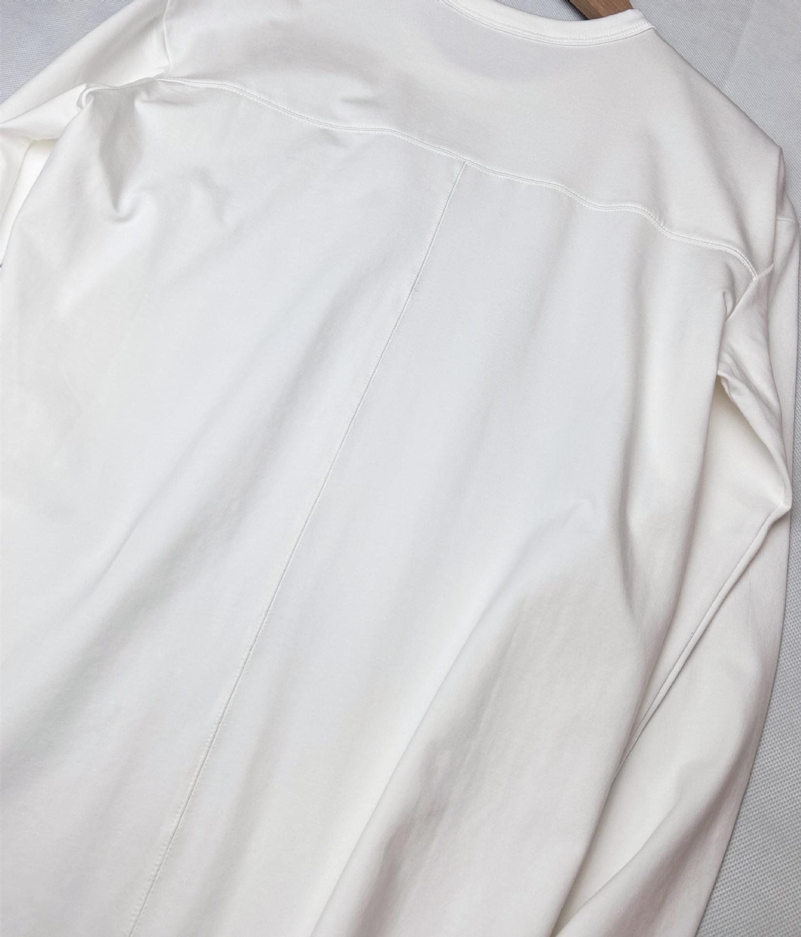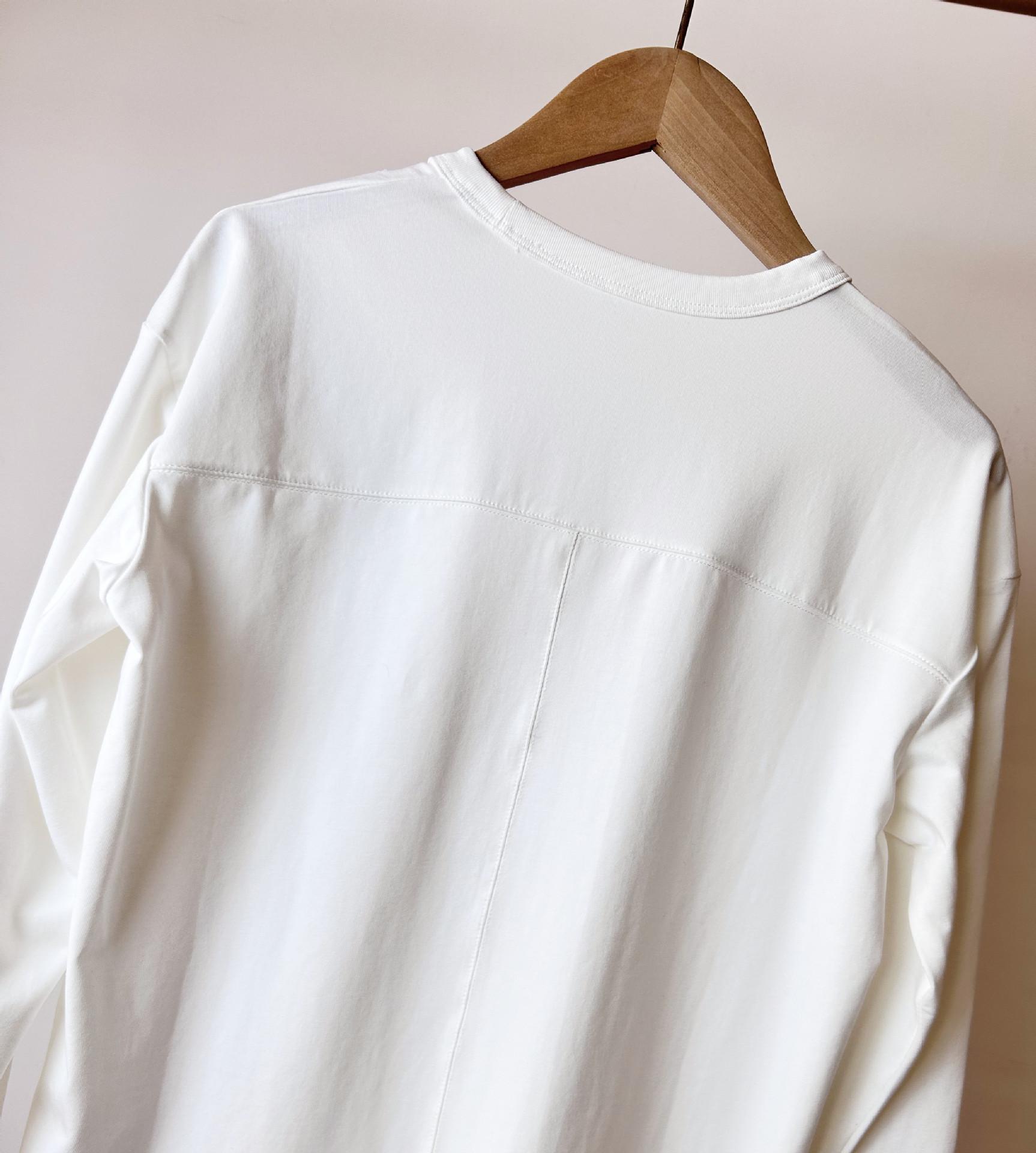 24 Primavera y Verano Nuevo Suelto Casual Simple Estilo Commuter Algodón Cuello Redondo Abertura Lateral Manga Larga Camiseta Top