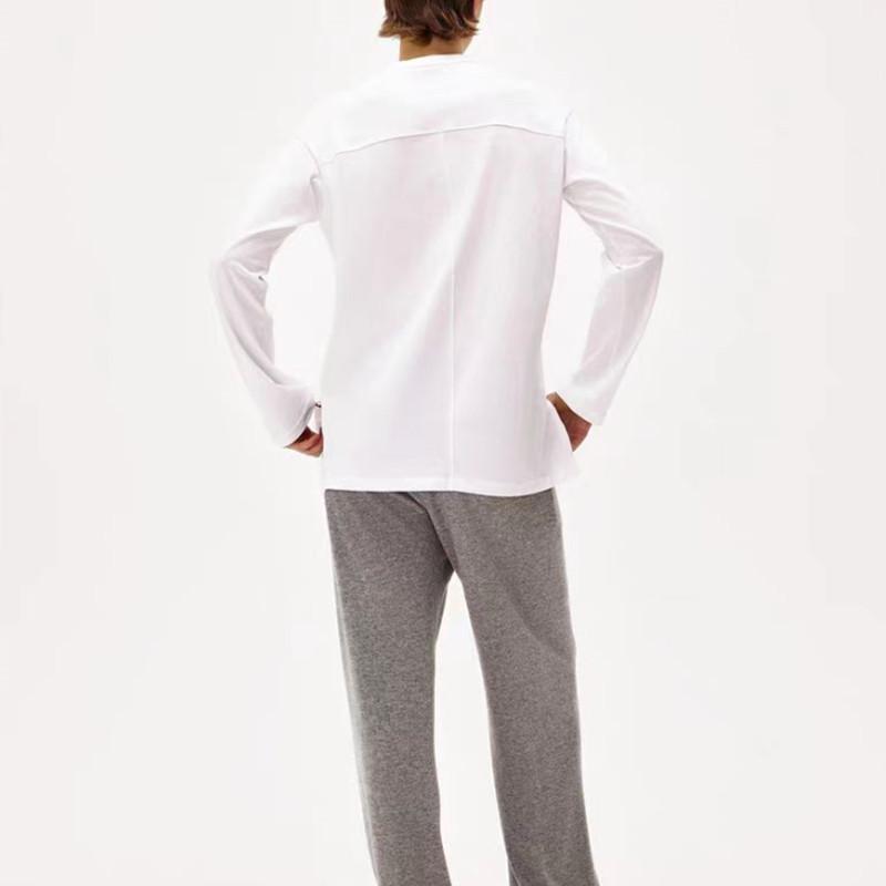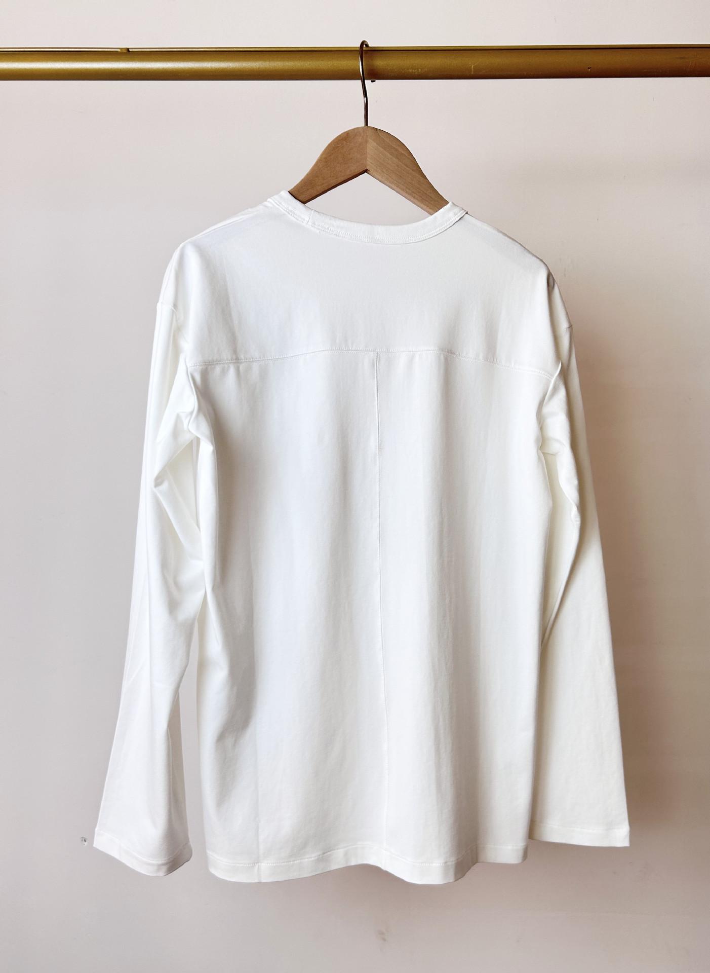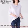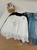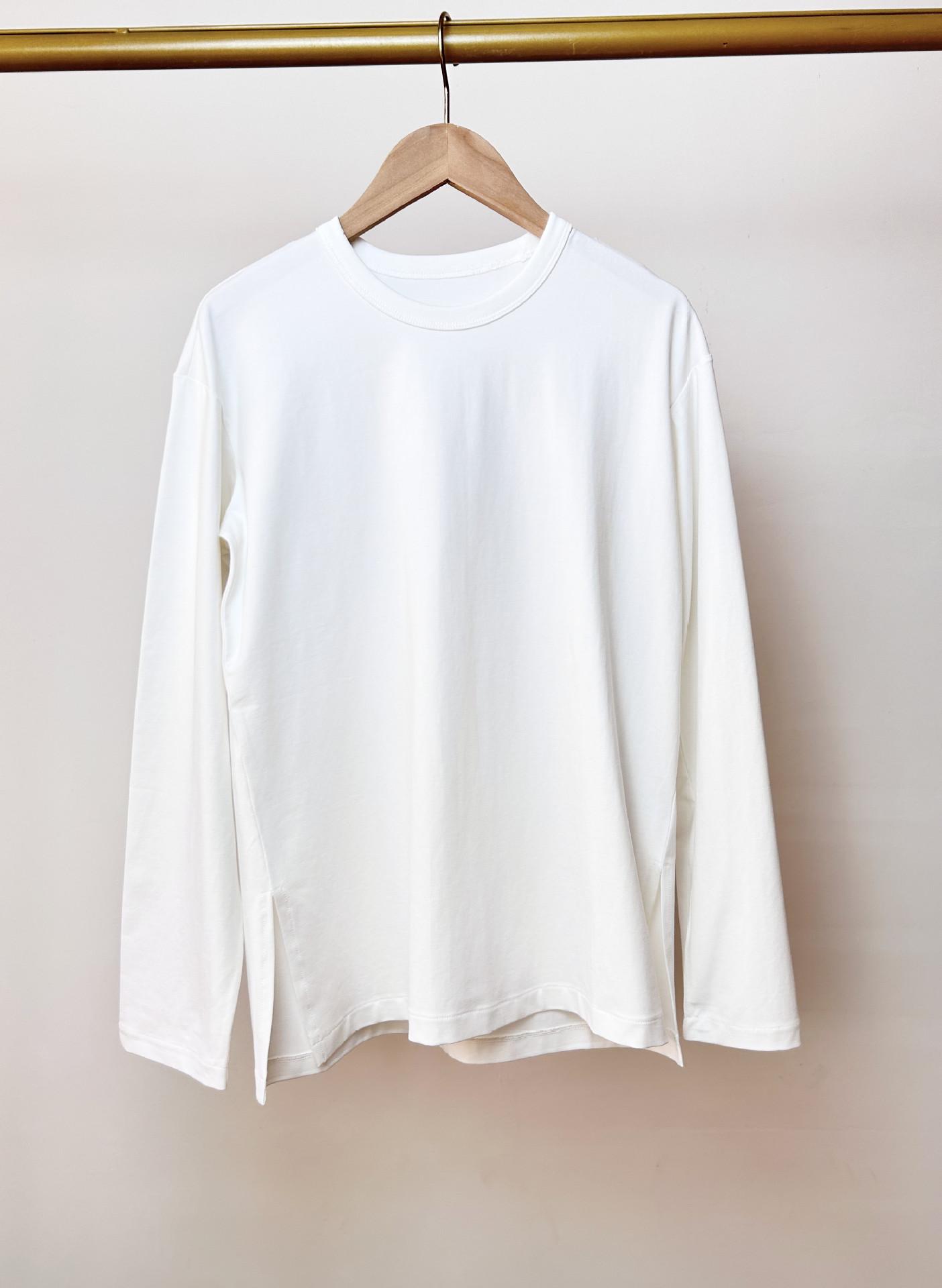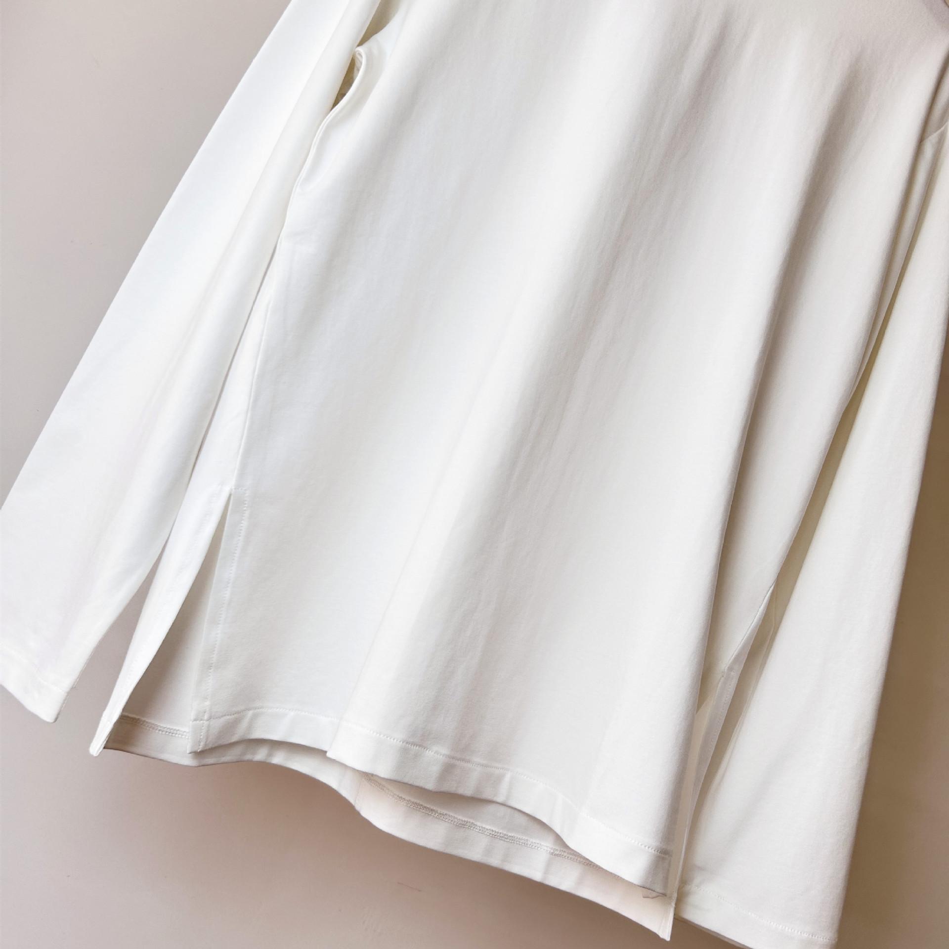 24 Primavera y Verano Nuevo Suelto Casual Simple Estilo Commuter Algodón Cuello Redondo Abertura Lateral Manga Larga Camiseta Top