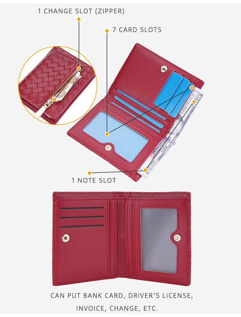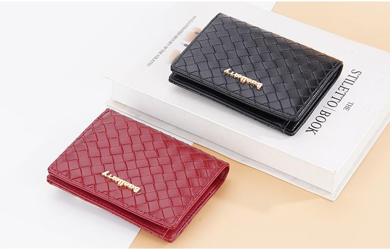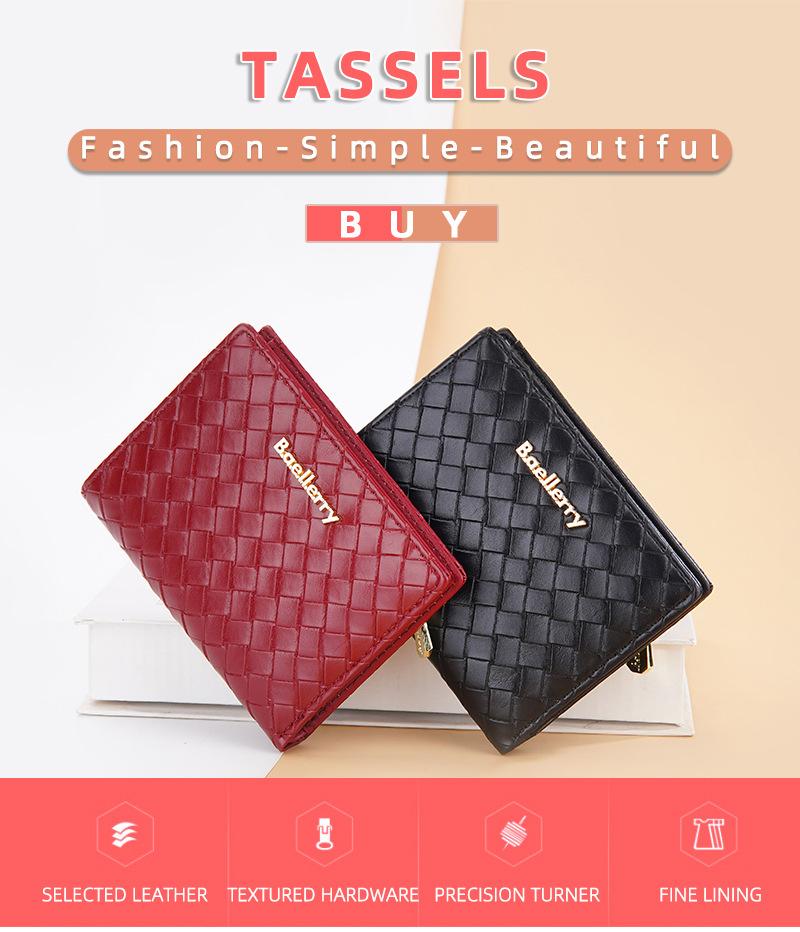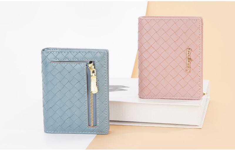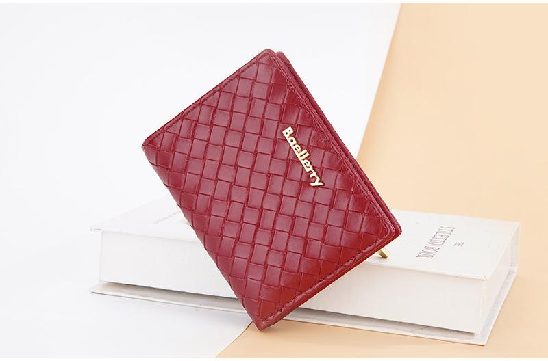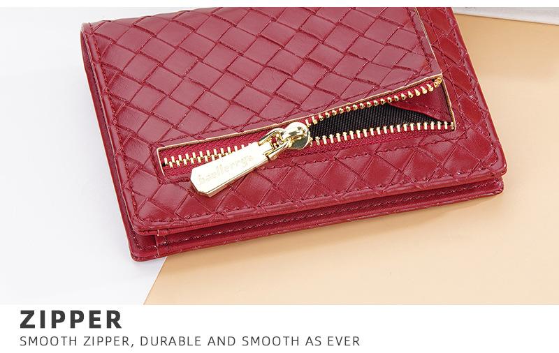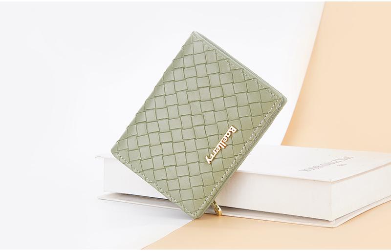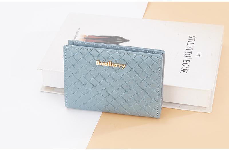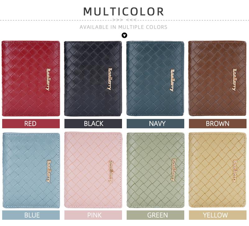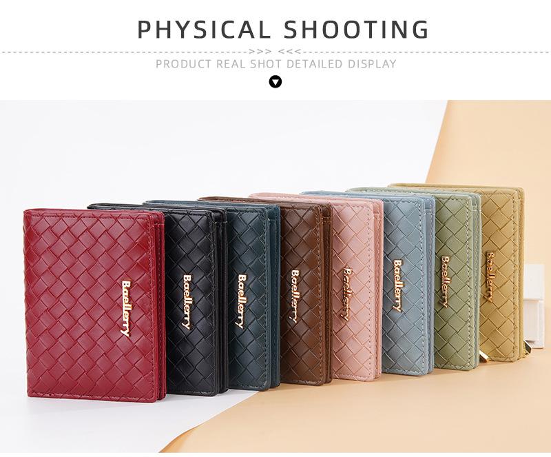 Nueva cartera corta Baellerry para mujer, estilo coreano, tejida, con múltiples tarjetas, hebilla magnética, monedero con cremallera y tarjetero.