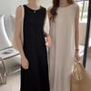 Chic Coreano 2025 Verano Nuevo Estilo Lino Abertura Sin Mangas Sencillo Vestido Chaleco de Cuello en V Largo Medio Vestido de Algodón y Lino para Mujer