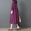 Verano Nuevo Estilo 2025 Estilo Coreano Suelto Talla Grande Moda para Mujer Algodón y Lino Contrastante Vestido de Cuello Redondo para Mujer